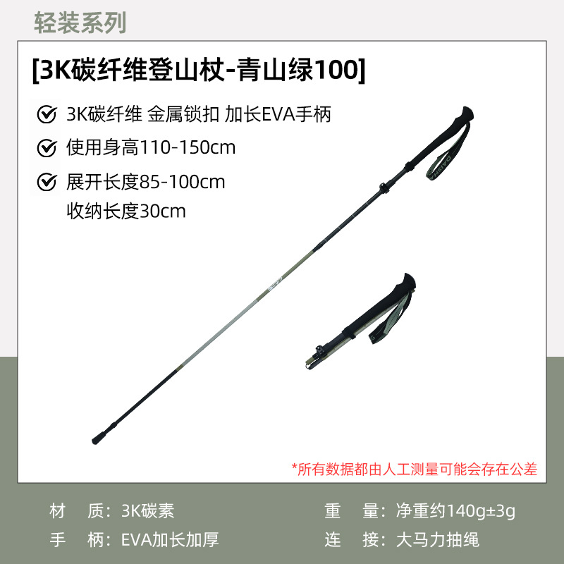 • 3K 카본 접이식 스틱 [키 110-150에 적합] - 그린 마운틴 그린