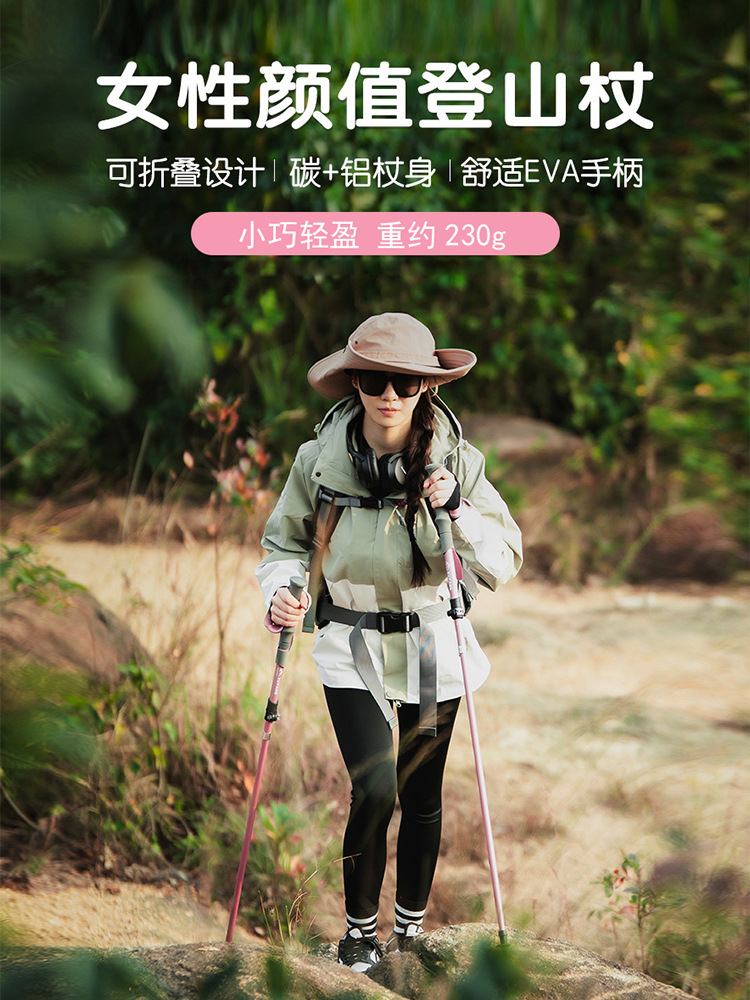 탄소 섬유 트레킹 스틱 접이식 여성용 지팡이 야외 하이킹 장비 초경량 등산 알루미늄 합금 텔레스코픽 스틱스토어 가기
