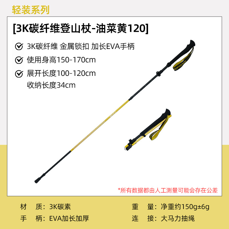 • 3K 카본 접이식 스틱 [키 170-190에 적합] - 유채 노란색
