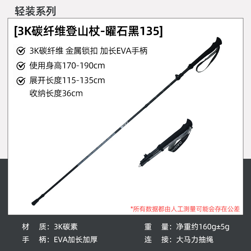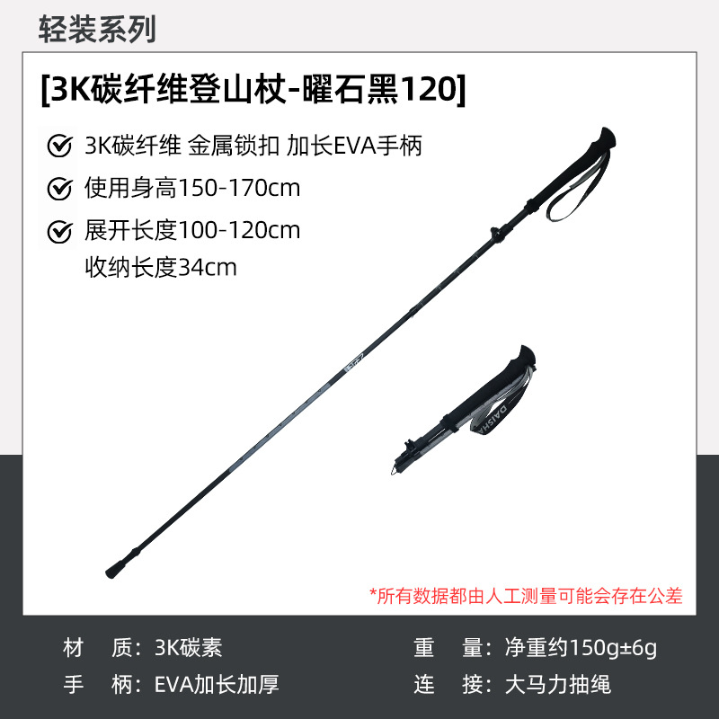 • 3K 카본 접이식 스틱 [키 110-150에 적합] - 옵시디언 블랙