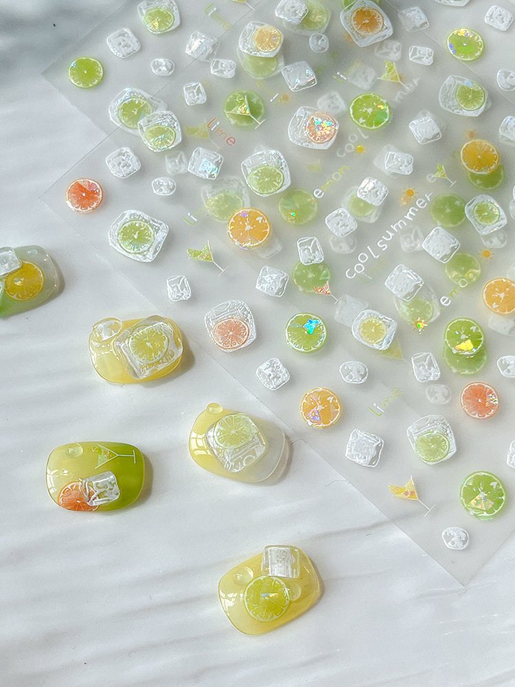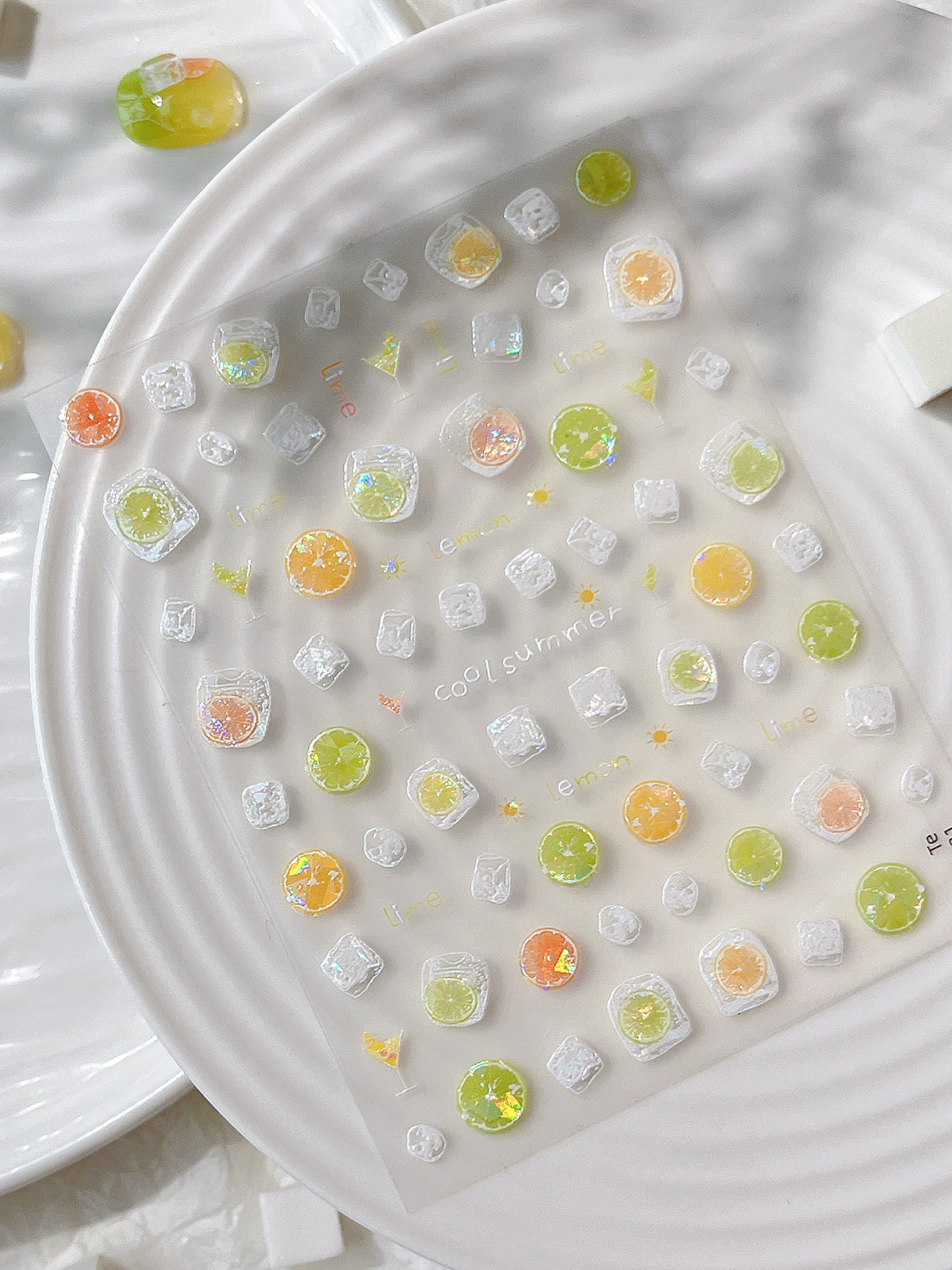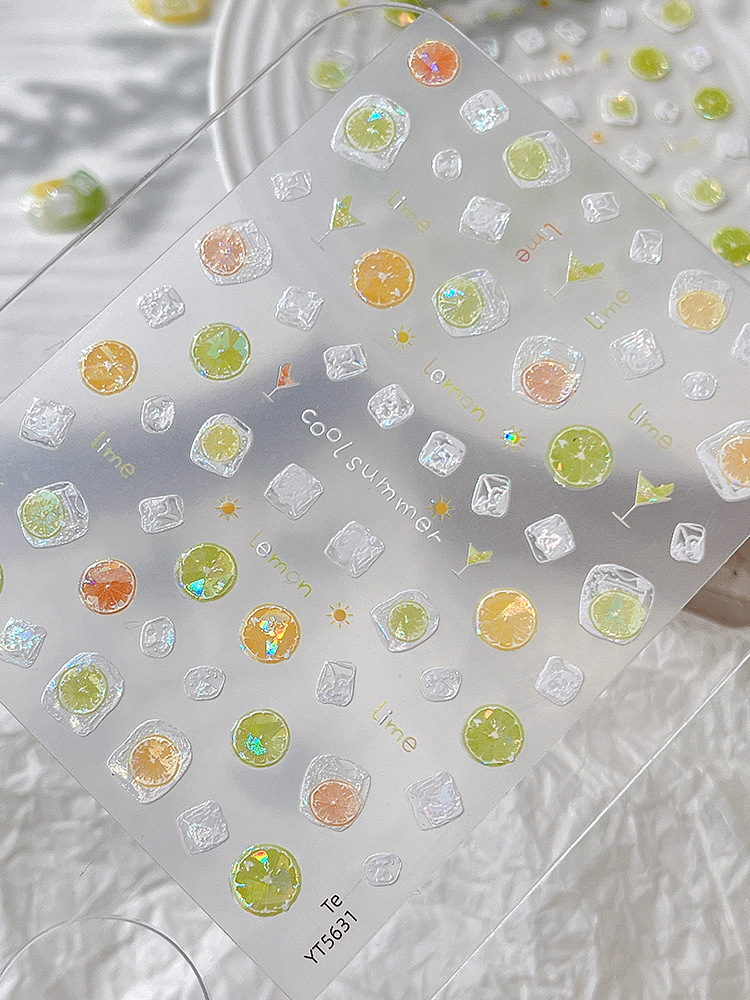 YITU Ant Shell 라이트 레몬 슬라이스 네일 아트 스티커 간단한 깜박이는 여름 작은 신선한 장식 스티커 YT5630