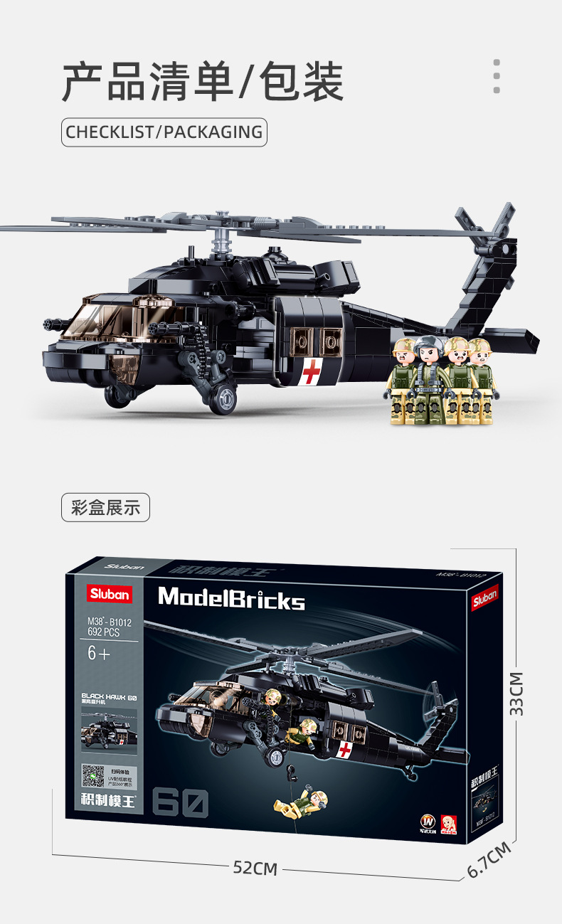 Little Luban 1012 블랙 호크 헬리콥터 1011 주력 탱크 1010 군사 모델 교육 조립 빌딩 블록 장난감스토어 가기