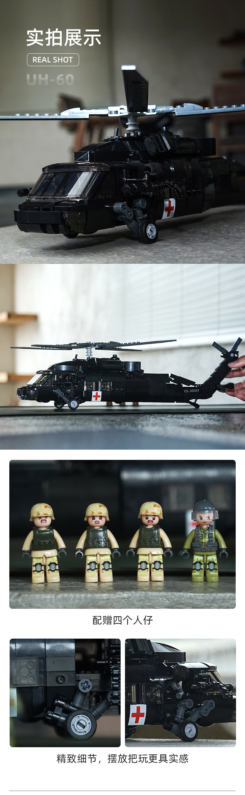 Little Luban 1012 블랙 호크 헬리콥터 1011 주력 탱크 1010 군사 모델 교육 조립 빌딩 블록 장난감