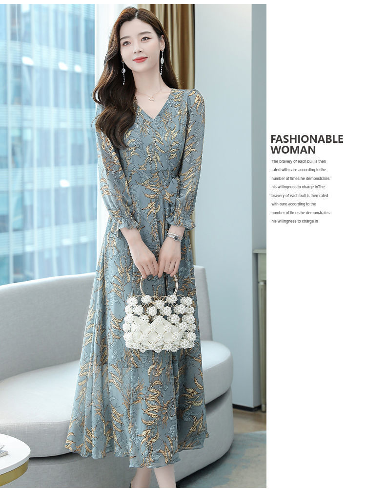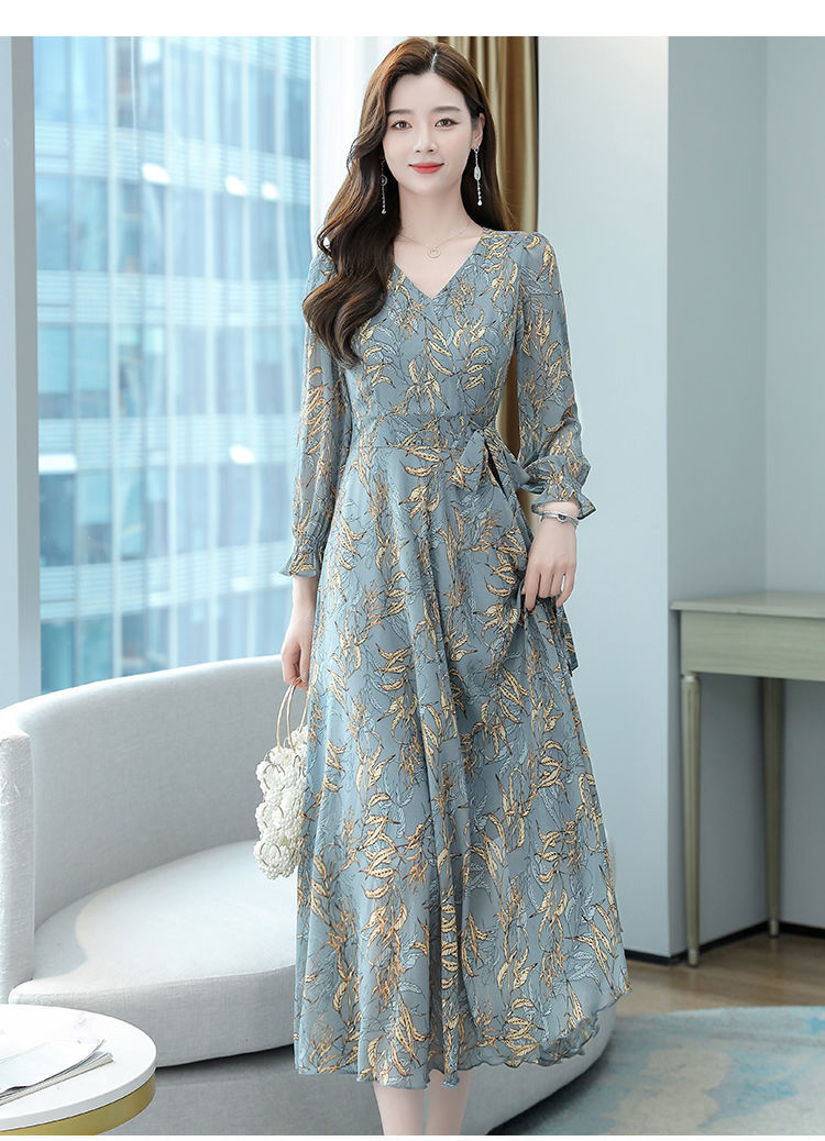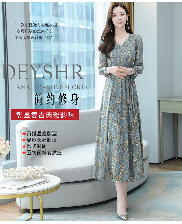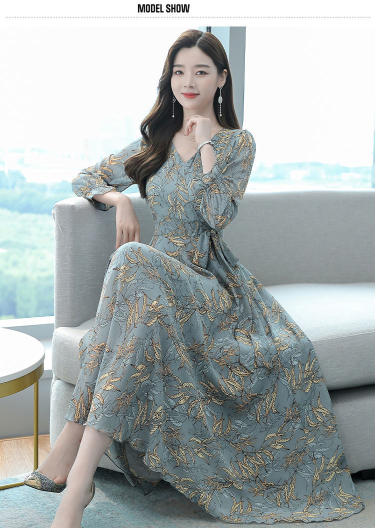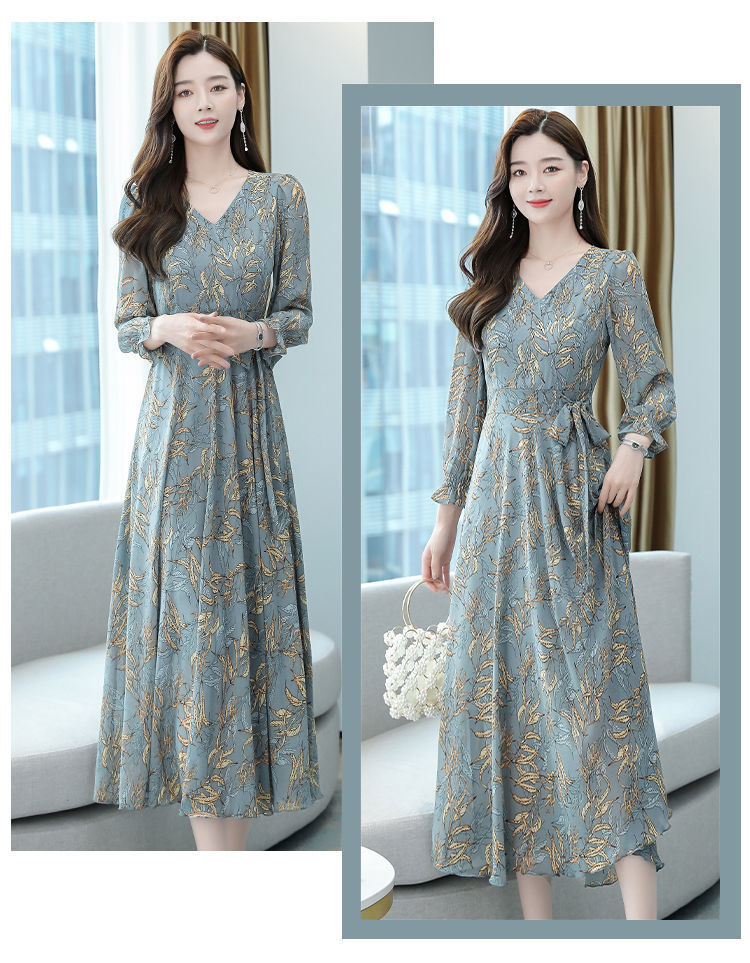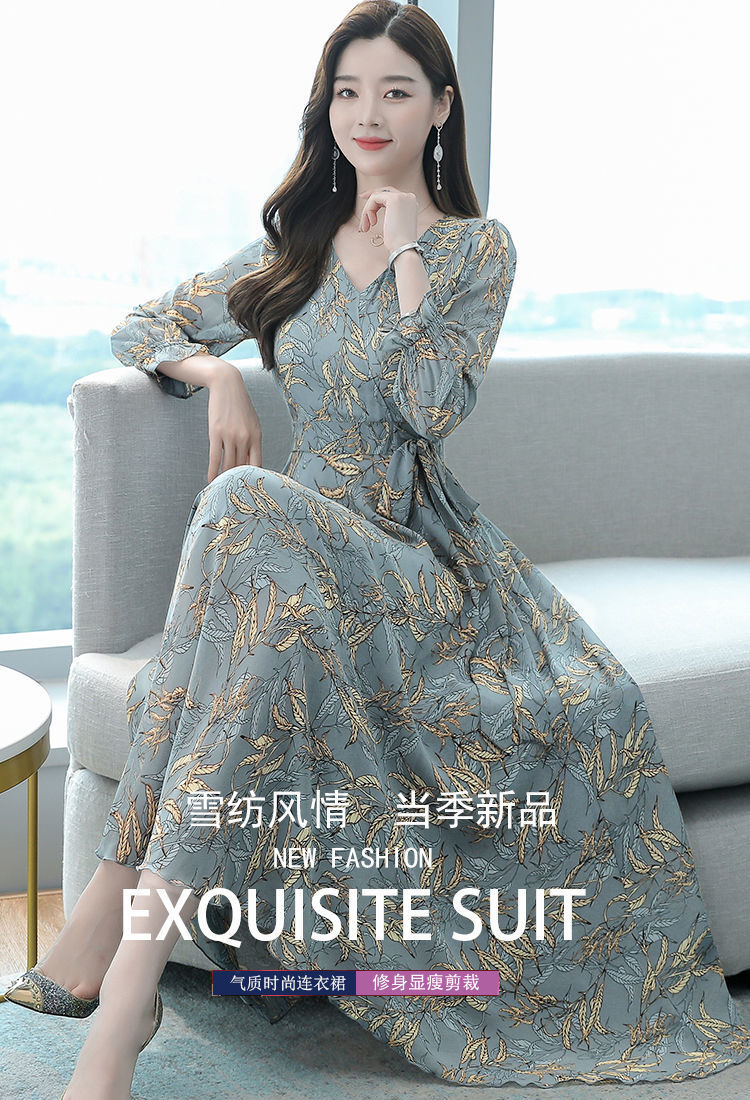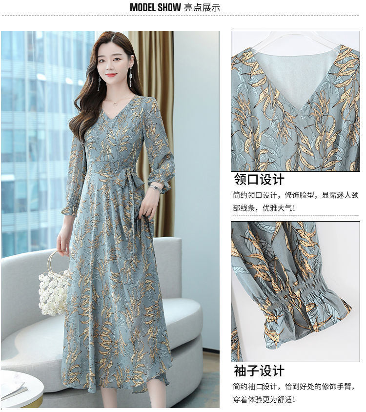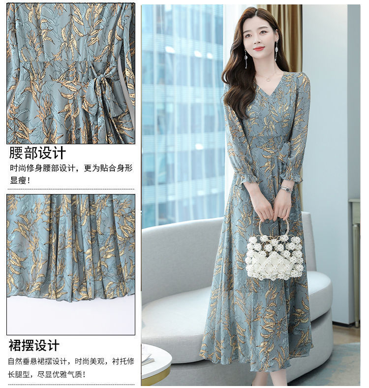 한국판 2025 가을 신상 빅 사이즈 원피스 여성 중장형 슬림핏 허리 조절 중년 엄마복 롱 원피스스토어 가기