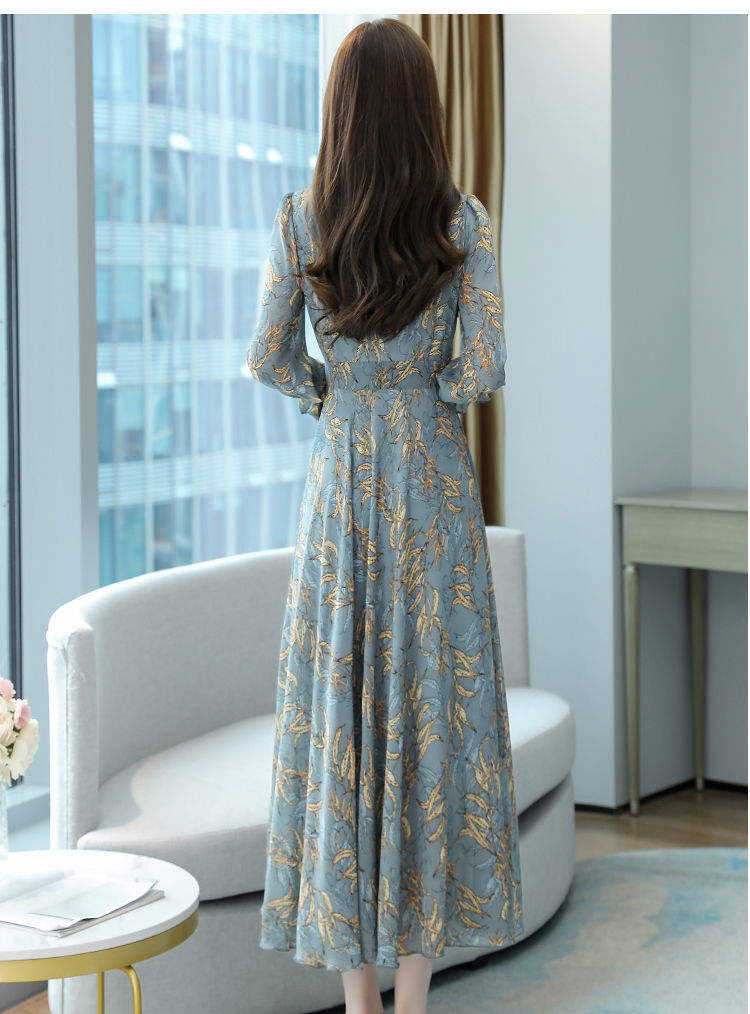 한국판 2025 가을 신상 빅 사이즈 원피스 여성 중장형 슬림핏 허리 조절 중년 엄마복 롱 원피스