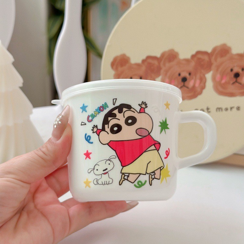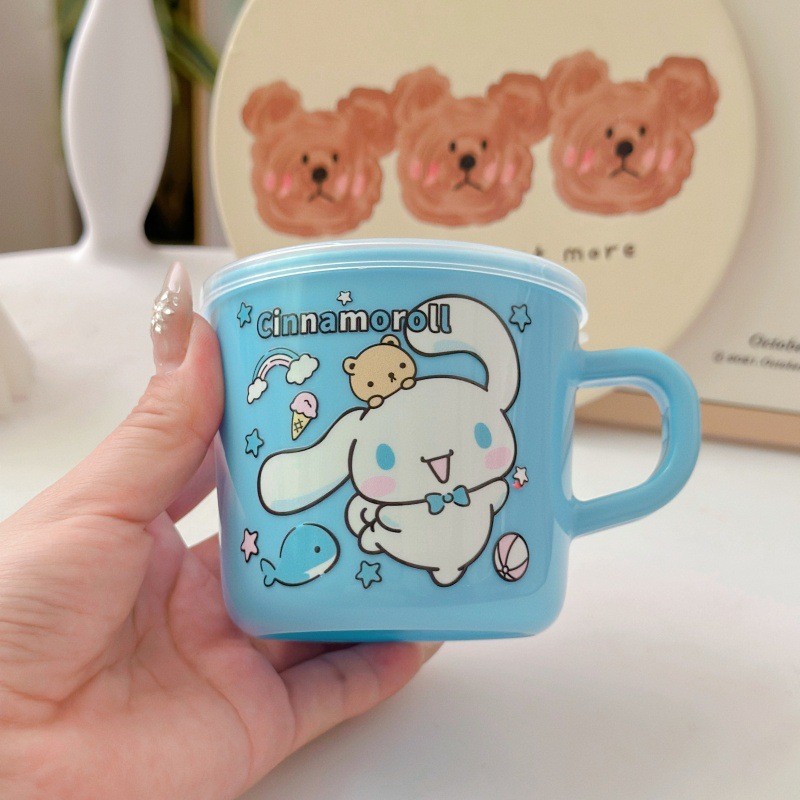 뚜껑과 손잡이가 있는 어린이 우유 컵 만화 마시는 컵 어린이 구강 세척제 및 칫솔질 컵 유치원 마시는 컵