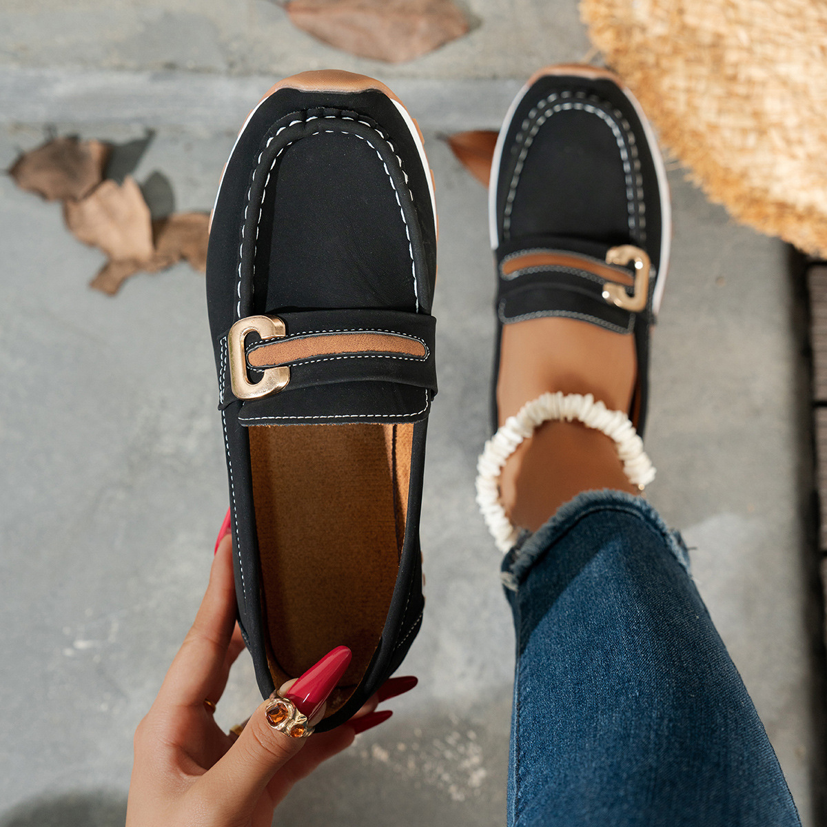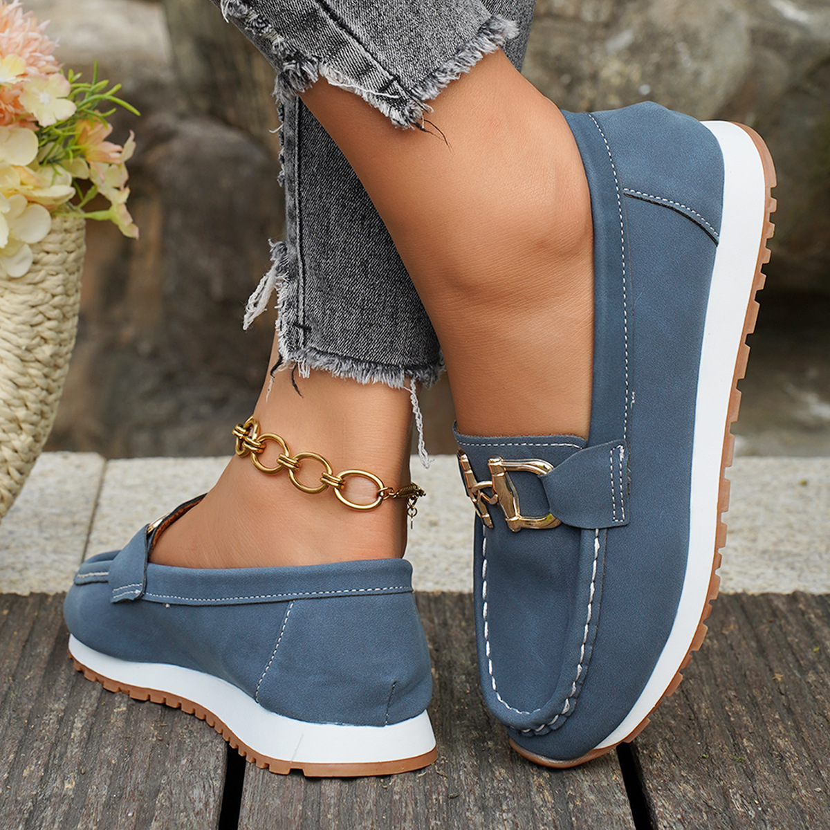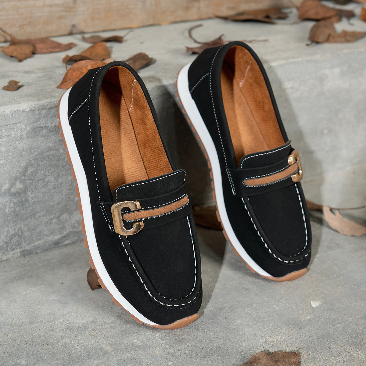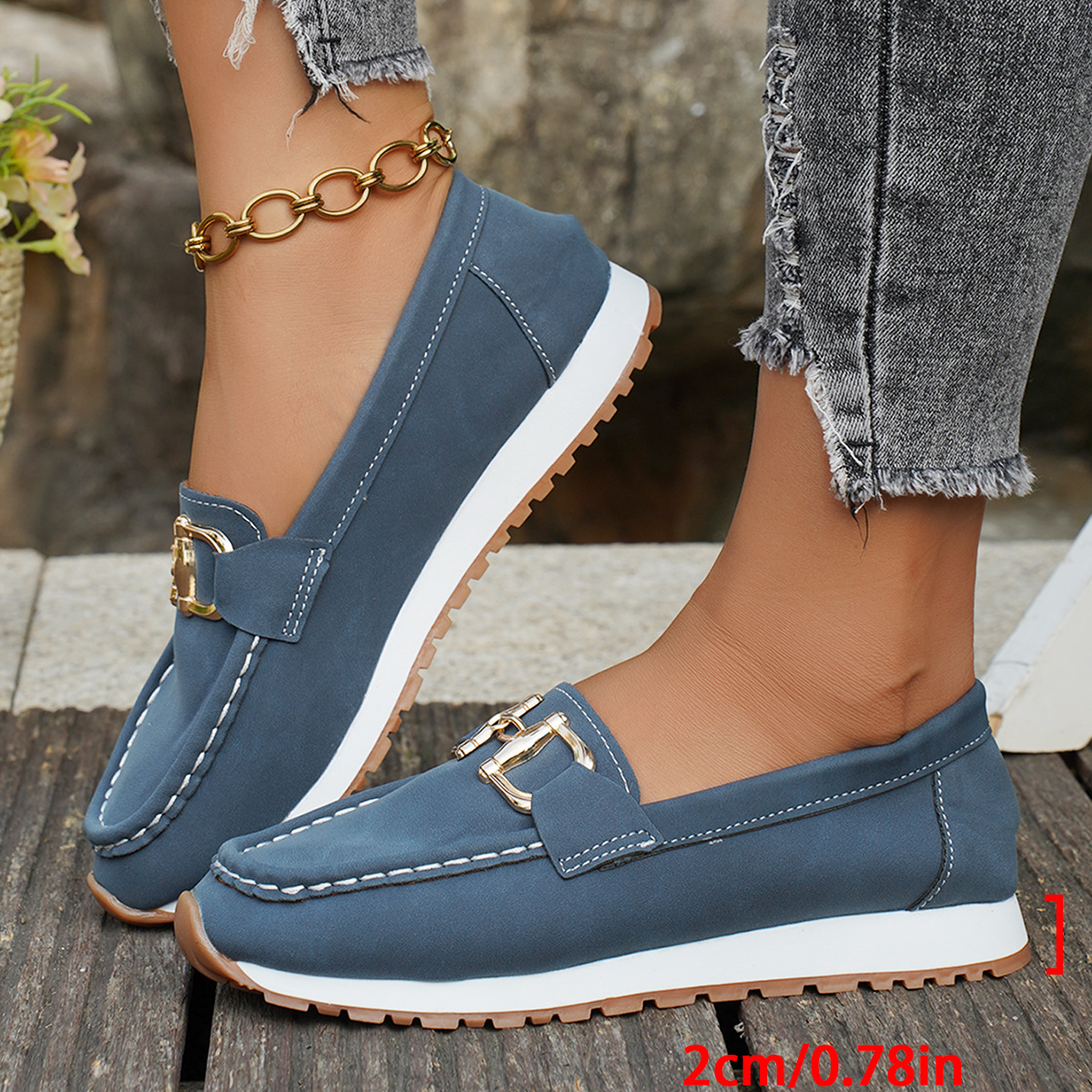국경 간 대형 캐주얼 여성 신발 통기성 신발 새로운 금속 버클 부드러운 표면 부드러운 바닥 경량 유행 여성 로퍼스토어 가기