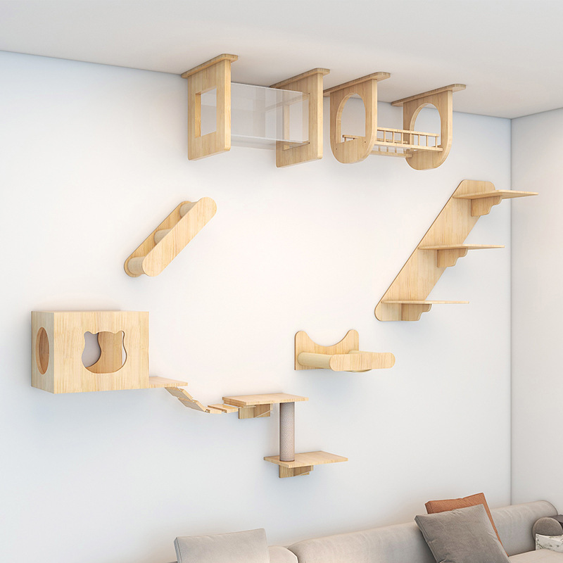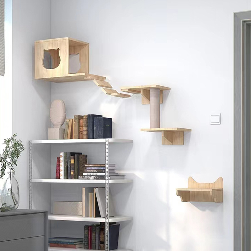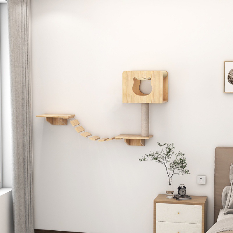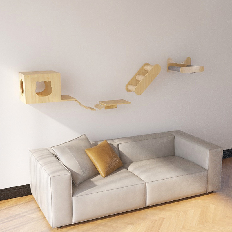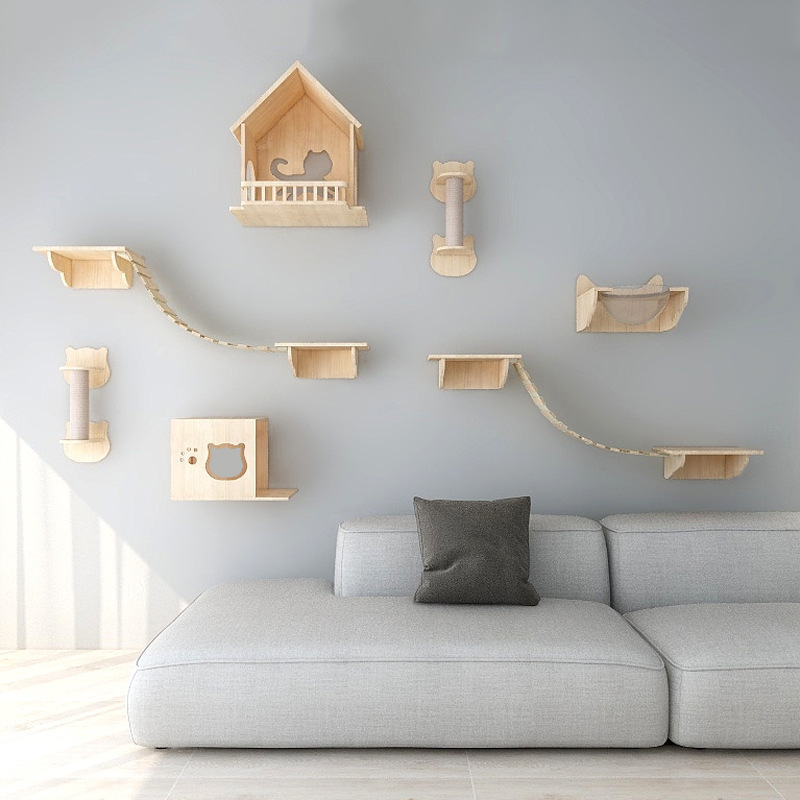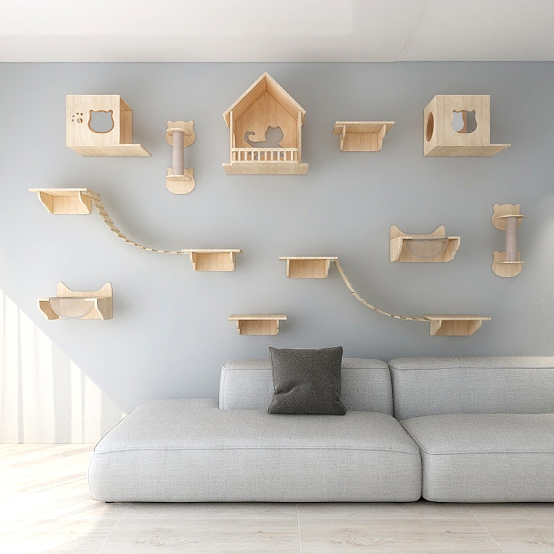 고양이 장난감 벽걸이 형 고양이 클라이밍 프레임 벽 고양이 스크래치 컬럼 고양이 점프 플랫폼 단단한 나무 고양이 선반 고양이 둥지 고양이 벽