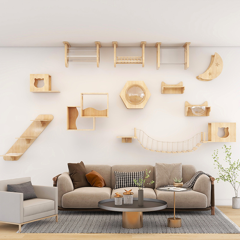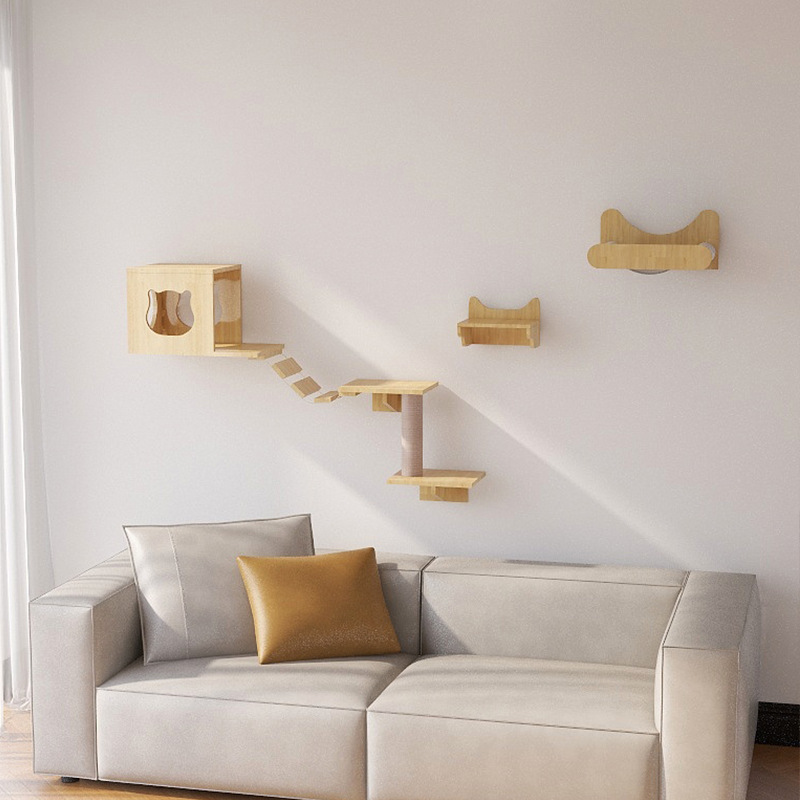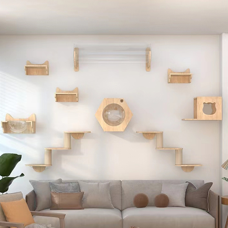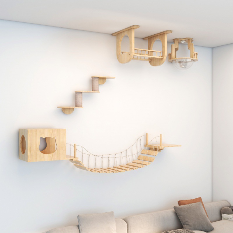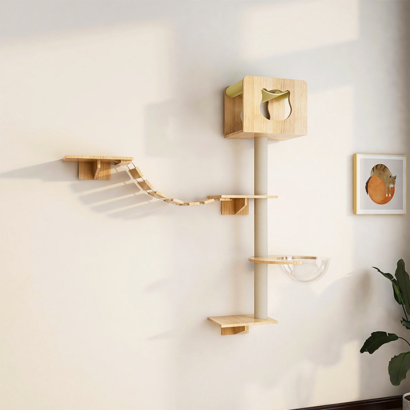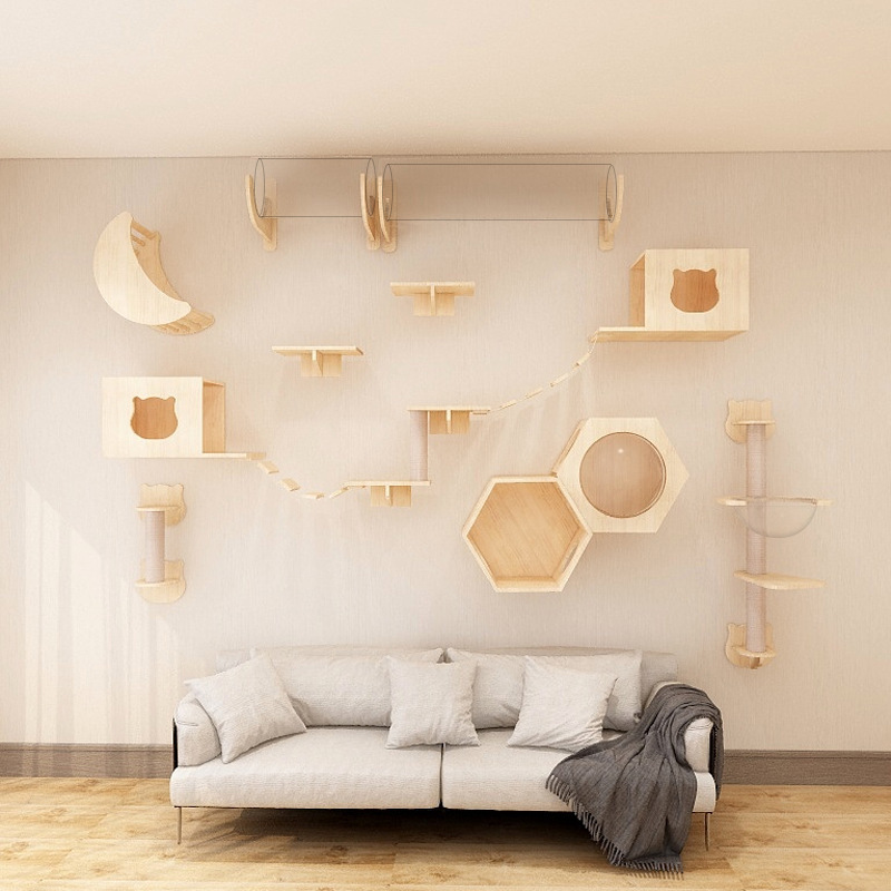 고양이 장난감 벽걸이 형 고양이 클라이밍 프레임 벽 고양이 스크래치 컬럼 고양이 점프 플랫폼 단단한 나무 고양이 선반 고양이 둥지 고양이 벽
