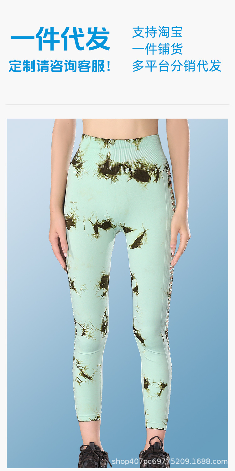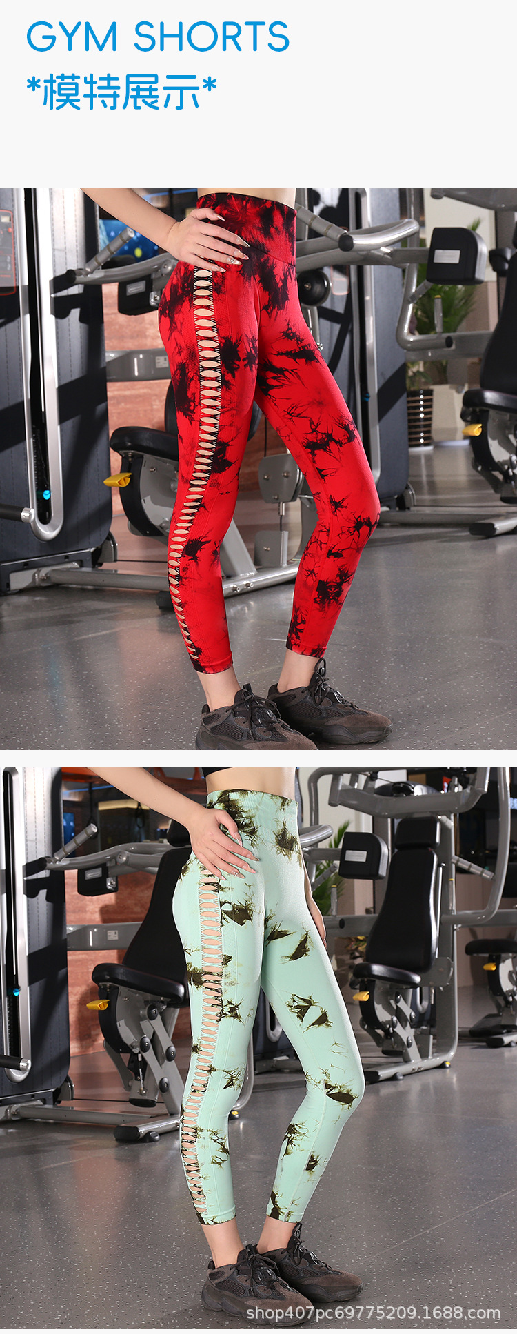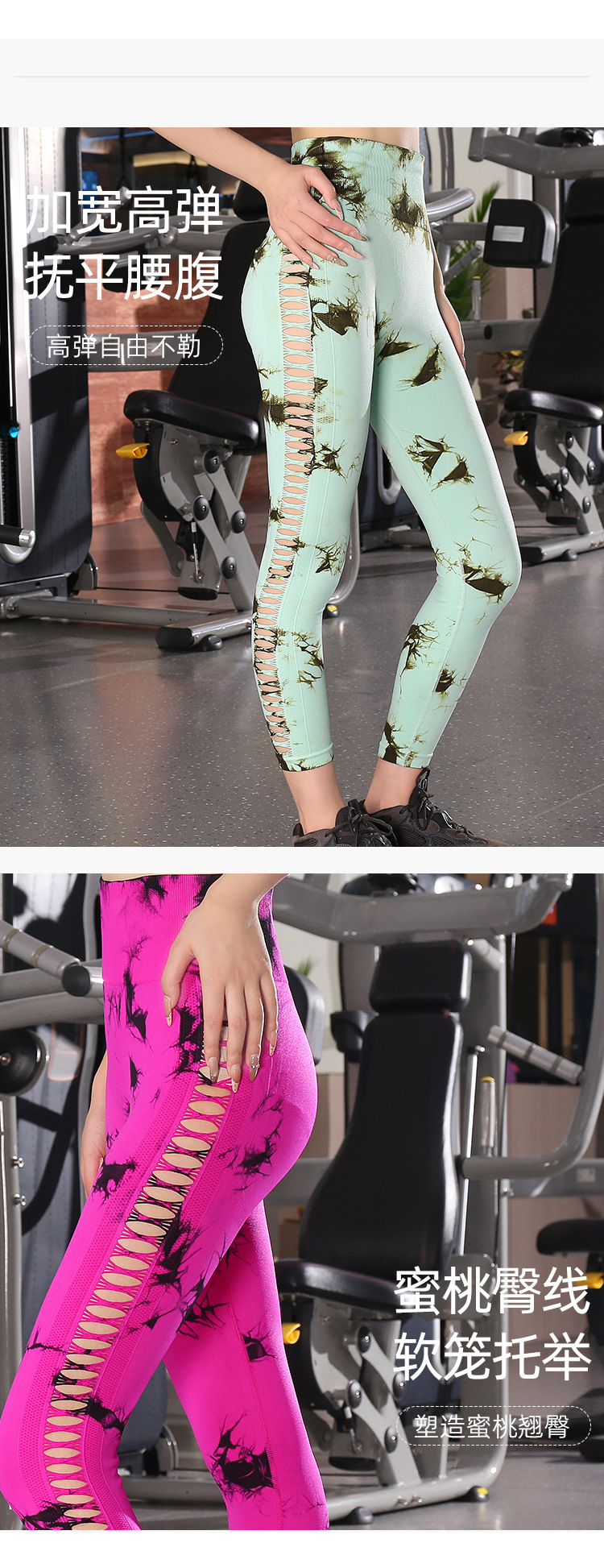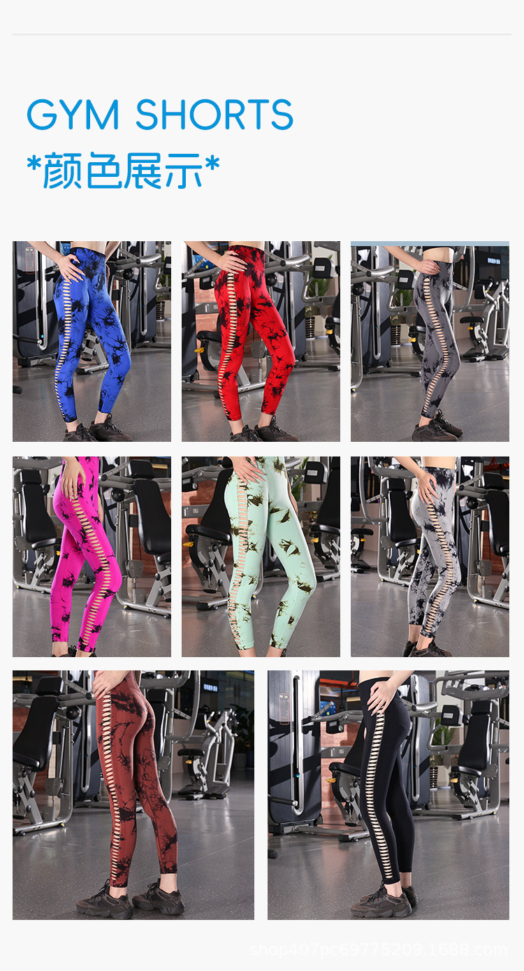 유럽과 미국의 새로운 타이 염색 요가 엉덩이 리프팅 바지 피트니스 중공 원활한 스포츠 하이 웨이스트 스타킹 여성용 러닝웨어