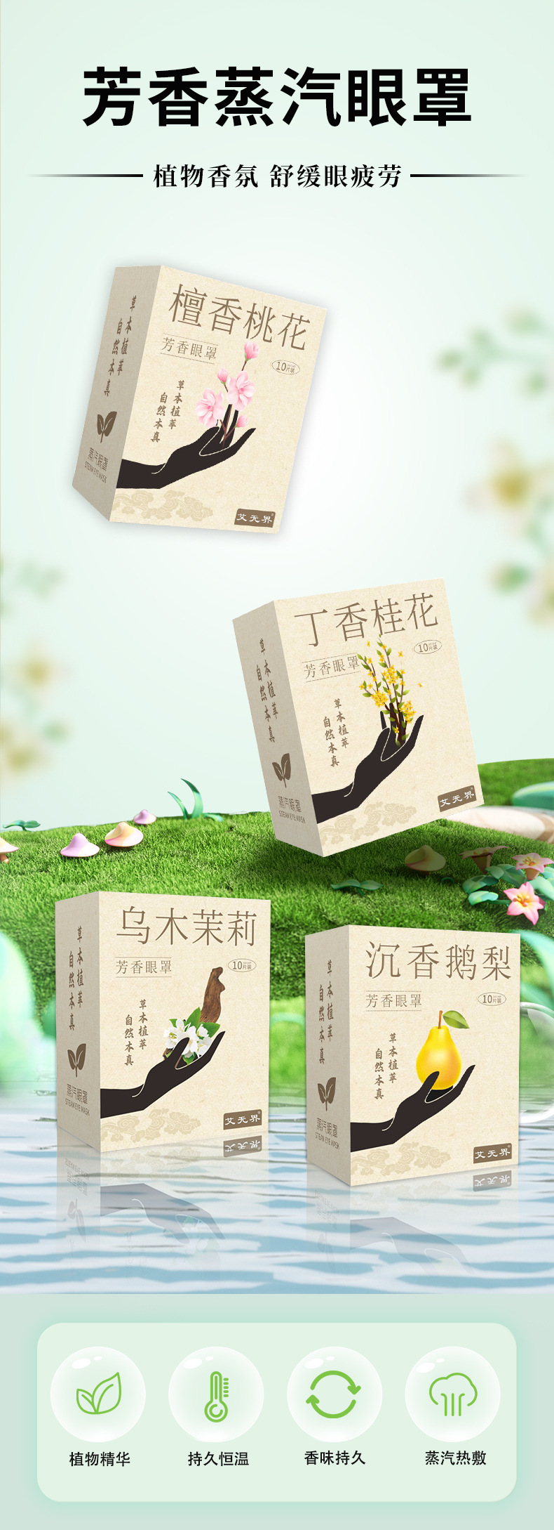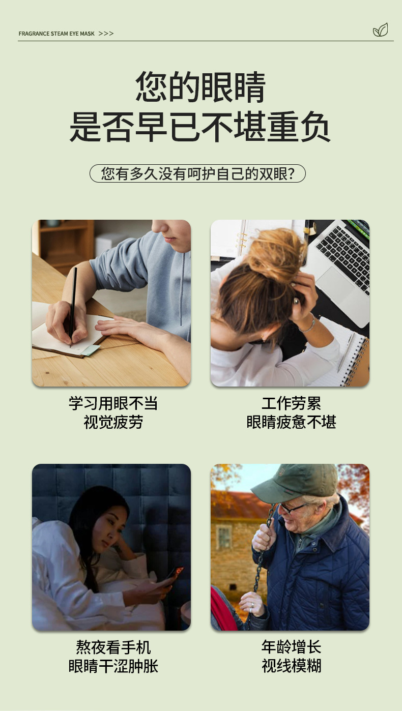 샌달 우드 향수 스팀 아이 마스크 음영 눈 보호 패치 스팀 핫 압축 아이 마스크 눈 피로를 완화하기위한 눈 피로 자체 가열 루테인스토어 가기