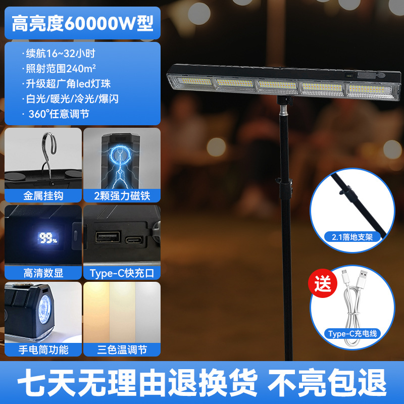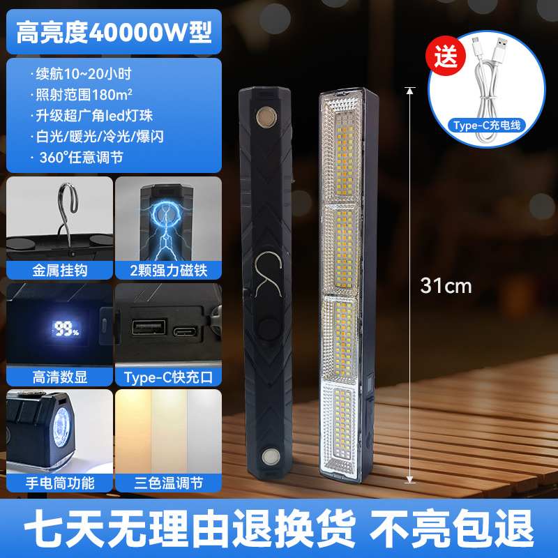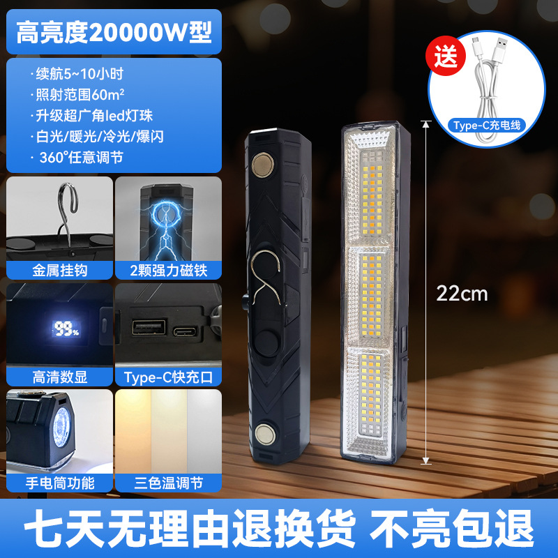 露营灯 充电照明灯 摆摊夜市灯 管户外超长续航防水帐篷灯led应急灯  led充电灯 停电照明应急灯 无线磁吸长条灯 露营户外摆摊地摊夜市灯