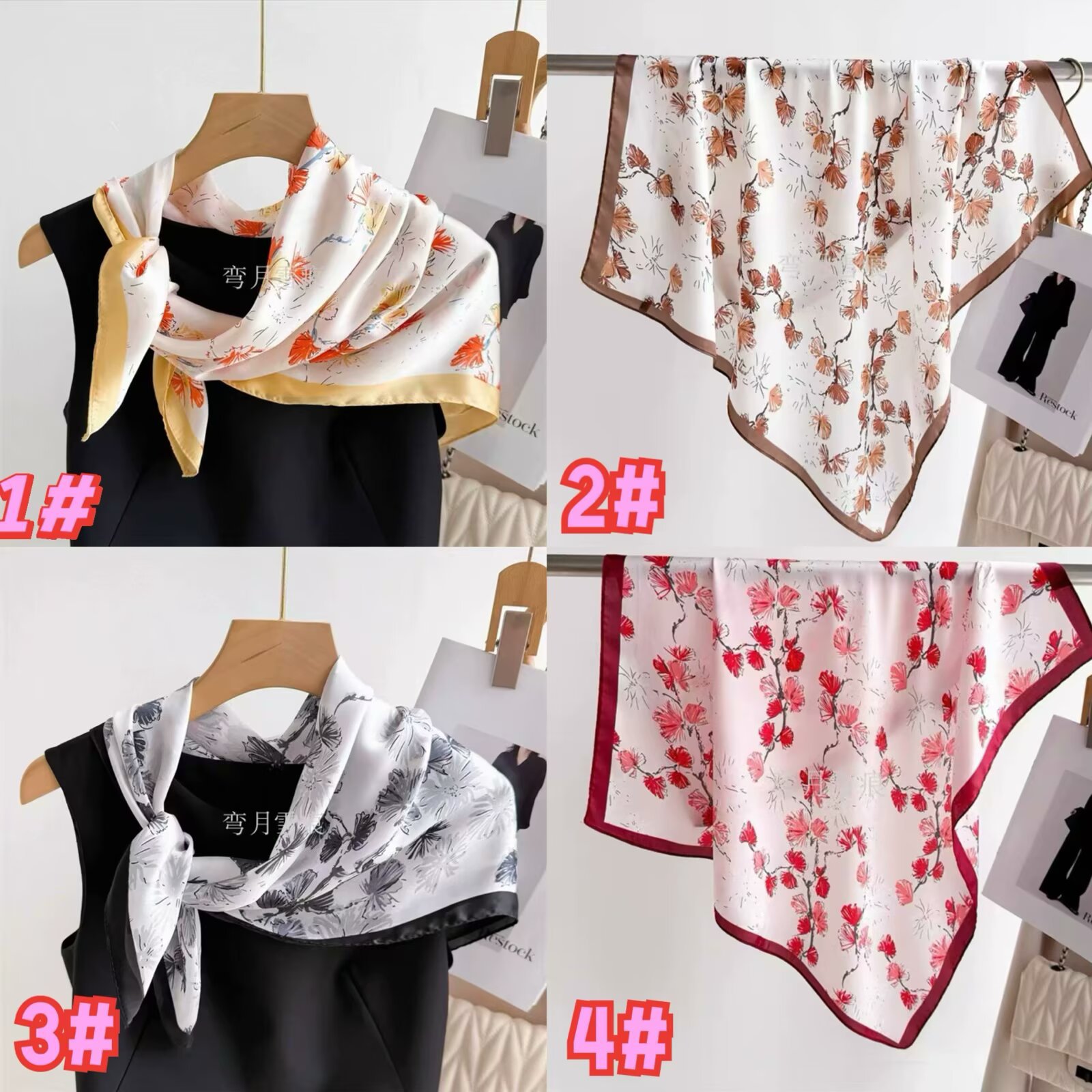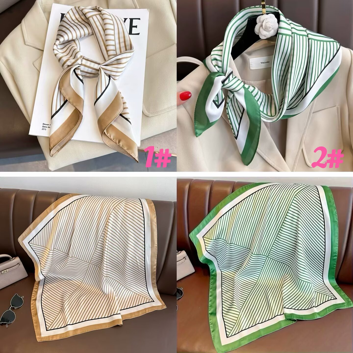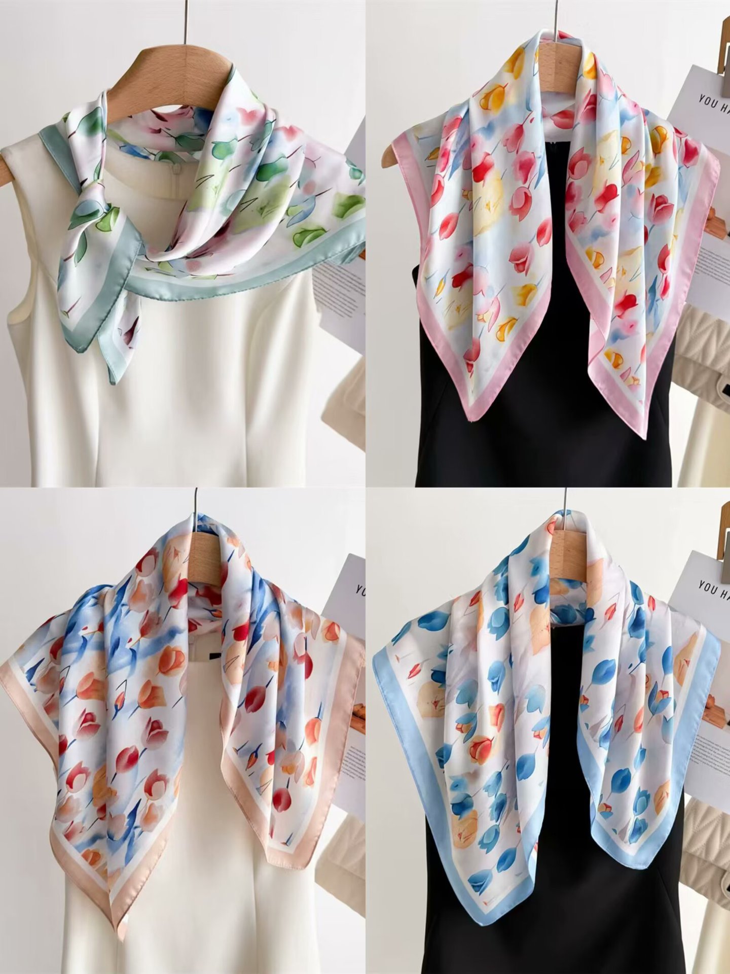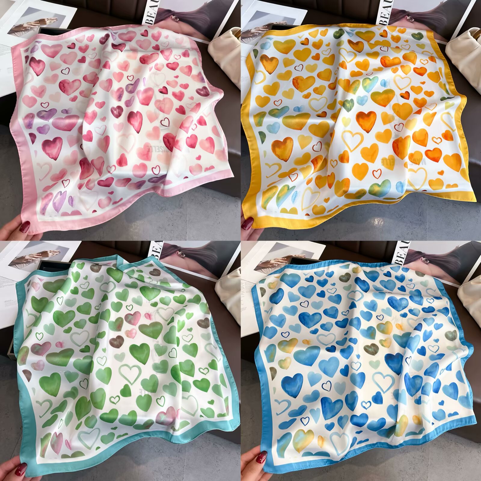 여성용 컬러풀한 스플라이스 실크 스카프, 한국식 달콤한 70스퀘어 스카프, 작은 신선한 실크 스카프, 모조 실크 숄 스카프 도매