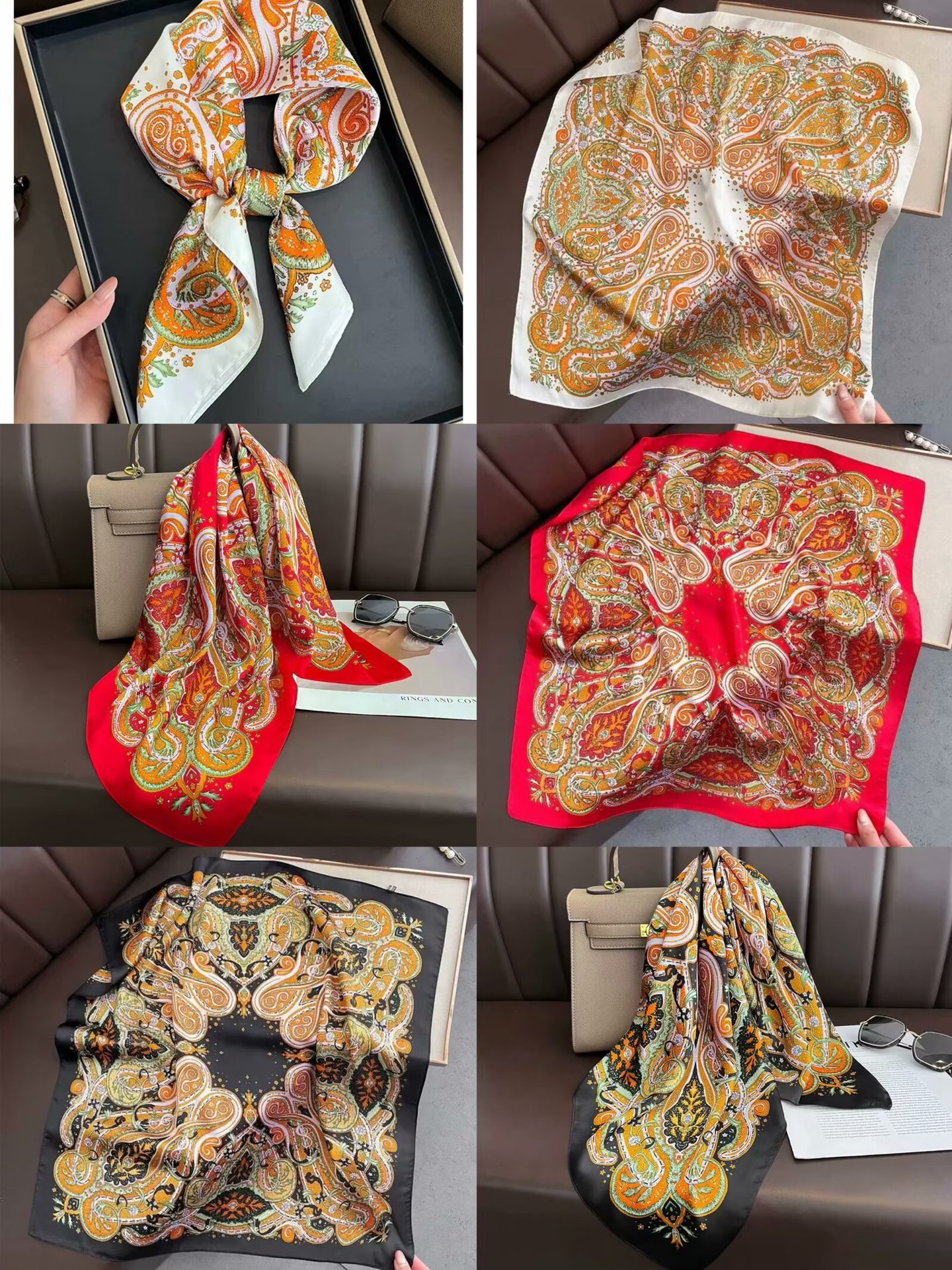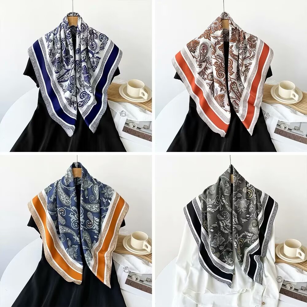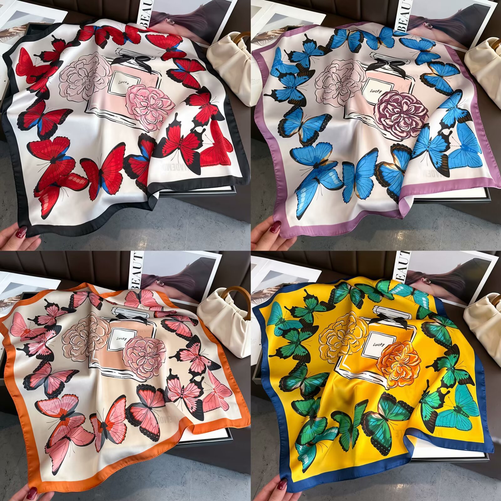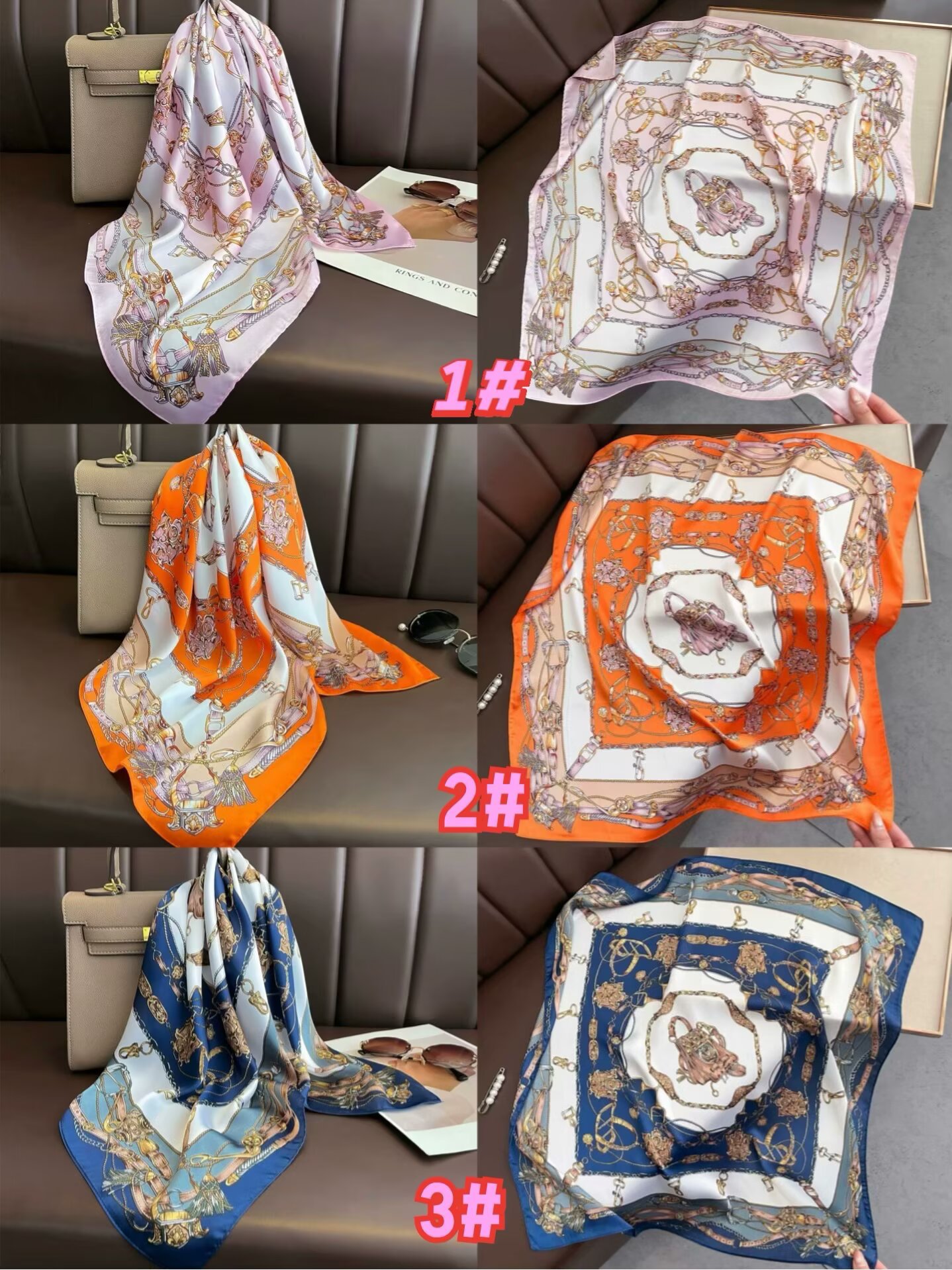 여성용 컬러풀한 스플라이스 실크 스카프, 한국식 달콤한 70스퀘어 스카프, 작은 신선한 실크 스카프, 모조 실크 숄 스카프 도매