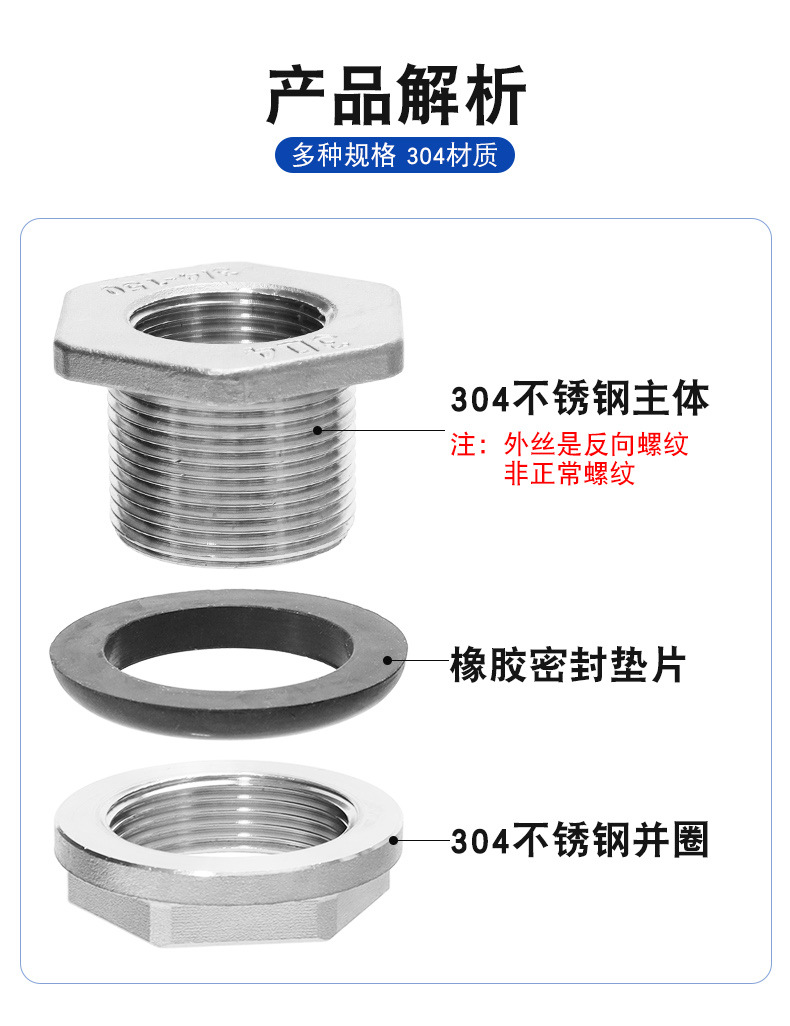 304 스테인레스 스틸 물 탱크 커넥터 2 인치 4 포인트 6 포인트 내부 와이어 워터 타워 버킷 연료 탱크 내부 와이어 상부 및 하부 물 배출구 파이프 피팅