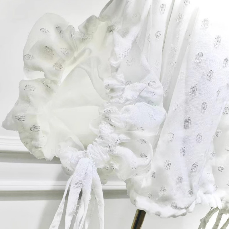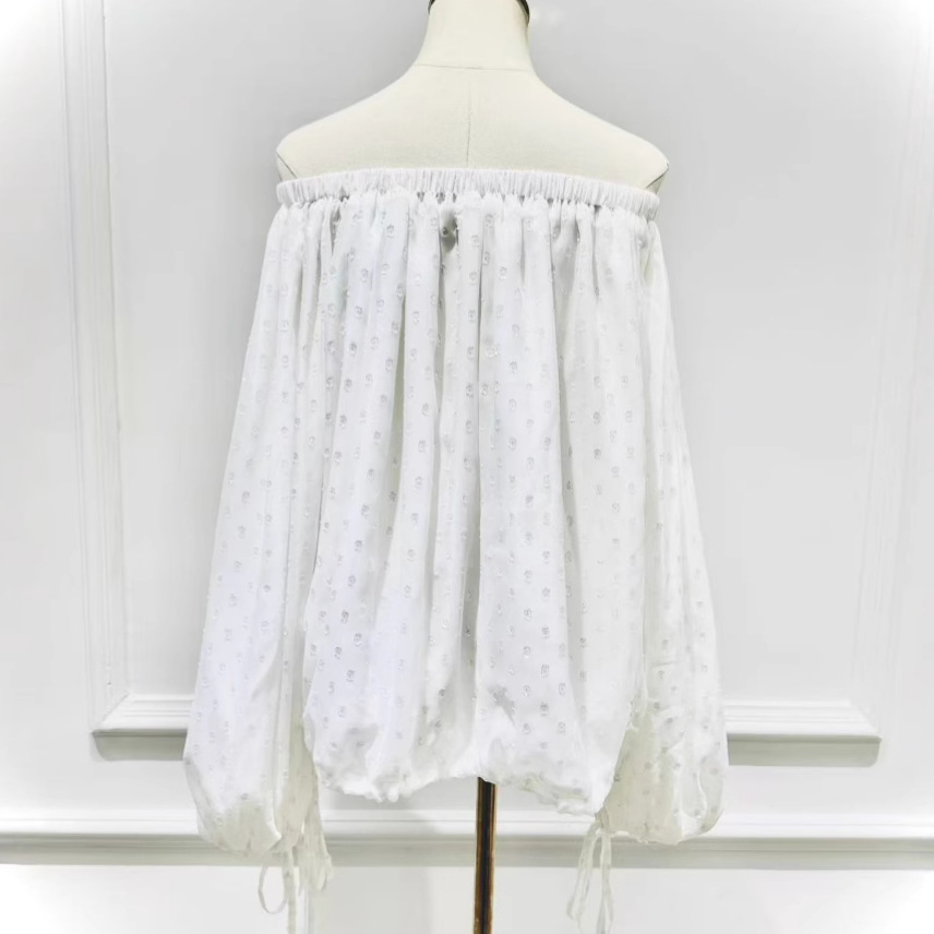 한국 달콤한 폴카 도트 귀 모양의 원라인 칼라 쉬폰 랜턴 슬리브 셔츠 2025 봄 여름 프렌치 긴팔 탑