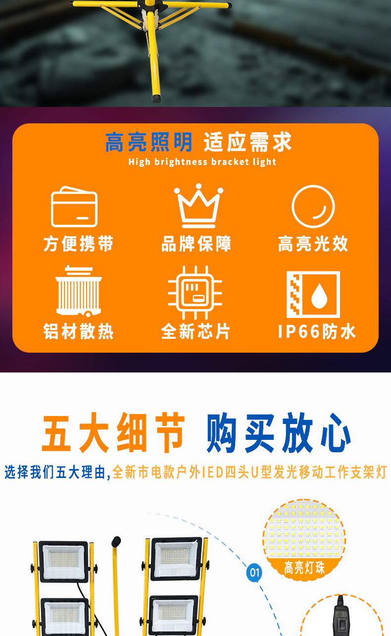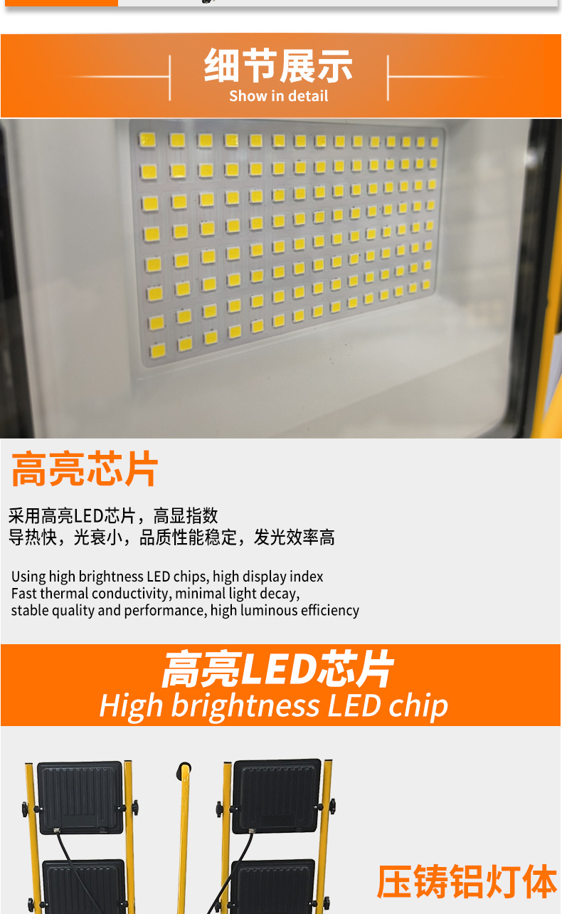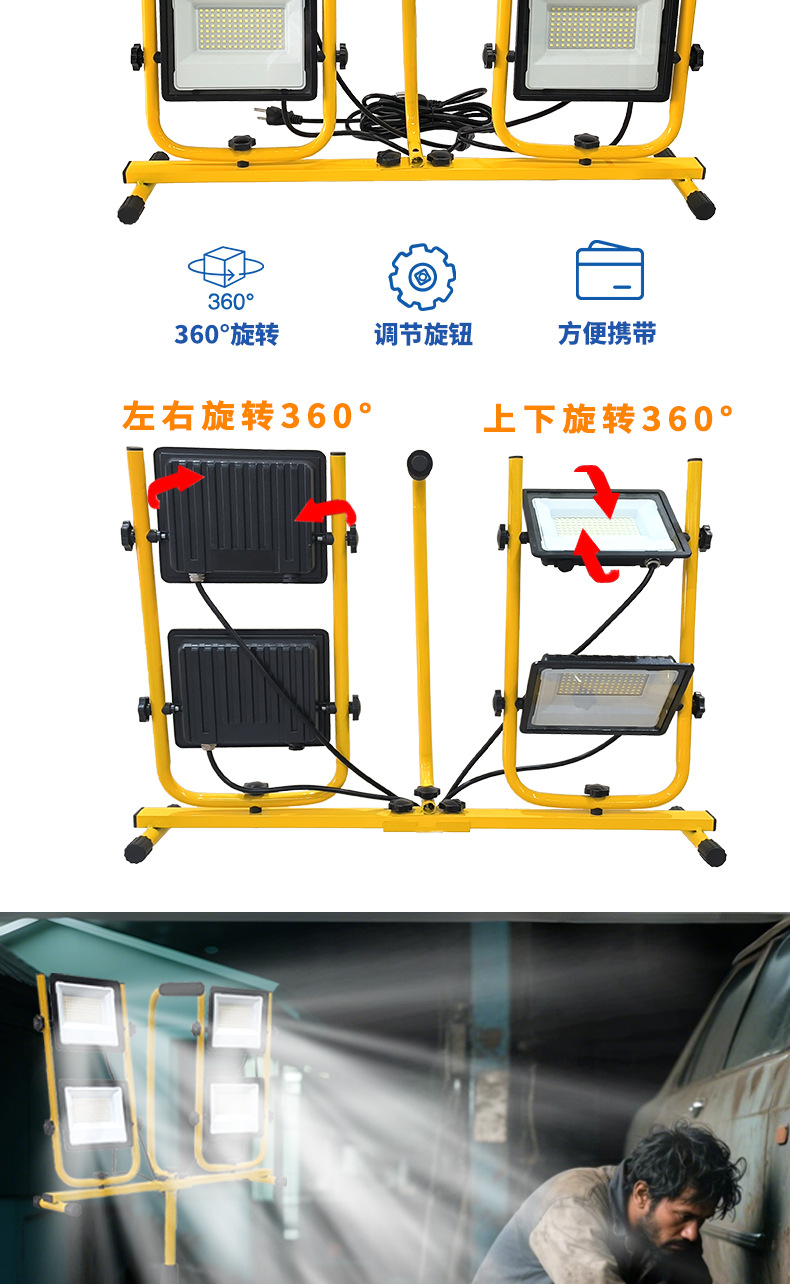 LED 작업 직립 투광 조명 휴대용 휴대용 투광 조명 야외 비상 야시장 노점 램프 브래킷 조명