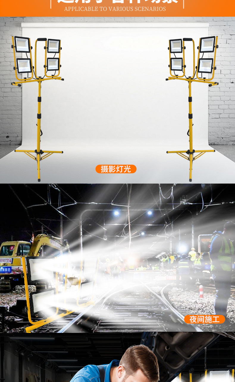 LED 작업 직립 투광 조명 휴대용 휴대용 투광 조명 야외 비상 야시장 노점 램프 브래킷 조명스토어 가기