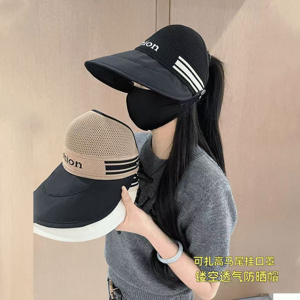 여름 새로운 할로우 통기성 어부 모자 여성의 교수형 마스크 야외 태양 보호 포니 테일 패션 캡스토어 가기