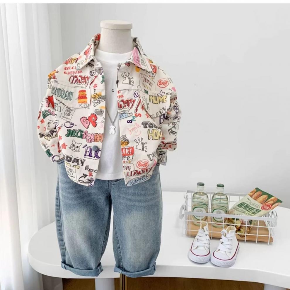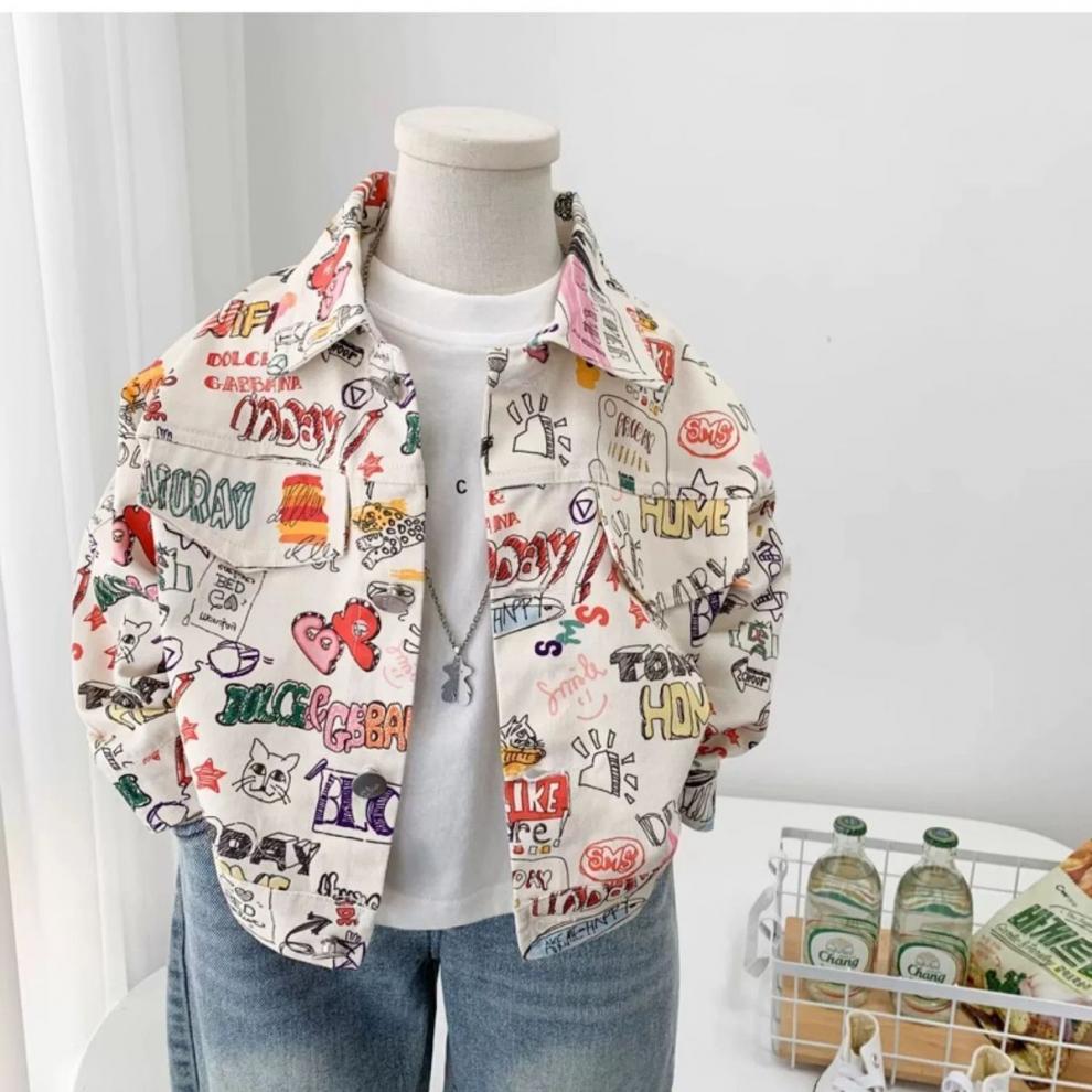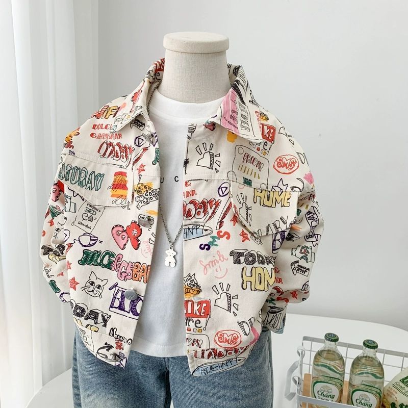 아동 데님 재킷 2025 봄 코튼 소년 낙서 스타일 캐주얼 재킷 유행 탑스토어 가기