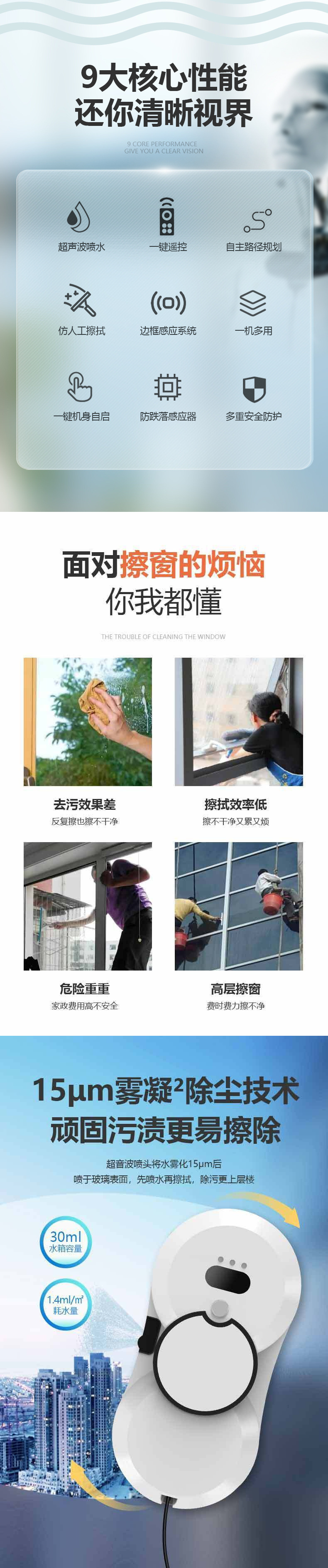 창문 청소 로봇, 완전 자동 물 분사, 스마트 홈 전기 고층 외부 창 청소 로봇, 유리 청소 로봇