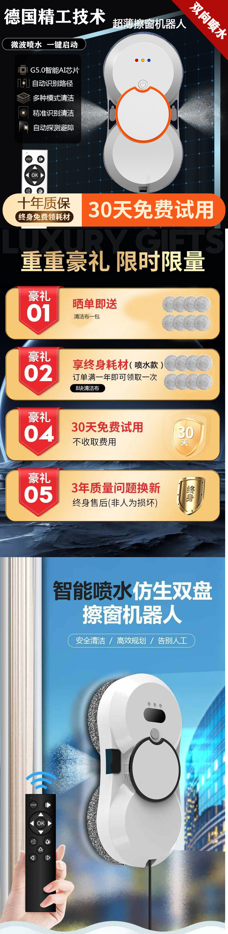 • 플래그십 버전 듀얼 워터 스프레이 자동 계획 + 앱 제어 + 가압