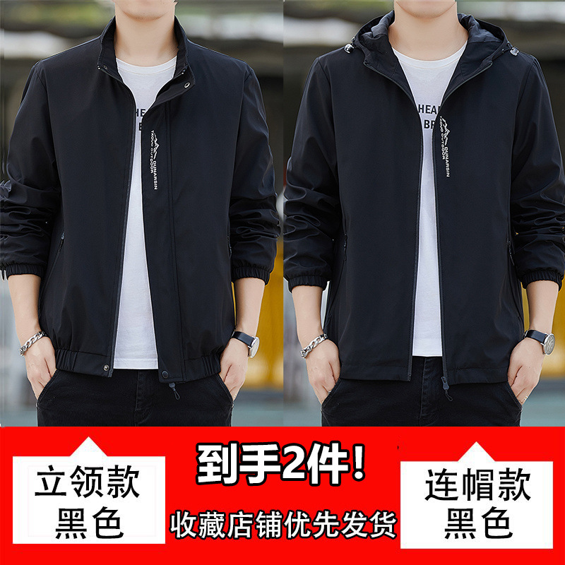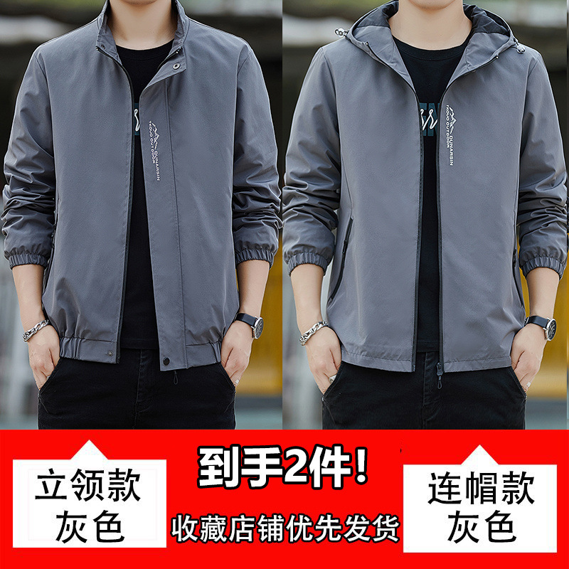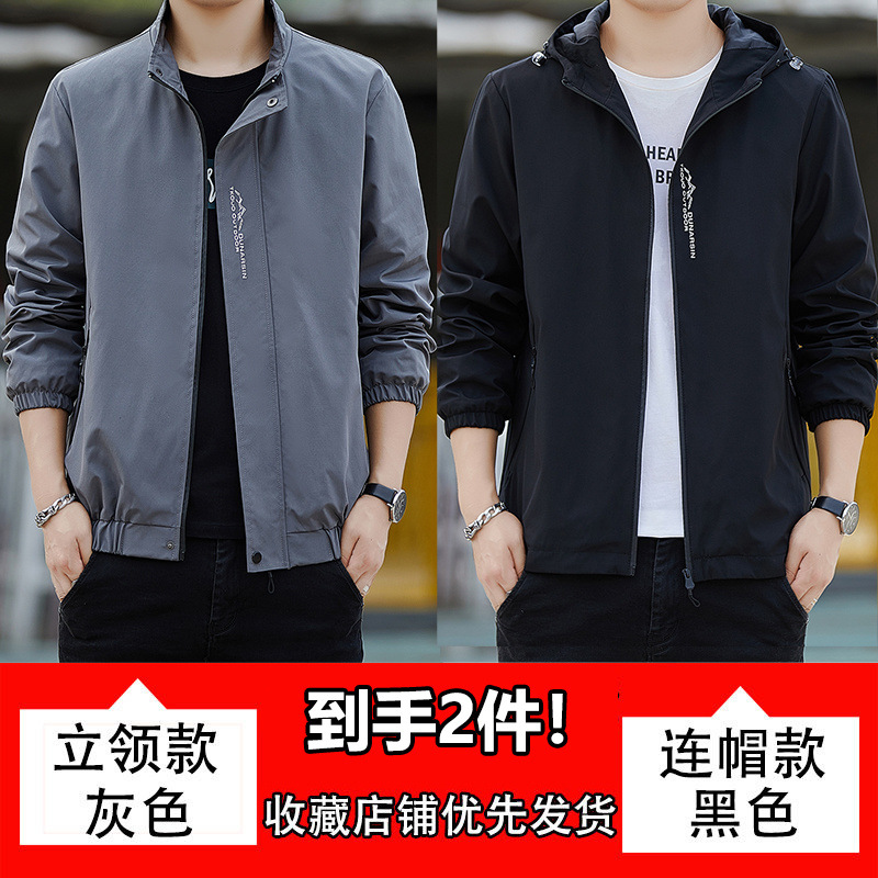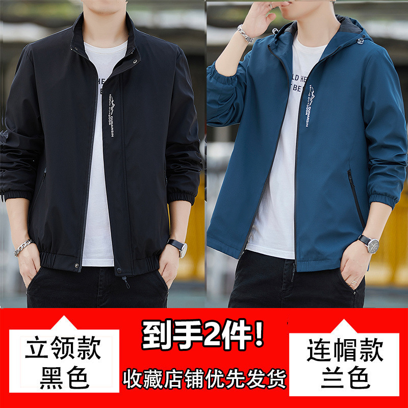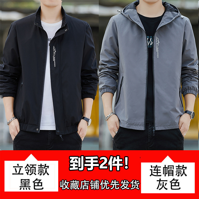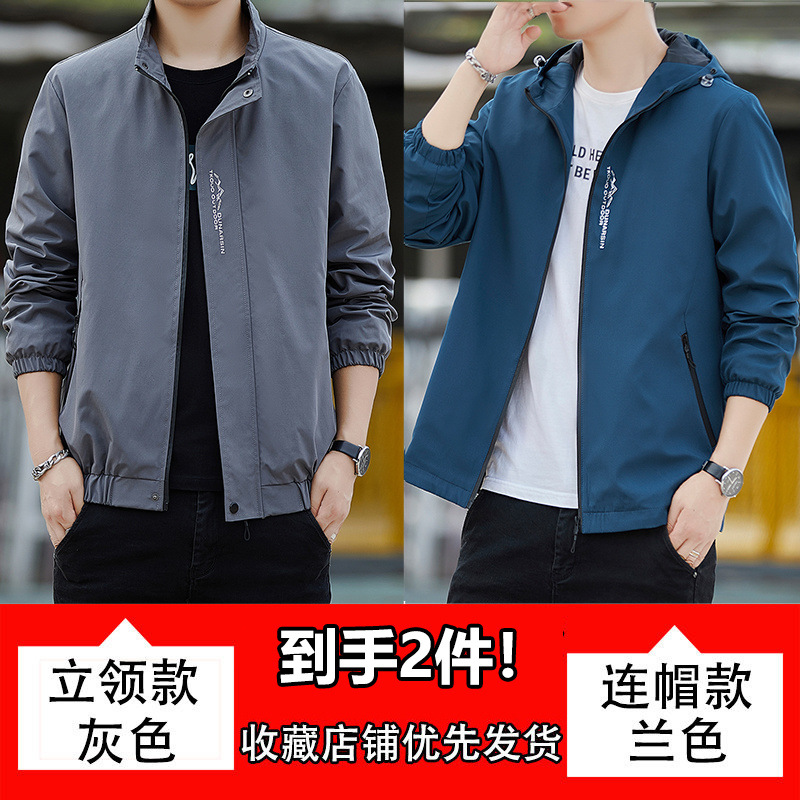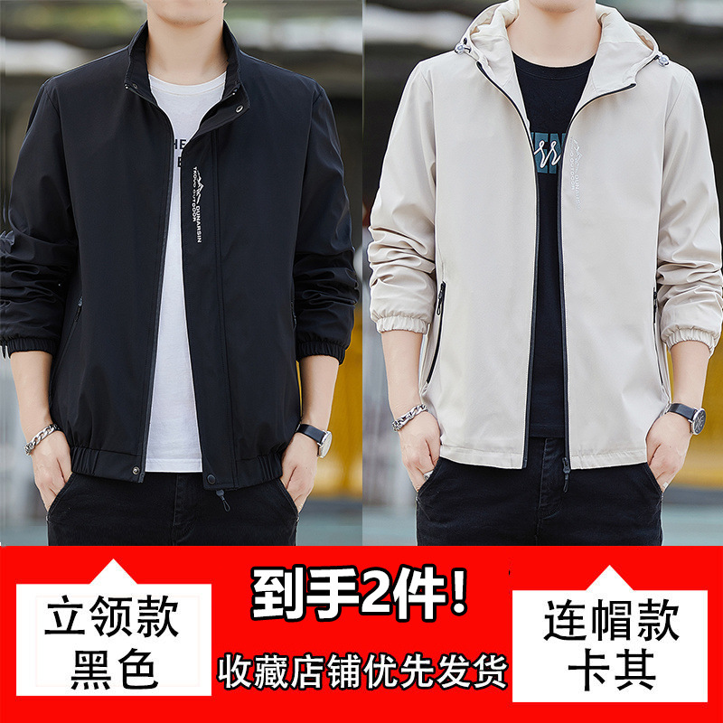 남성용 재킷, 방풍 및 방수, 봄, 가을, 루즈한 대형 한국식 다용도 청소년 스탠드 칼라 재킷 탑스토어 가기