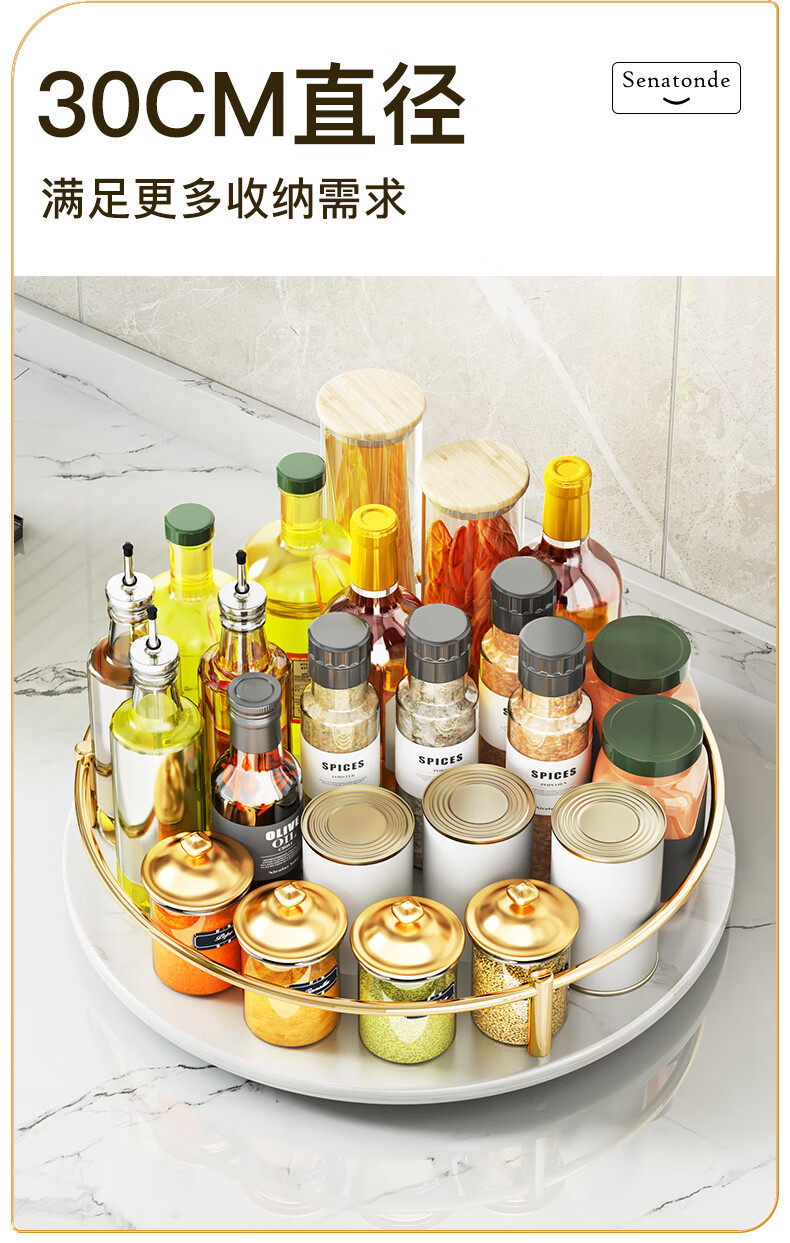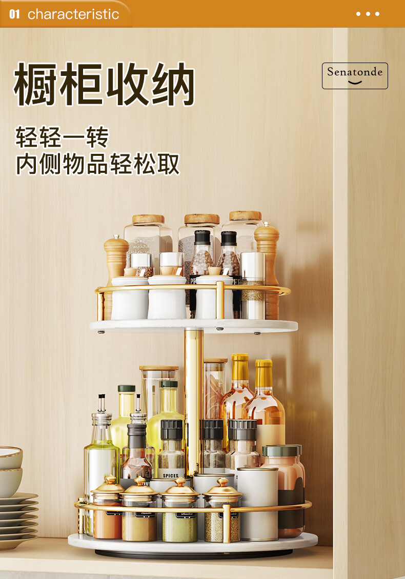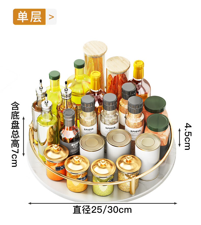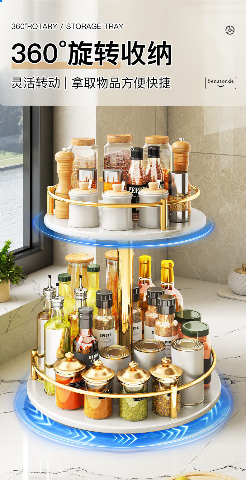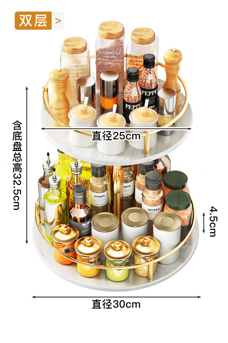 주방 조리대 다기능 오일, 소금, 소스 및 식초 조미료 트레이 원형 보관 상자 이중층 석판 회전 조미료 랙스토어 가기