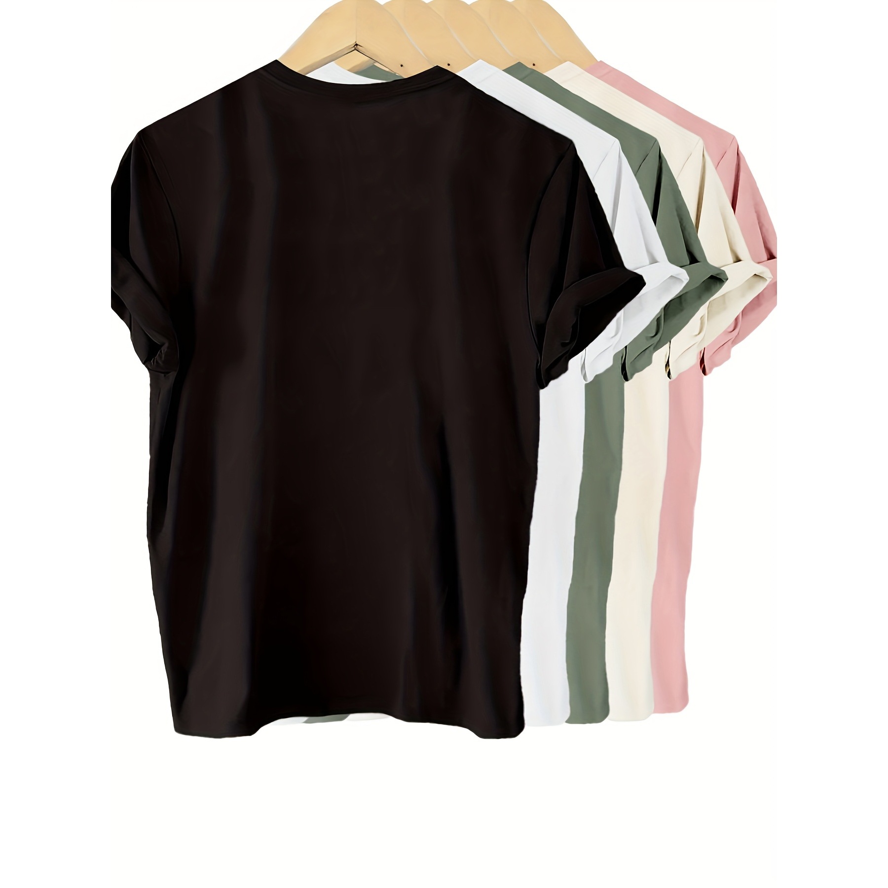 [유럽 사이즈 코튼 T] 여성용 순면 티셔츠 5팩 - 캐주얼 라운드넥 솔리드 컬러 반팔 공장 공급스토어 가기