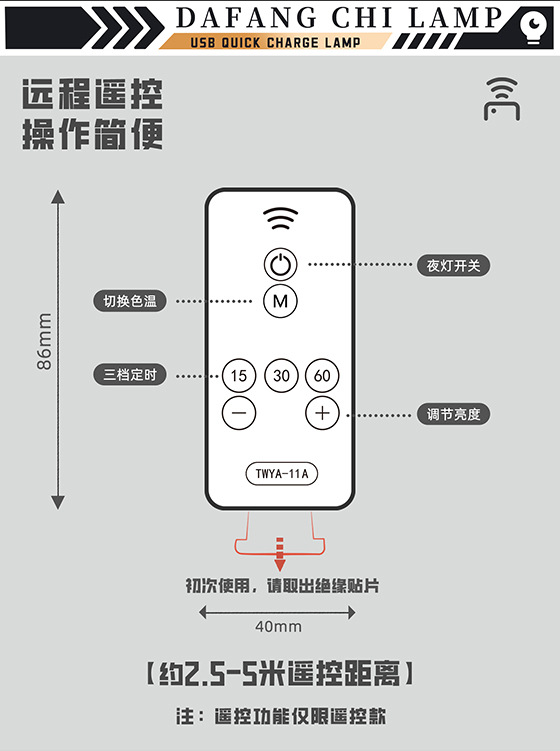 产品配件:说明书+遥控器(仅限遥控款和夜灯款)