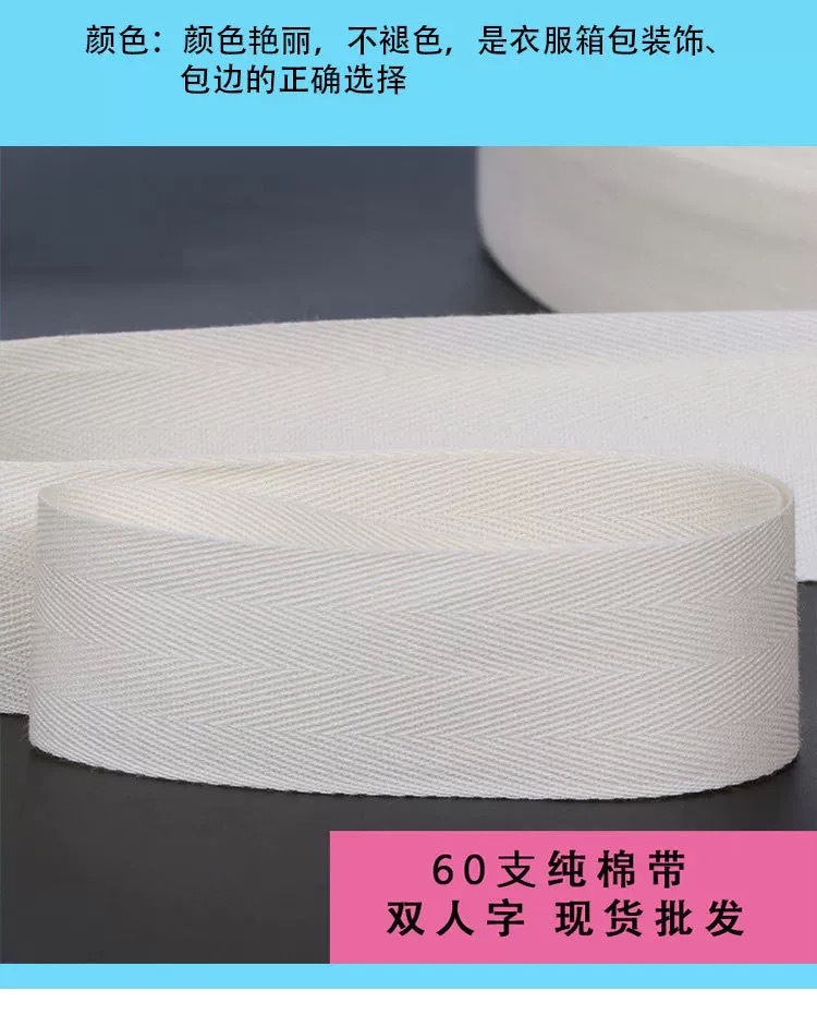 흰색과 검정색 면 스트랩, 빗질 면 웨빙, 면 헤링본 스트랩, 뒷 칼라 스트라이프 의류 액세서리 60개 재고 있음