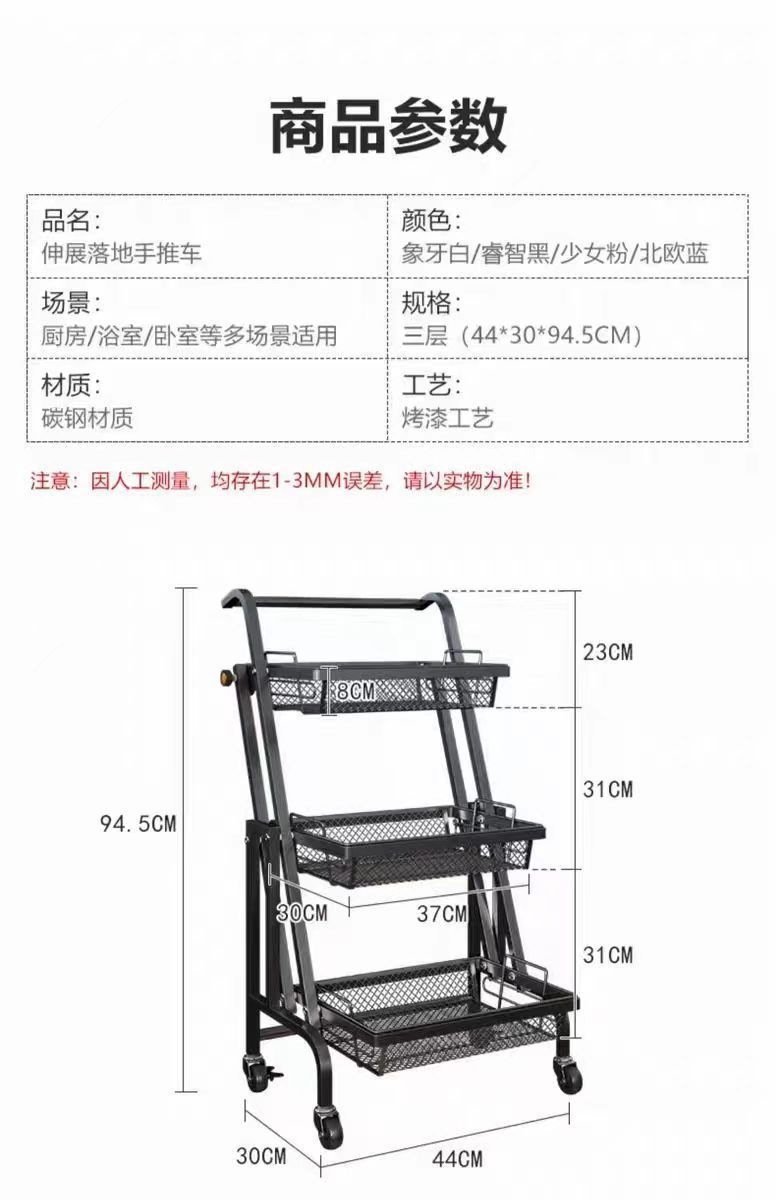 3층 주방 수납 선반, 가정용 이동식 수납 선반, 다층 수납, 다기능 수납 선반, 스톨 트롤리스토어 가기