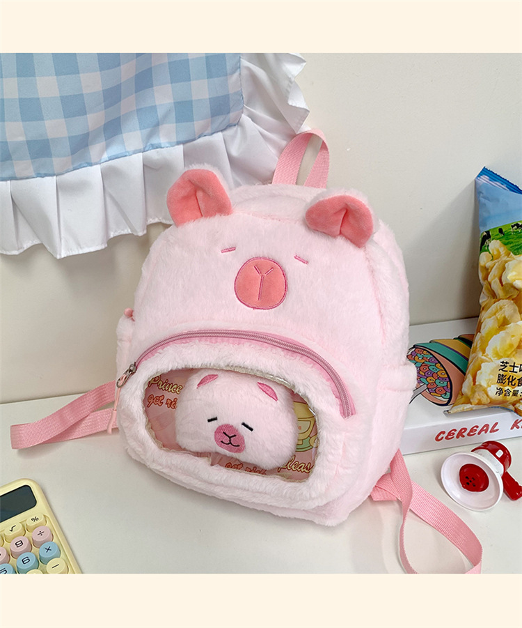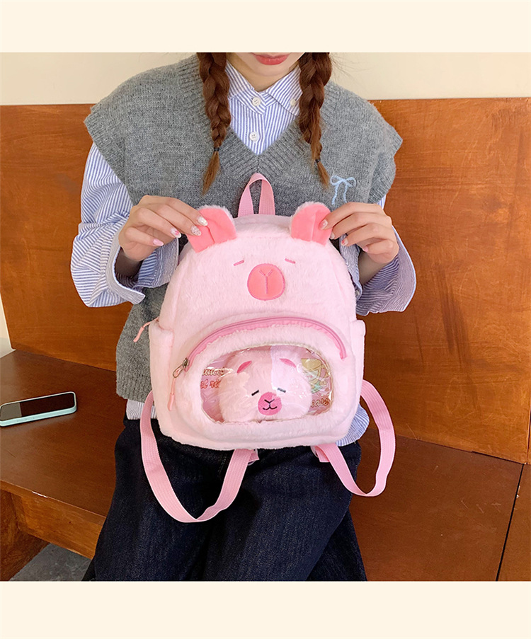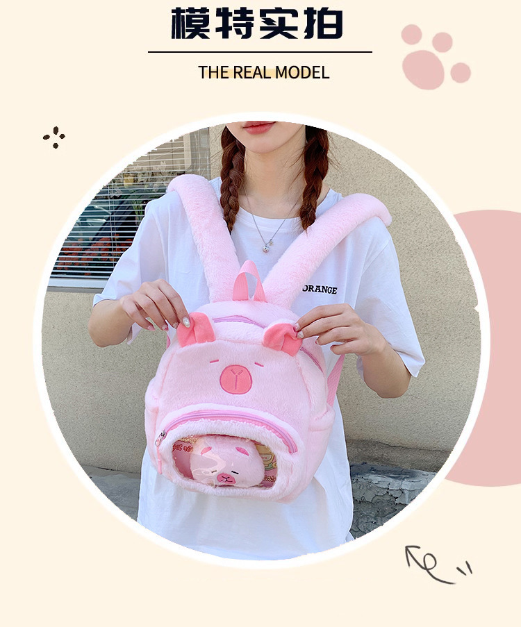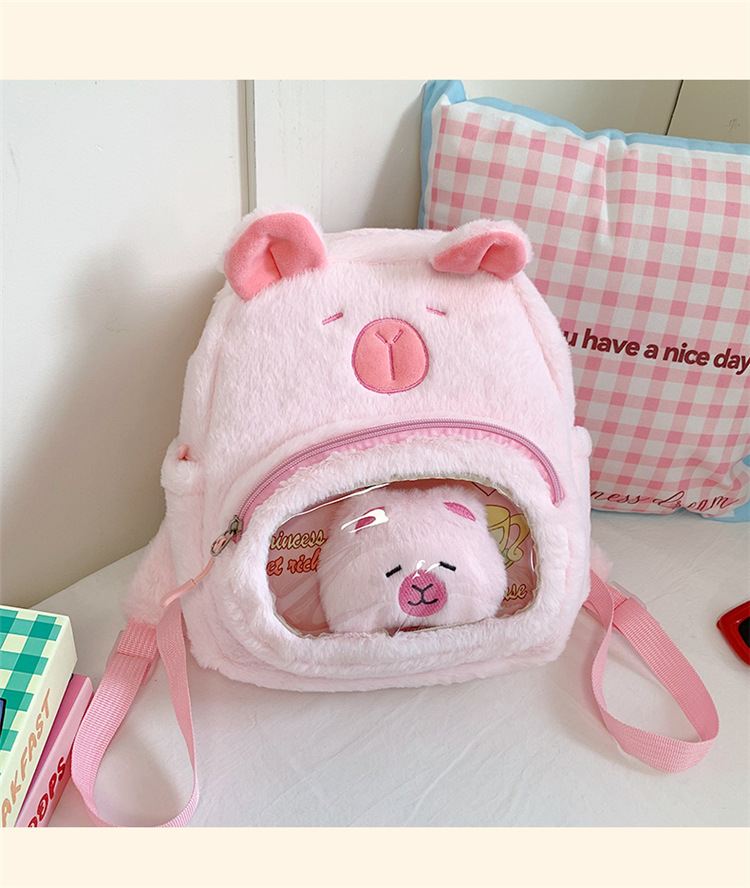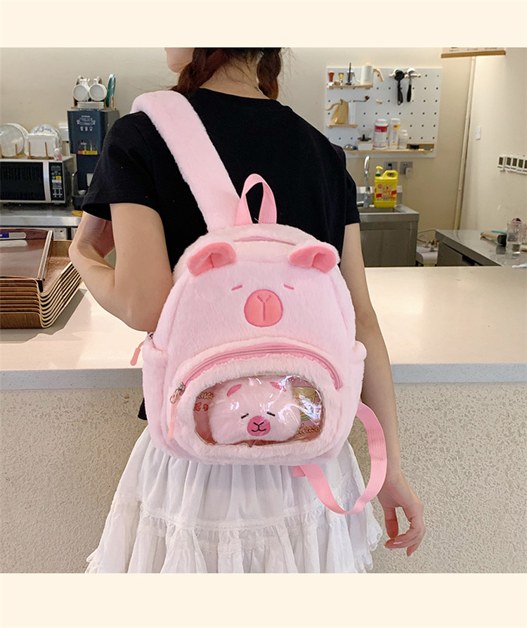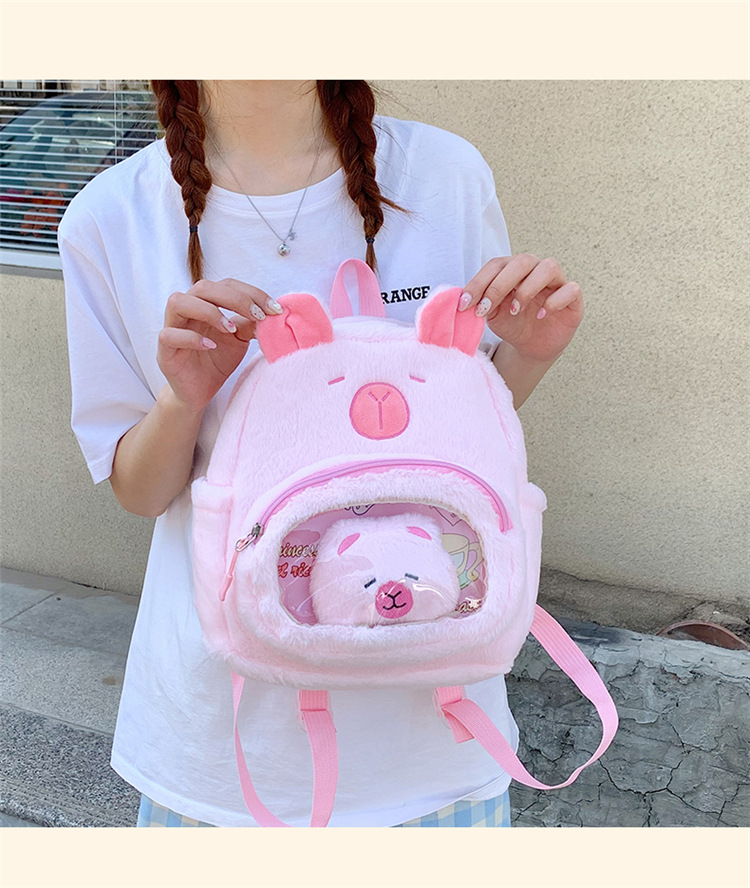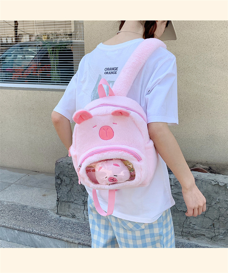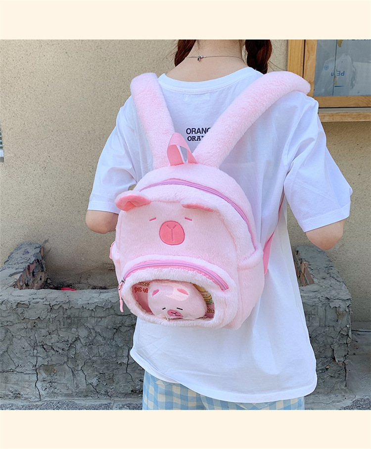 십대 소녀를위한 새로운 만화 귀여운 배낭 대용량 플러시 학교 가방 대학생 어린이 캐주얼 Capybara 배낭