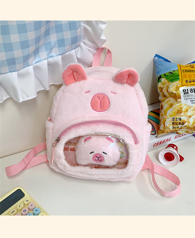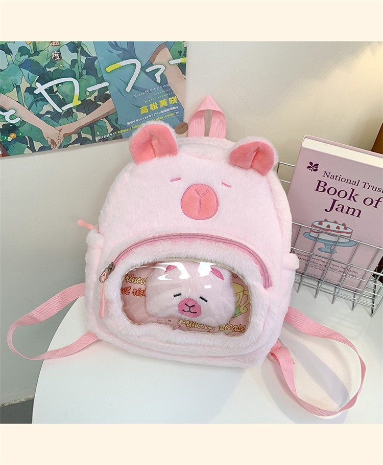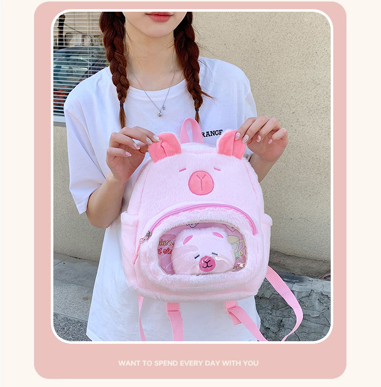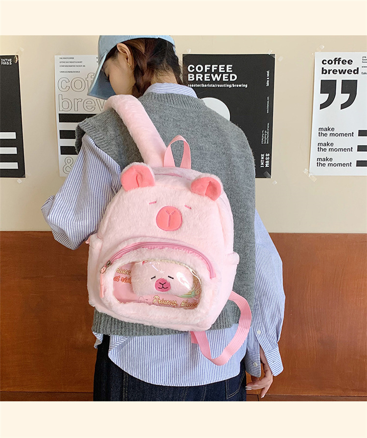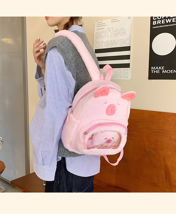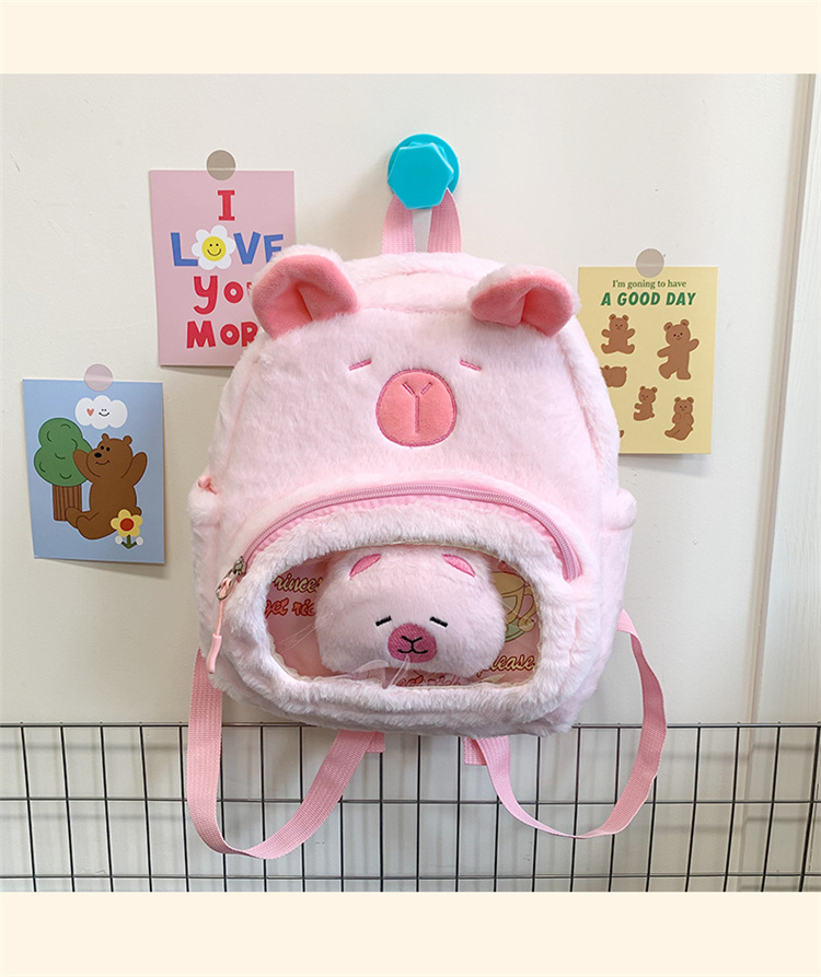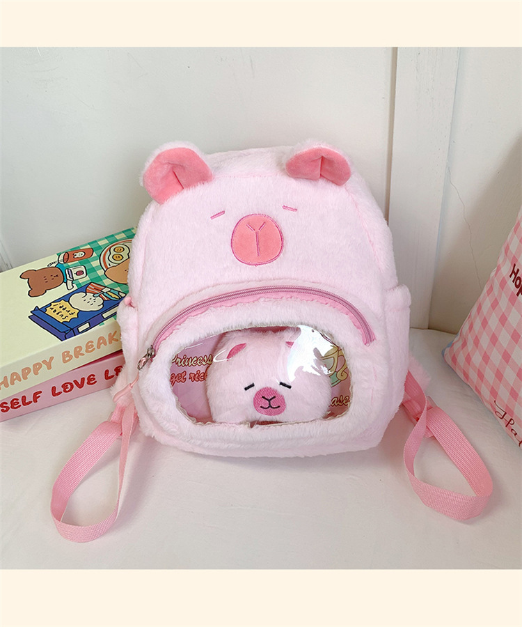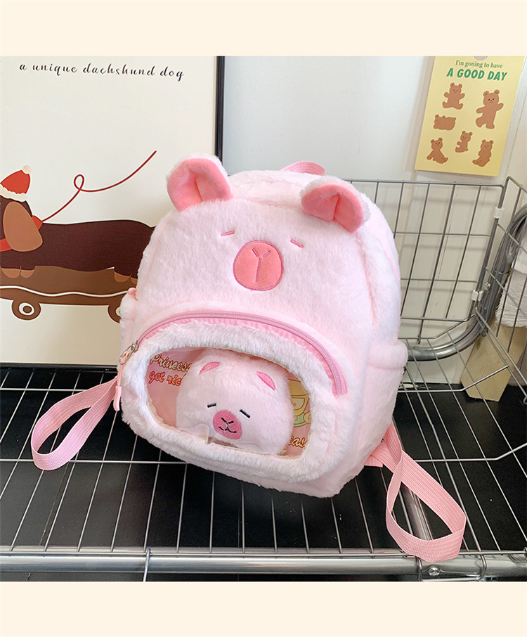 십대 소녀를위한 새로운 만화 귀여운 배낭 대용량 플러시 학교 가방 대학생 어린이 캐주얼 Capybara 배낭