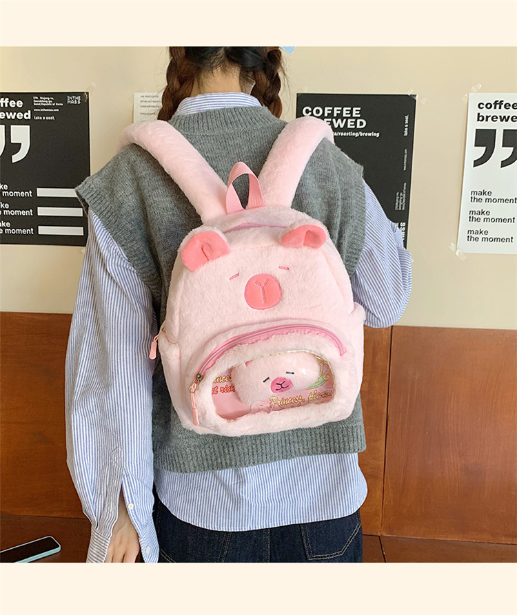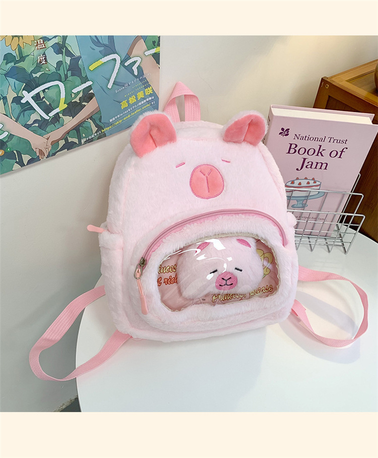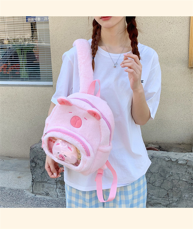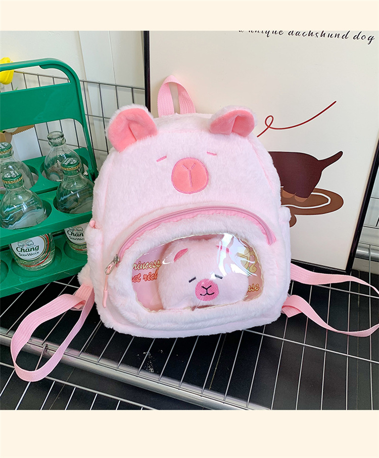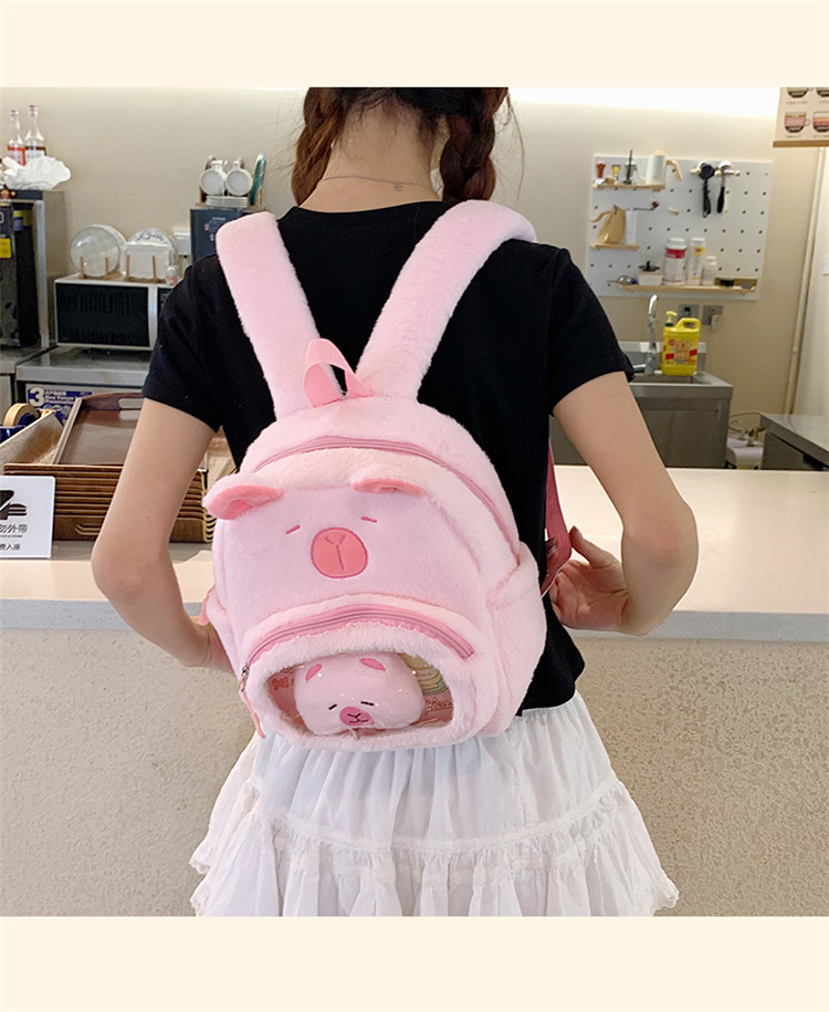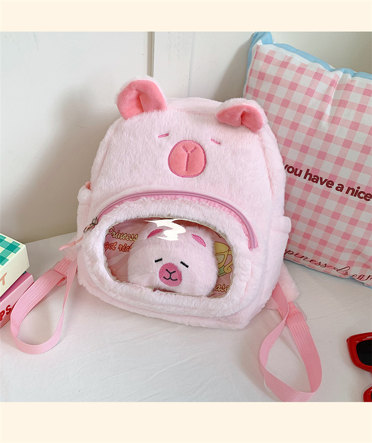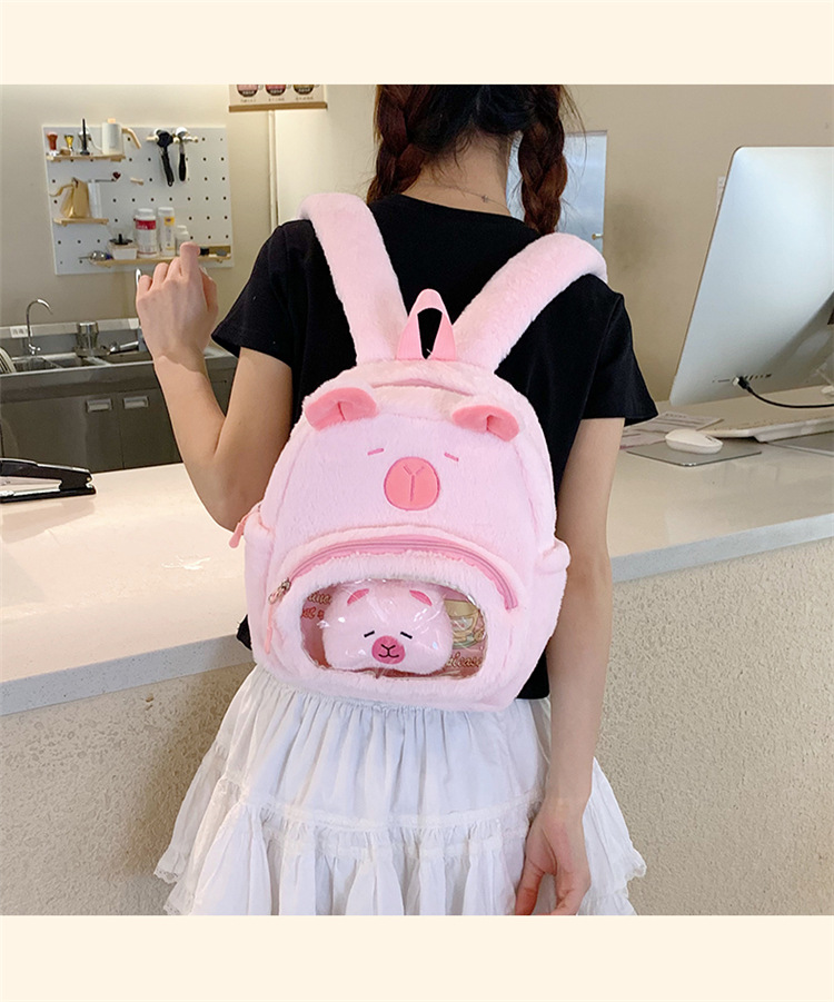 십대 소녀를위한 새로운 만화 귀여운 배낭 대용량 플러시 학교 가방 대학생 어린이 캐주얼 Capybara 배낭
