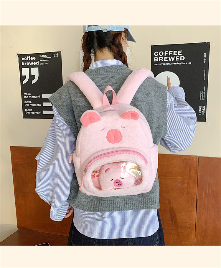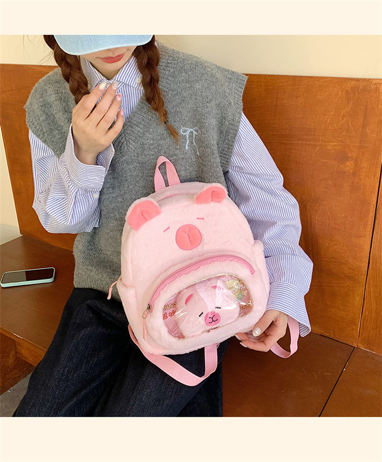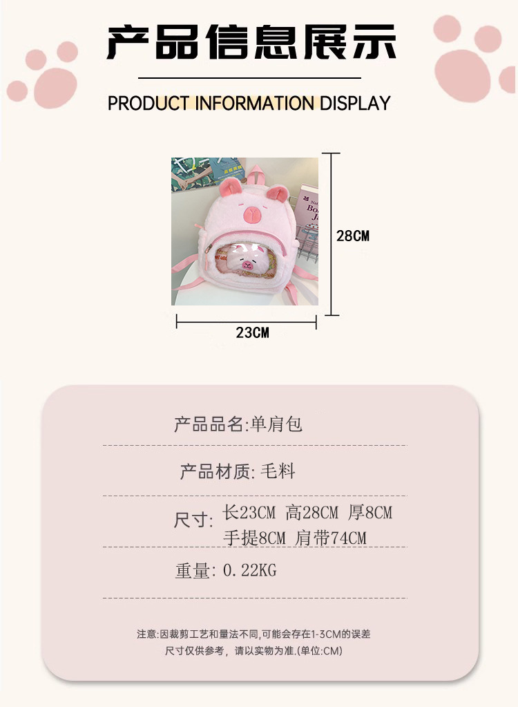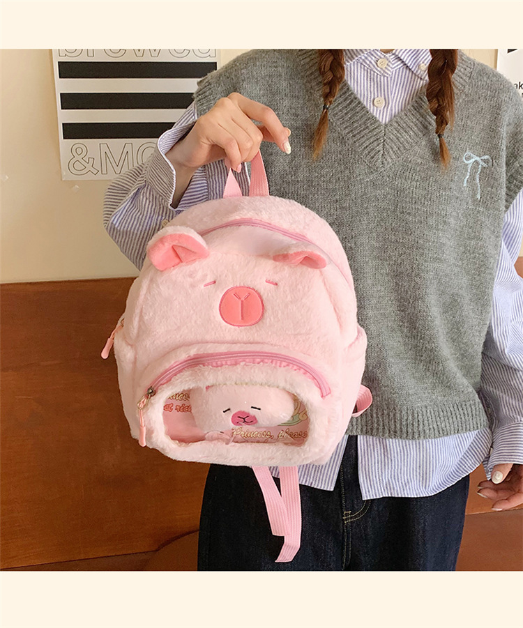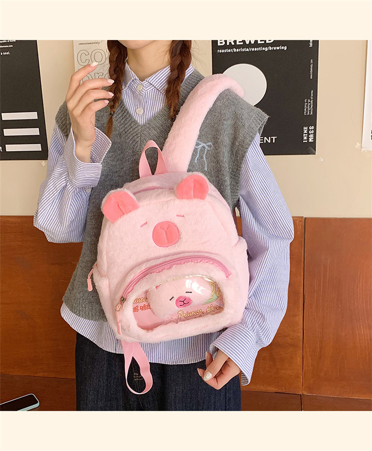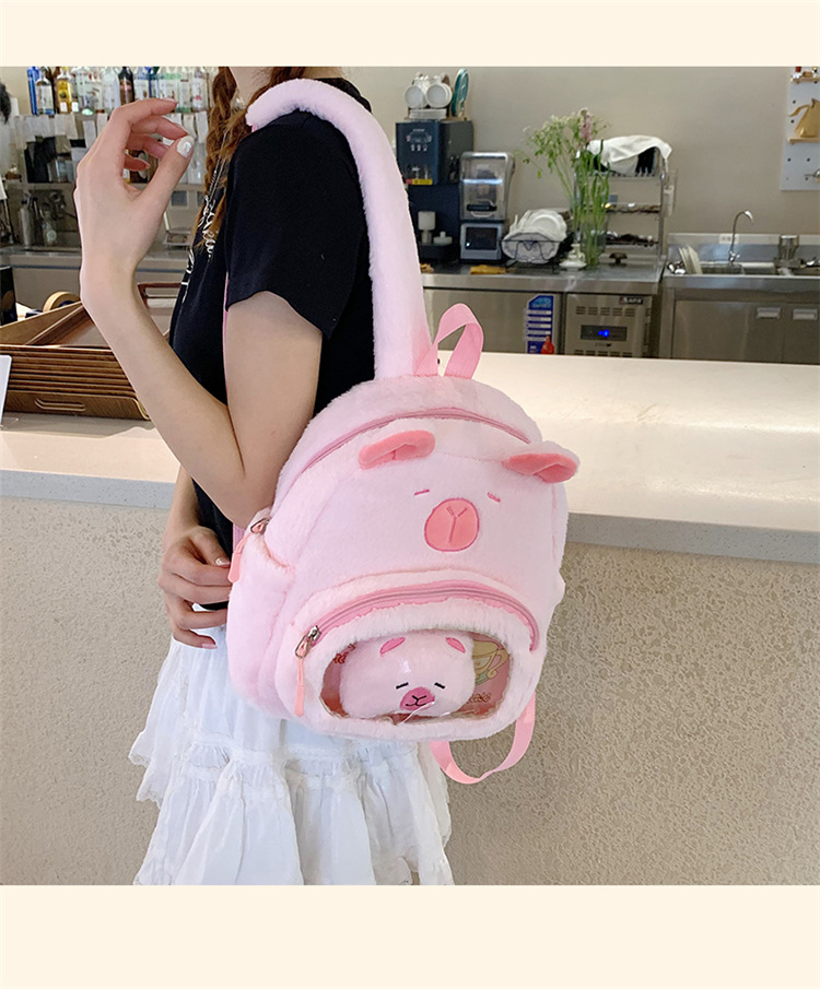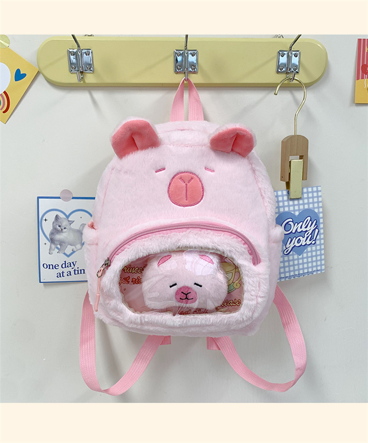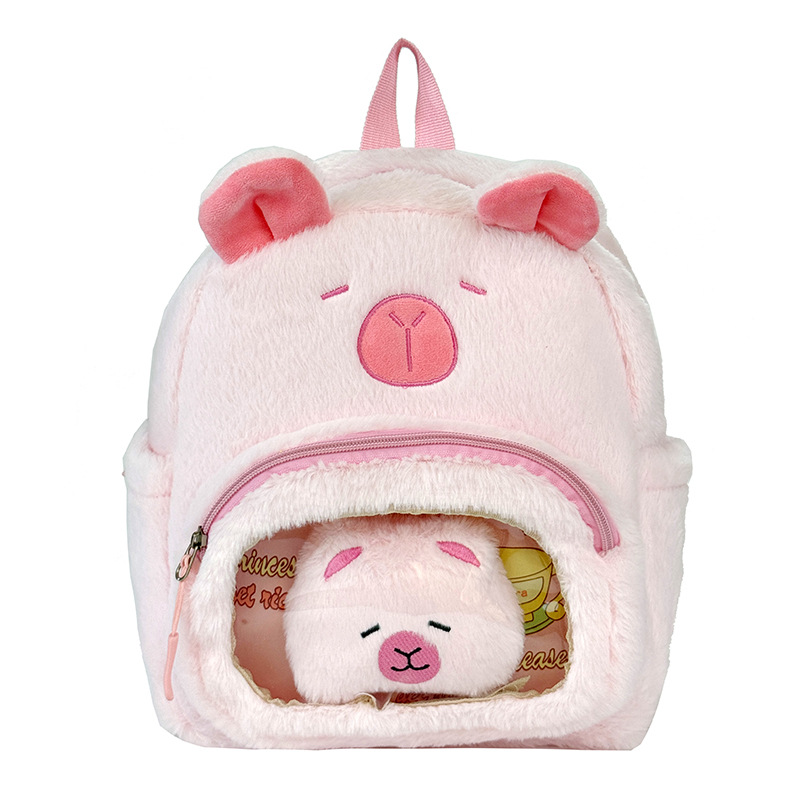 십대 소녀를위한 새로운 만화 귀여운 배낭 대용량 플러시 학교 가방 대학생 어린이 캐주얼 Capybara 배낭