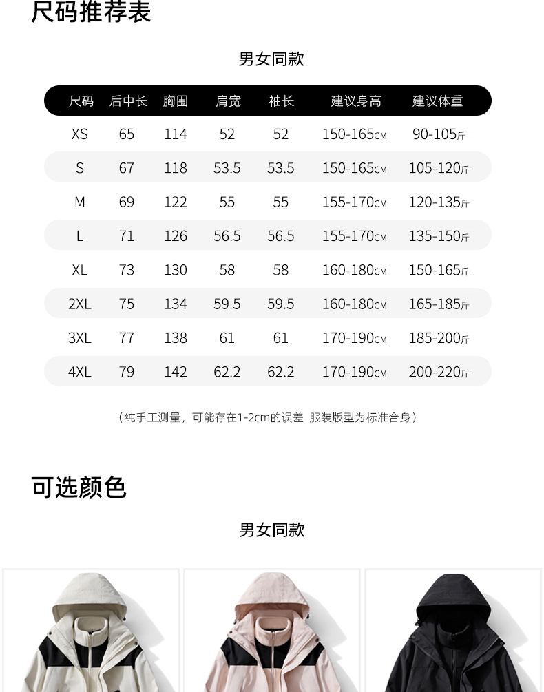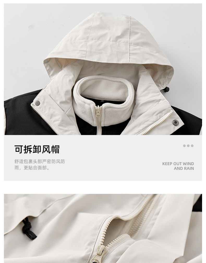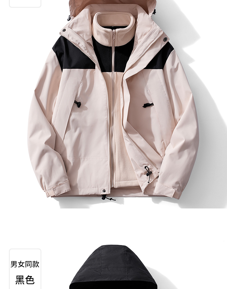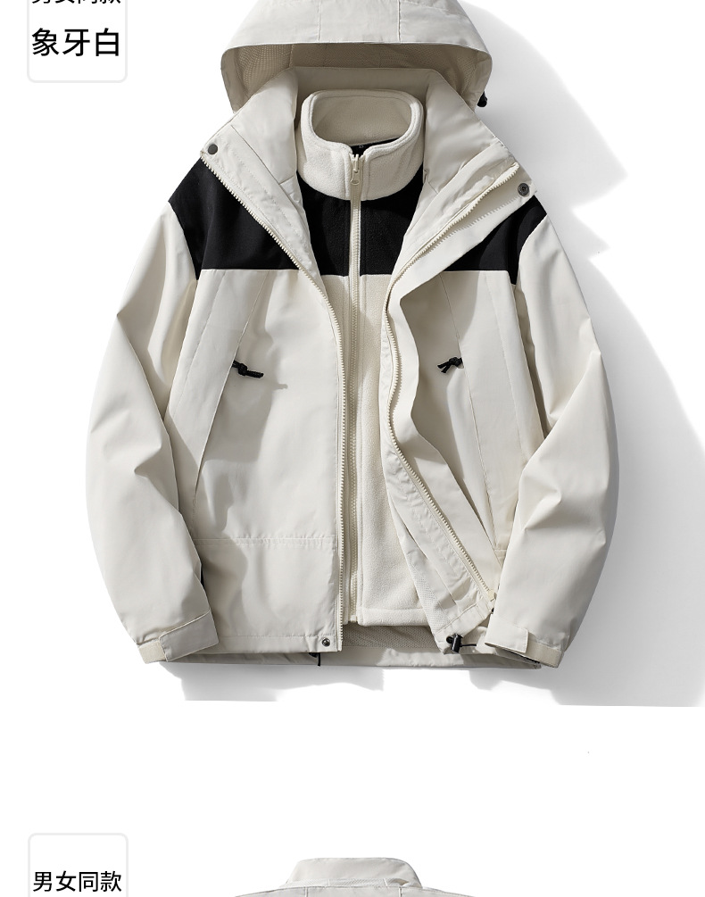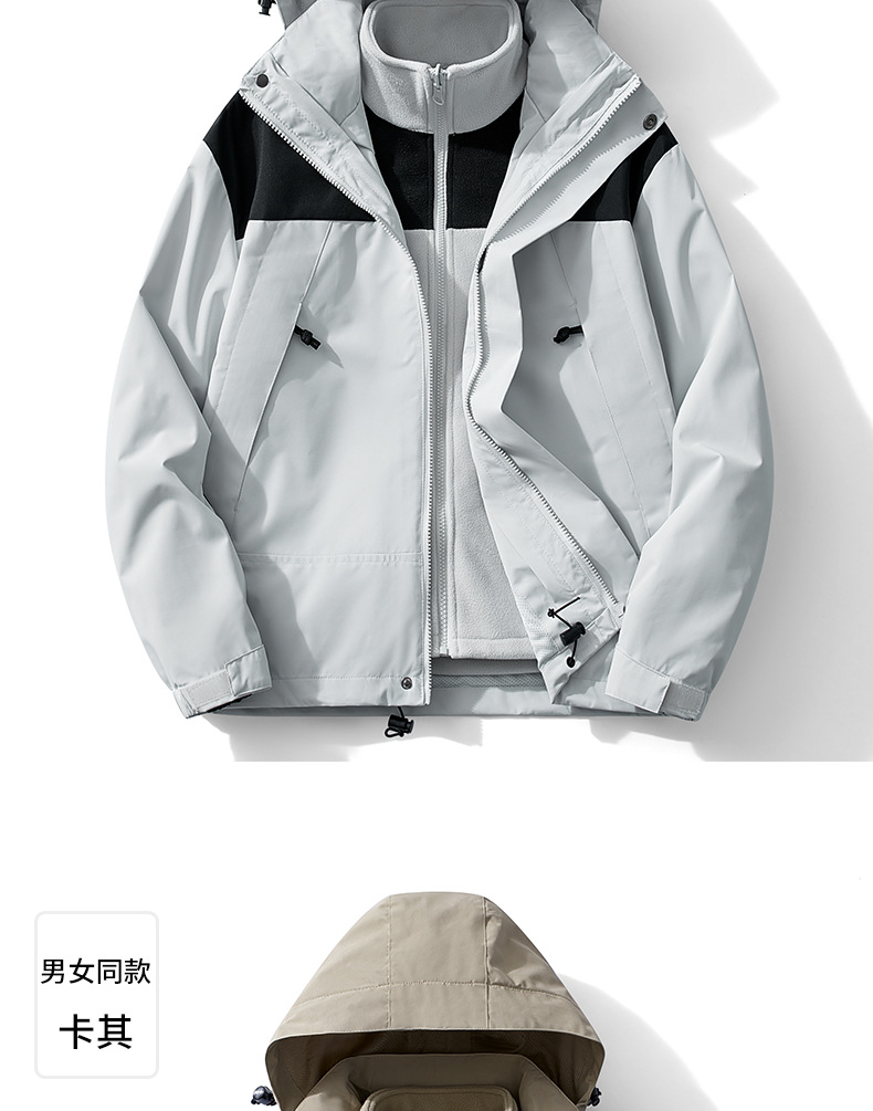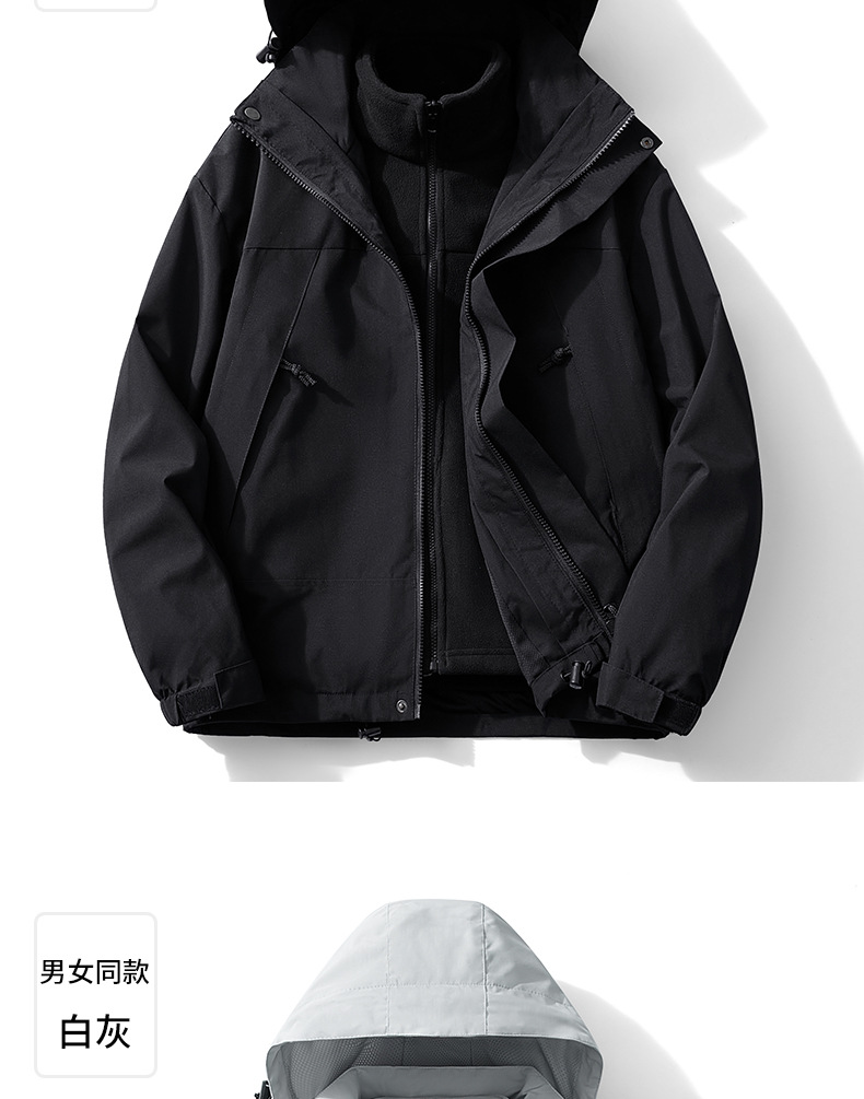 3-in-1 남성 및 여성 가을 겨울 재킷 후드 재킷 탈착식 투피스 하이킹 캠핑 등산복