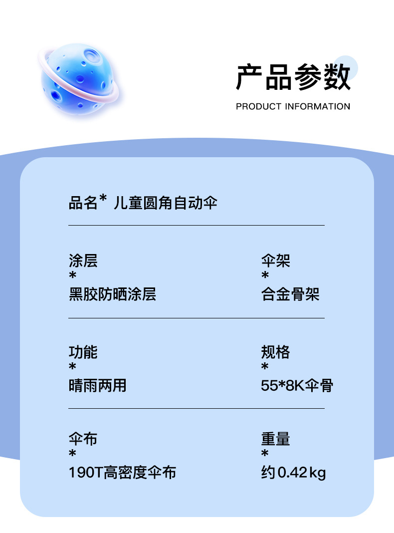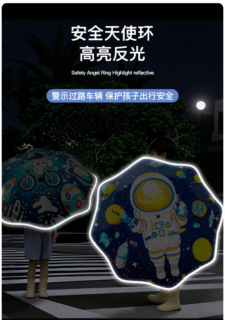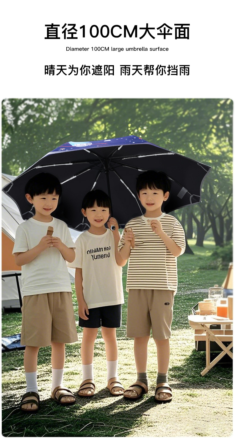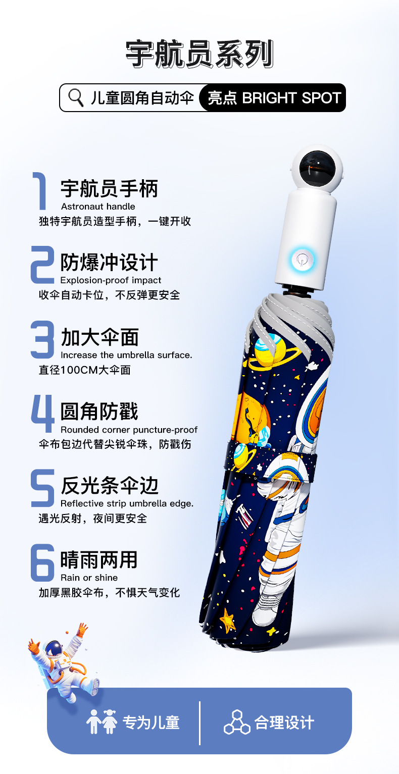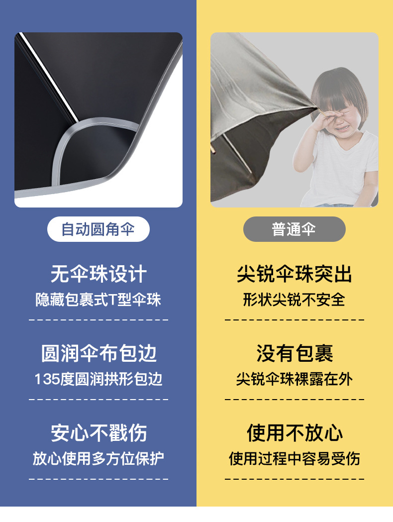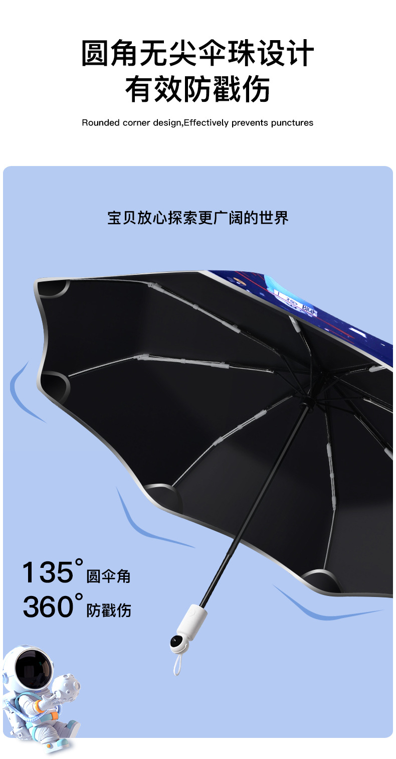절묘한 완전 자동 어린이 우산 안전 둥근 모서리 검은색 비닐 태양 보호 우산 초등 및 중등 학생용