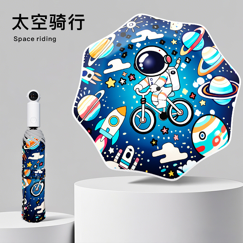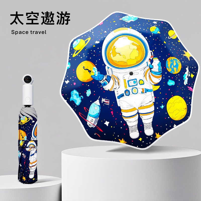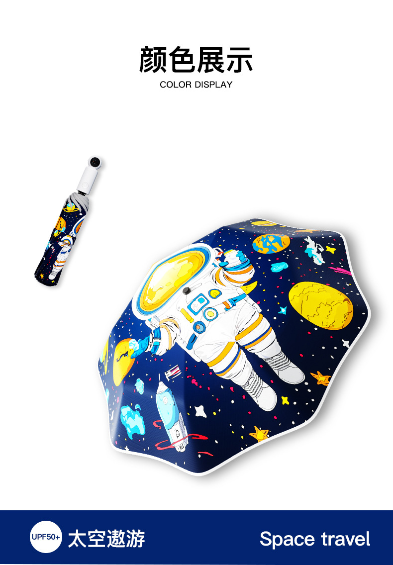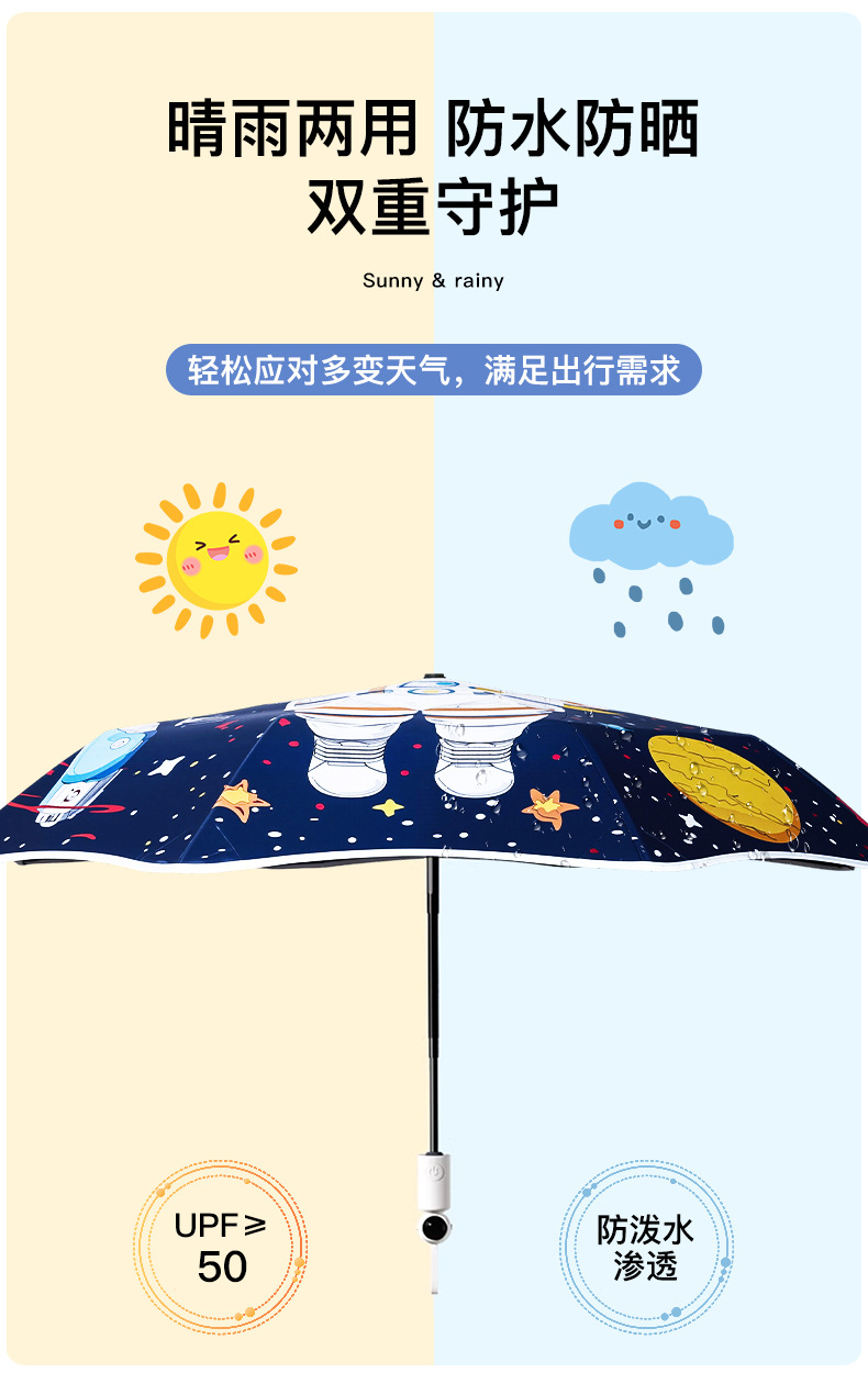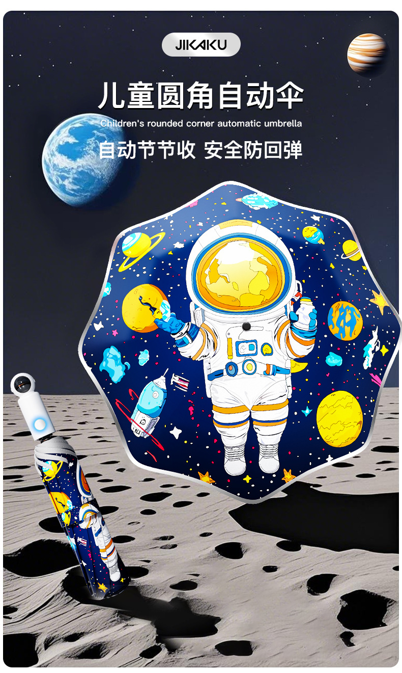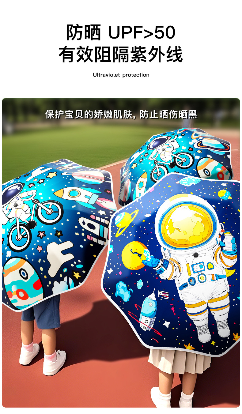 절묘한 완전 자동 어린이 우산 안전 둥근 모서리 검은색 비닐 태양 보호 우산 초등 및 중등 학생용