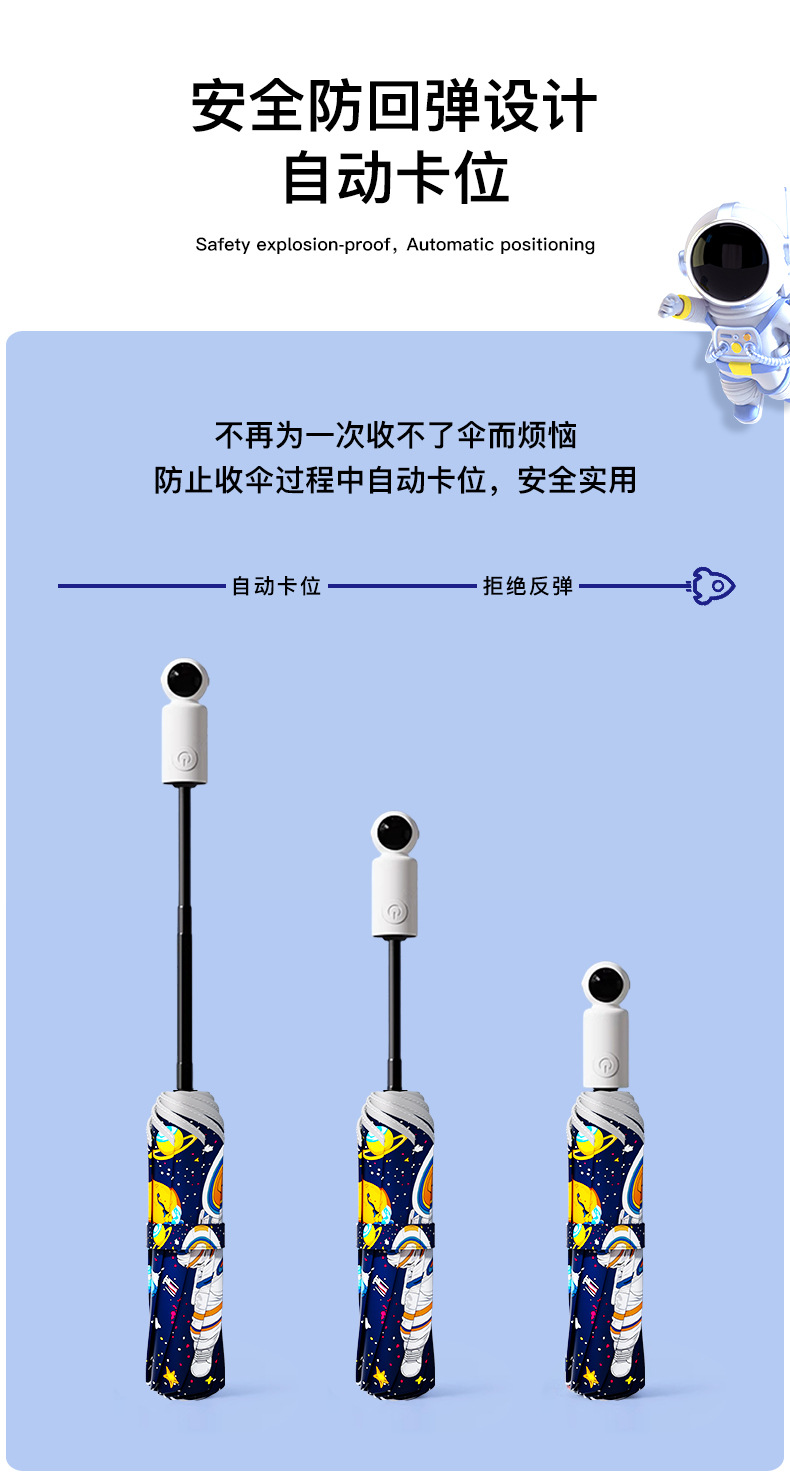 절묘한 완전 자동 어린이 우산 안전 둥근 모서리 검은색 비닐 태양 보호 우산 초등 및 중등 학생용스토어 가기