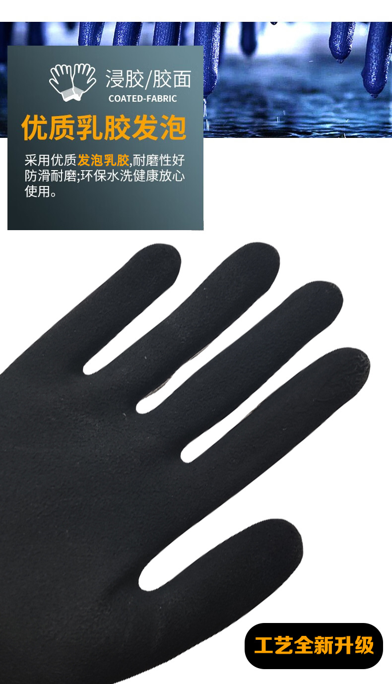 건설 현장 작업용 무료 배송 발포 노동 보호 장갑, 내마모성 및 부패 방지, 초극세 라텍스 통기성 미끄럼 방지 라텍스 장갑