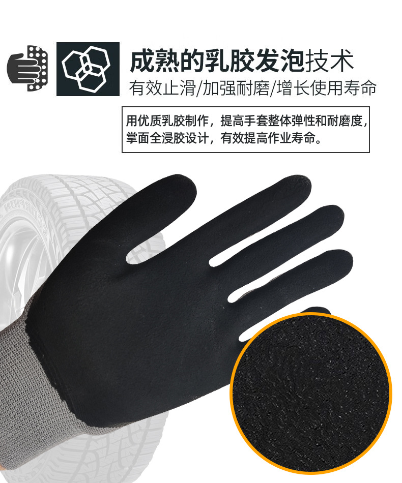 건설 현장 작업용 무료 배송 발포 노동 보호 장갑, 내마모성 및 부패 방지, 초극세 라텍스 통기성 미끄럼 방지 라텍스 장갑스토어 가기
