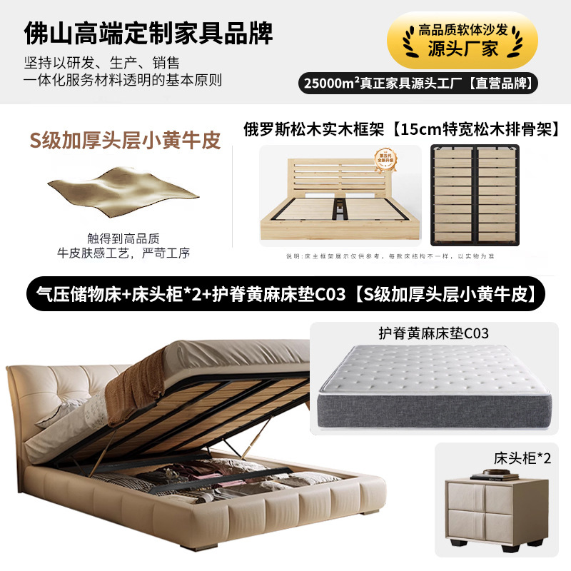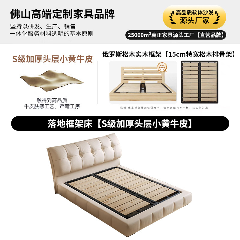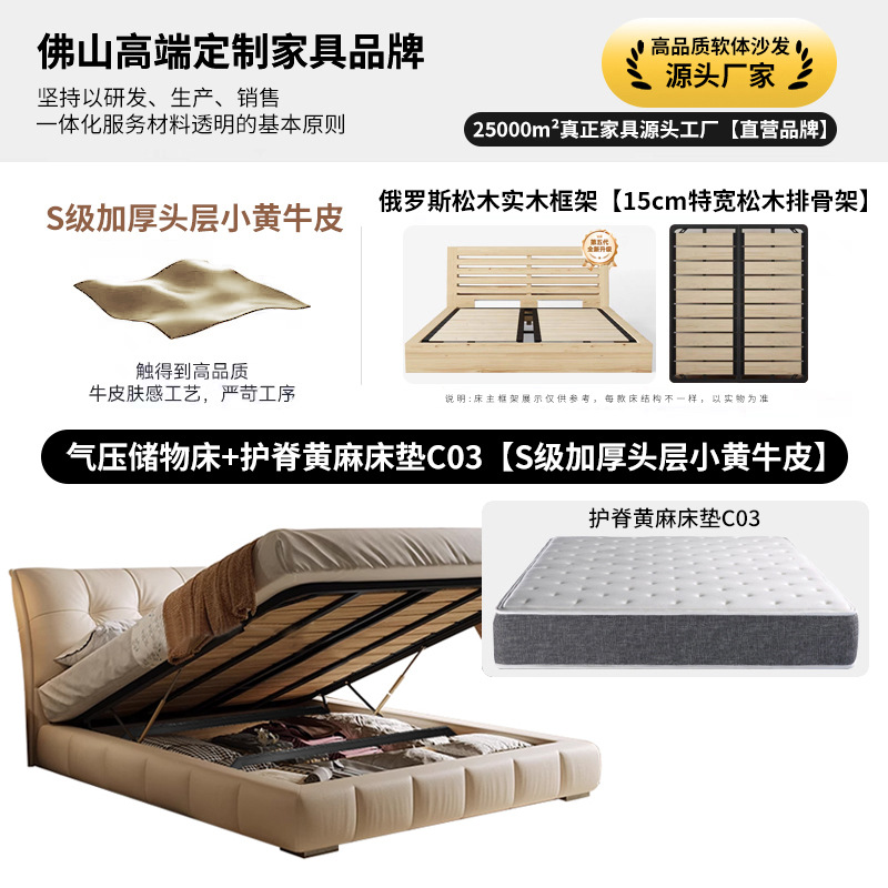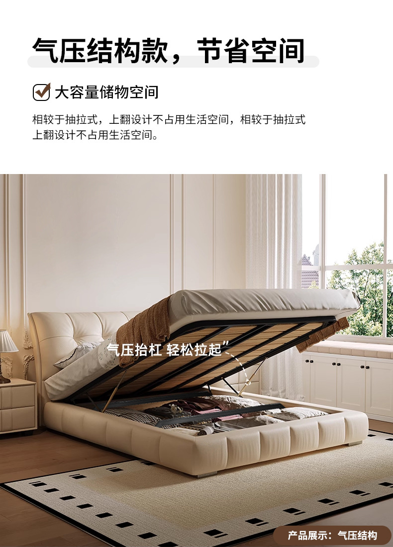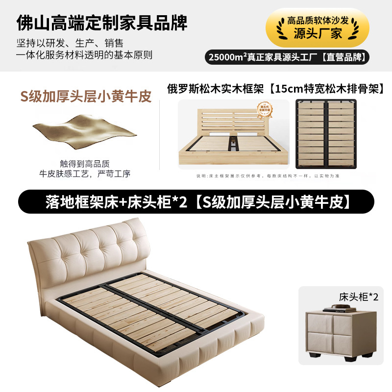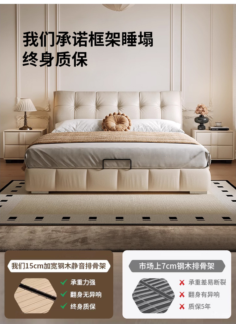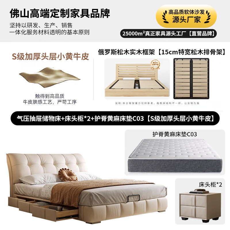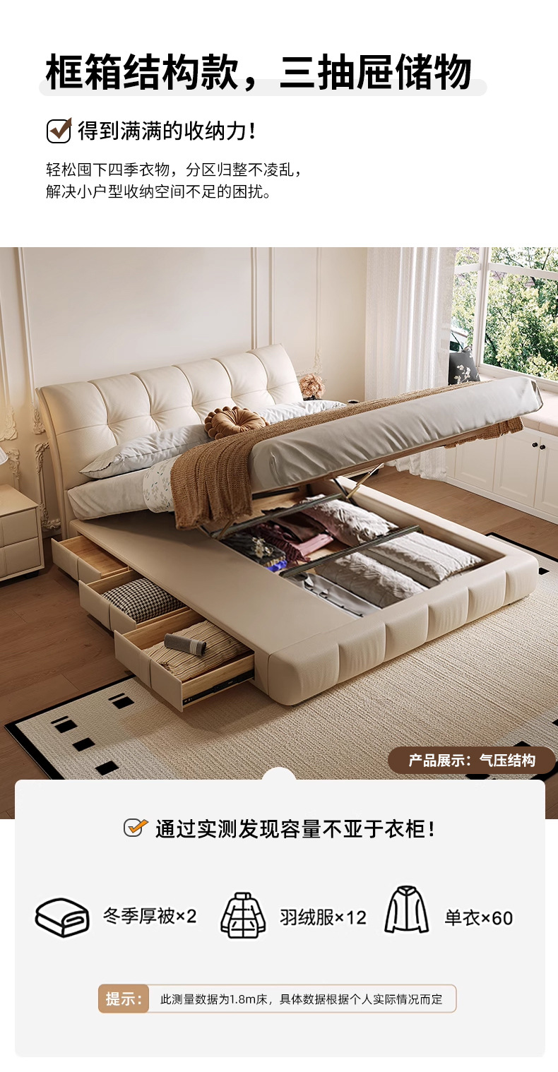 모던 라이트 럭셔리 고급 가죽 침대, 더블 사이즈, 1.8m 서랍 수납, 하이박스 수납, 플로어형 고급 침실용 침대