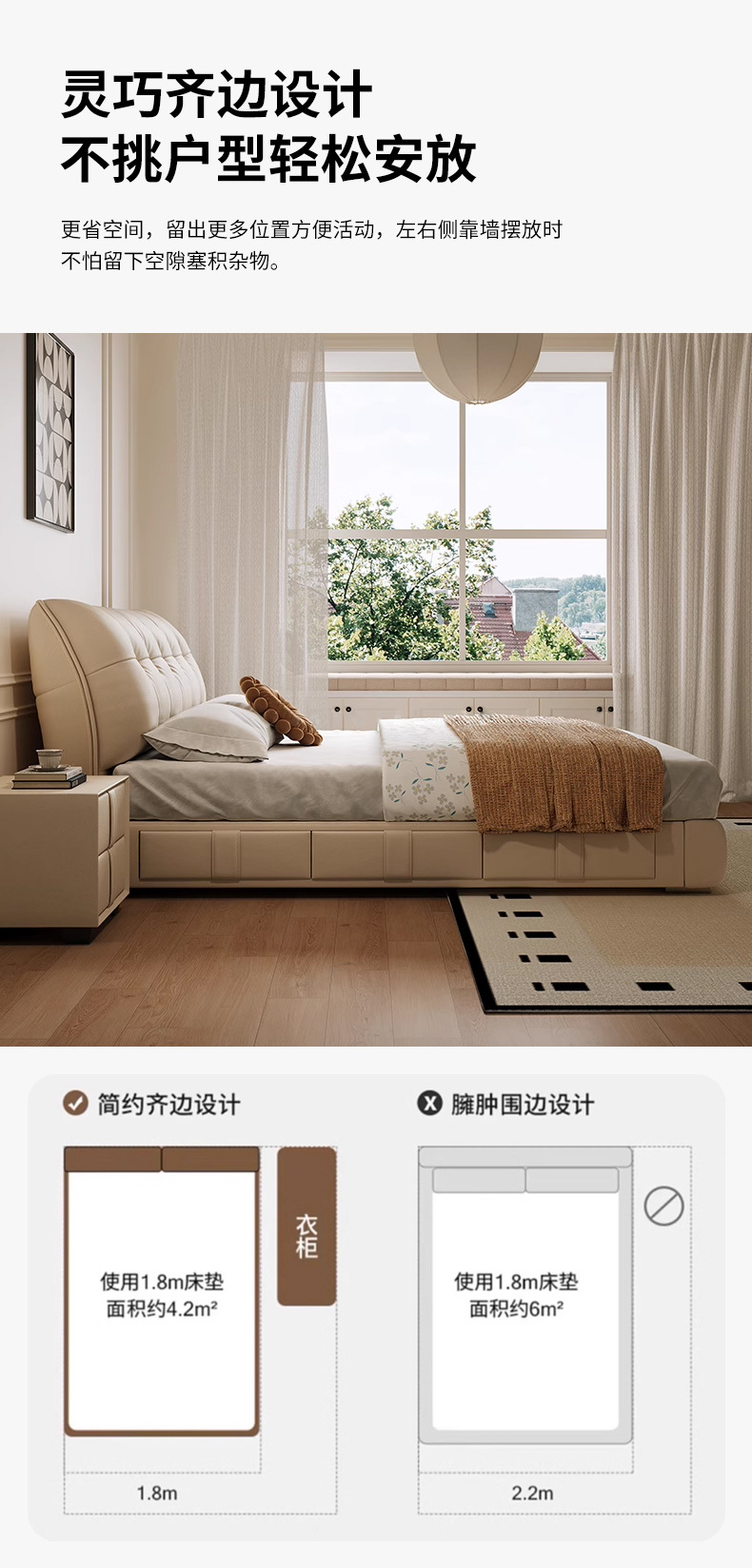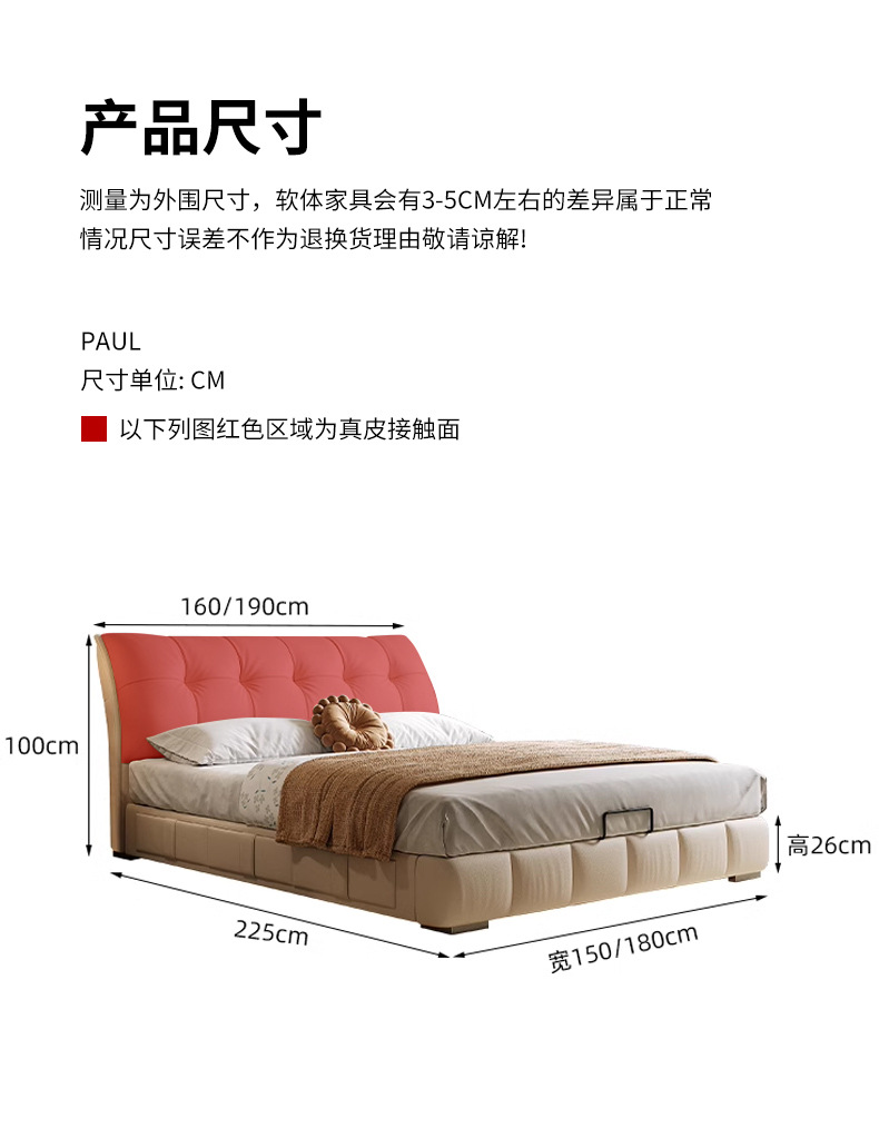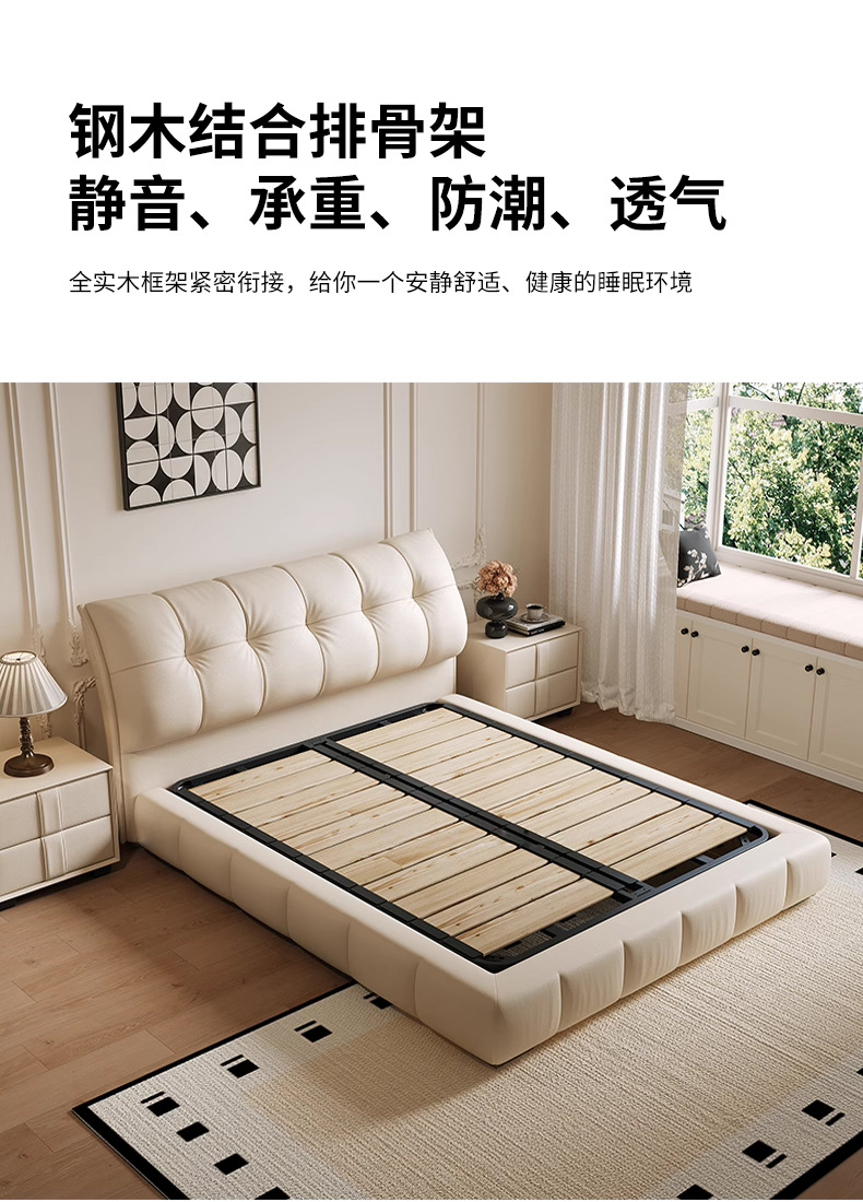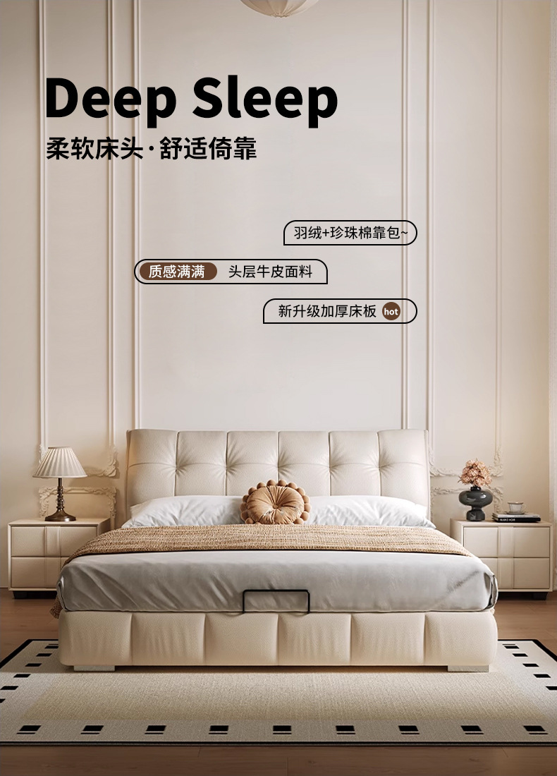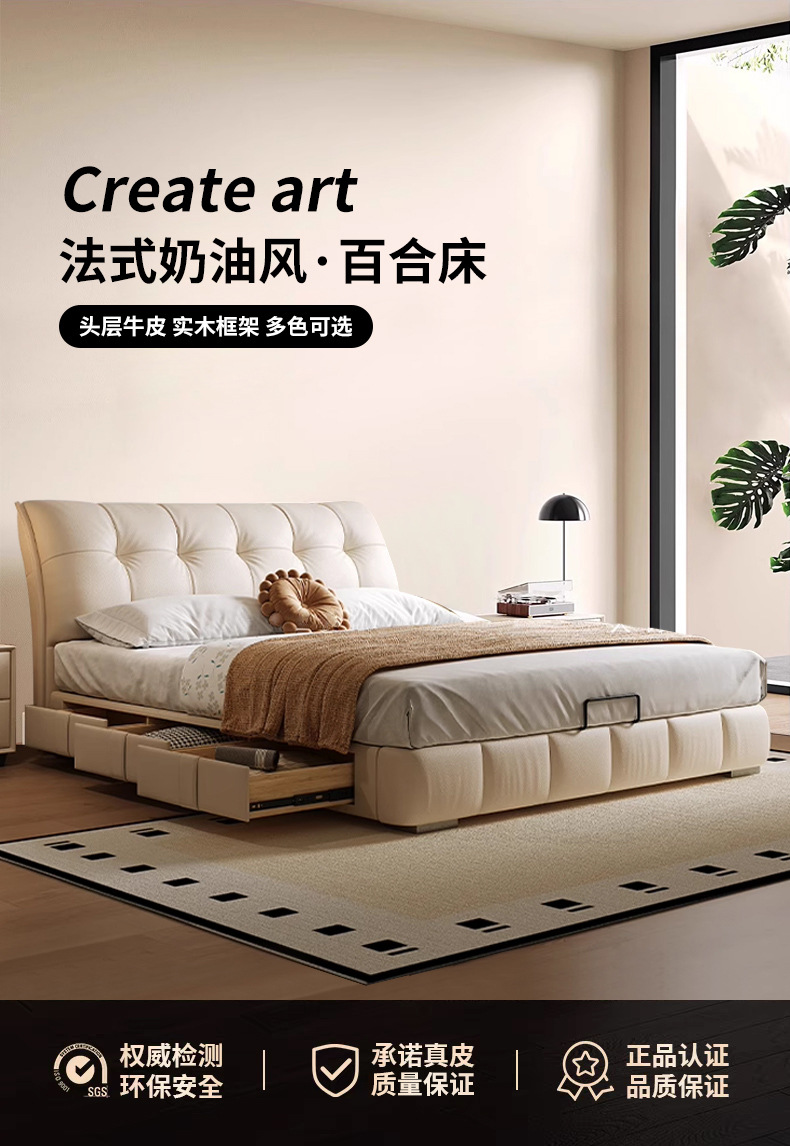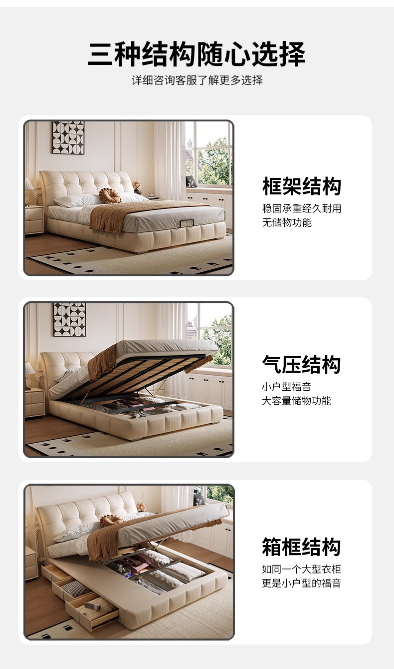 모던 라이트 럭셔리 고급 가죽 침대, 더블 사이즈, 1.8m 서랍 수납, 하이박스 수납, 플로어형 고급 침실용 침대