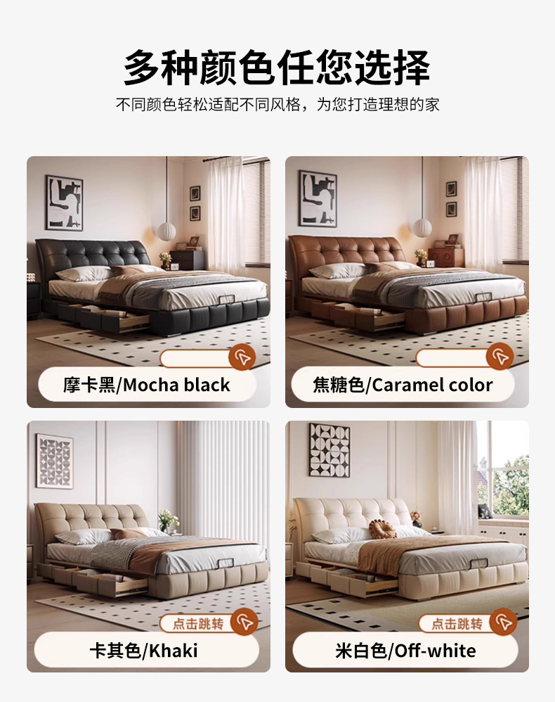 모던 라이트 럭셔리 고급 가죽 침대, 더블 사이즈, 1.8m 서랍 수납, 하이박스 수납, 플로어형 고급 침실용 침대스토어 가기