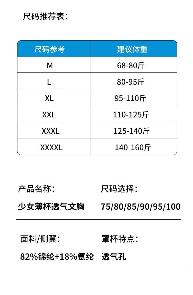 여아용 속옷 발달기 얇은 브라 학생용 조끼 중학생 브라 2단계 62 사이즈 편안하고 가슴을 돋보이게 하는 작은 사이즈