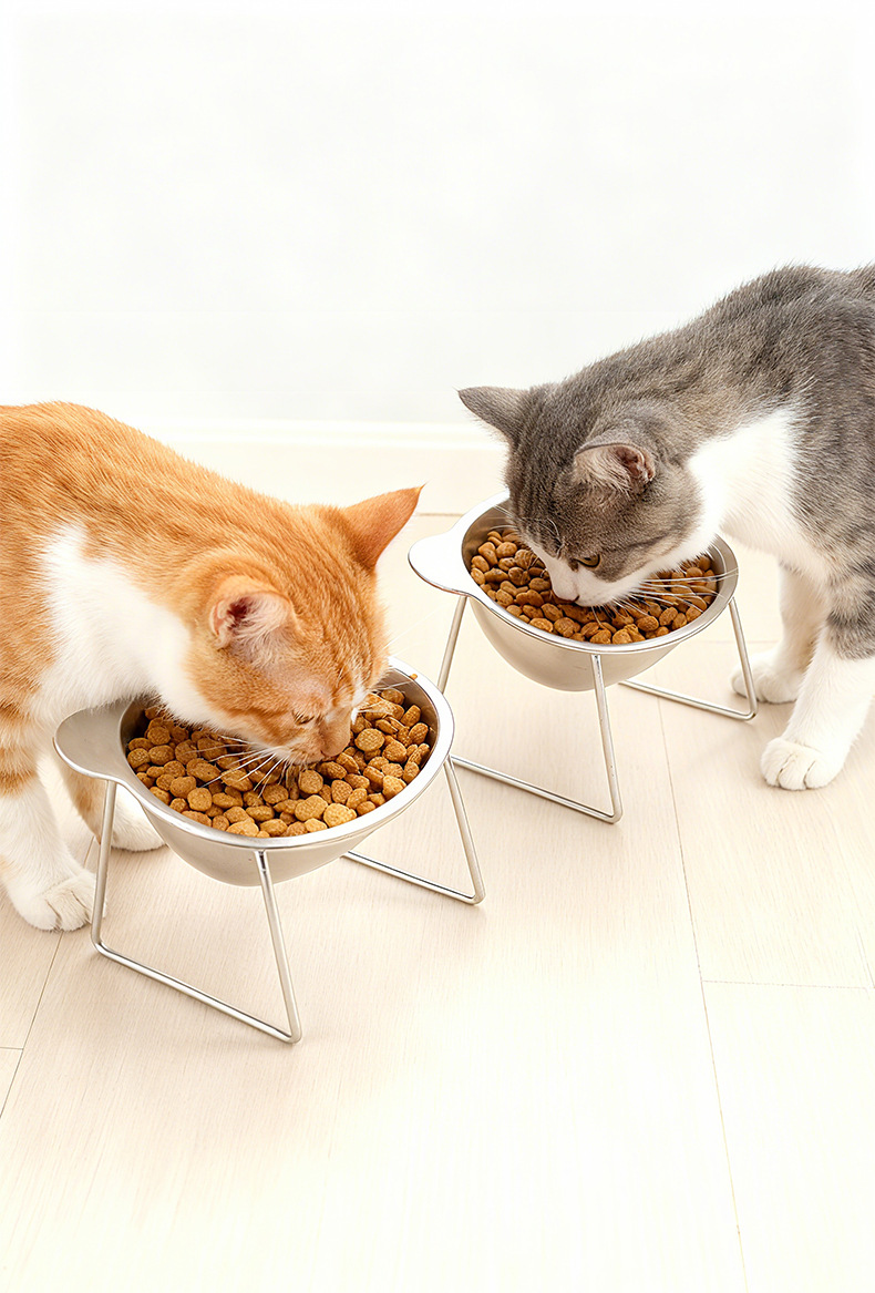 새로운 스테인레스 스틸 고양이 그릇 랙, 식수 그릇, 경추 보호, 넘어짐 방지, 강아지 그릇, 애완 동물 랙, 먹이 랙