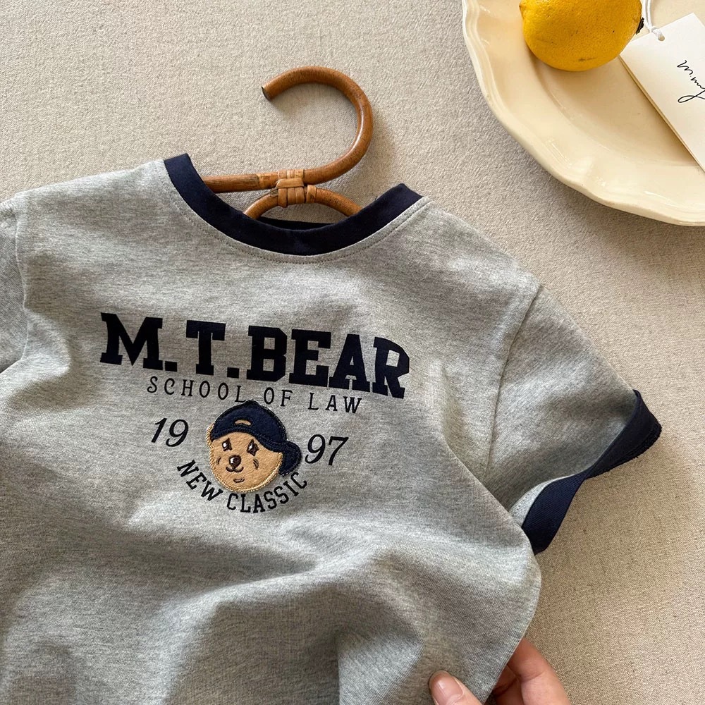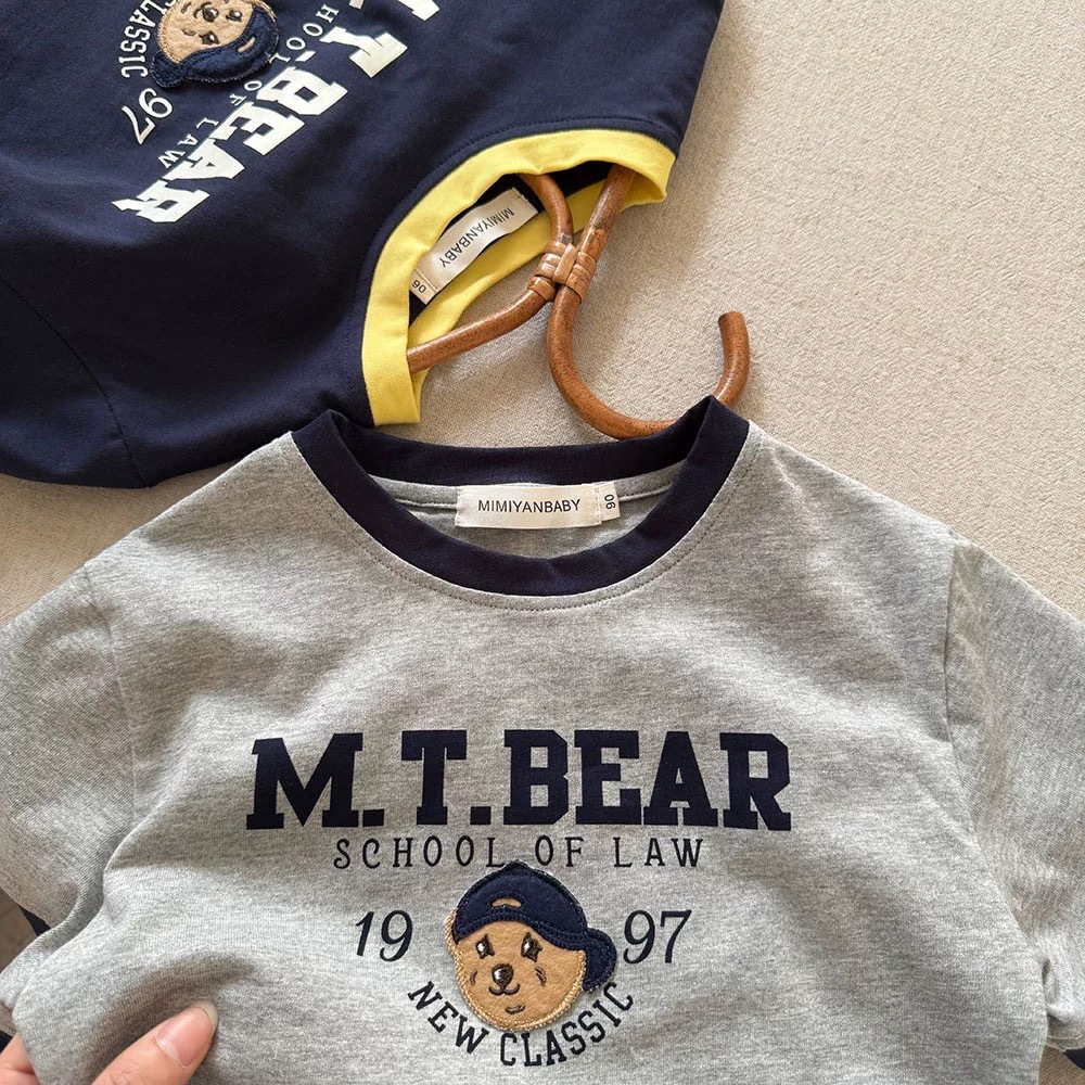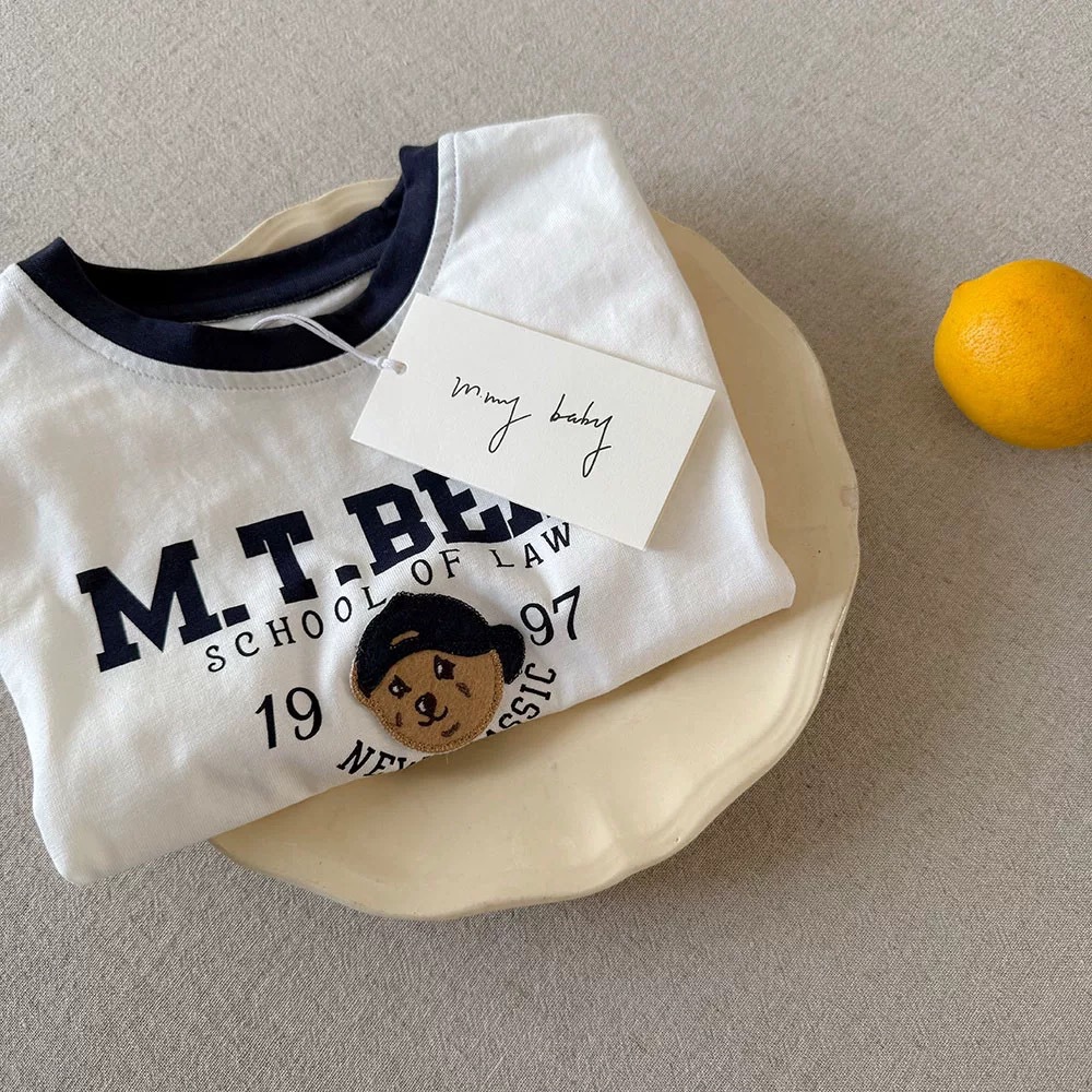 순수 코튼 어린이 반팔 2025 여름 소년 일본 만화 T 베이비 대비 색 반팔 소녀 어린이 유행 티셔츠스토어 가기