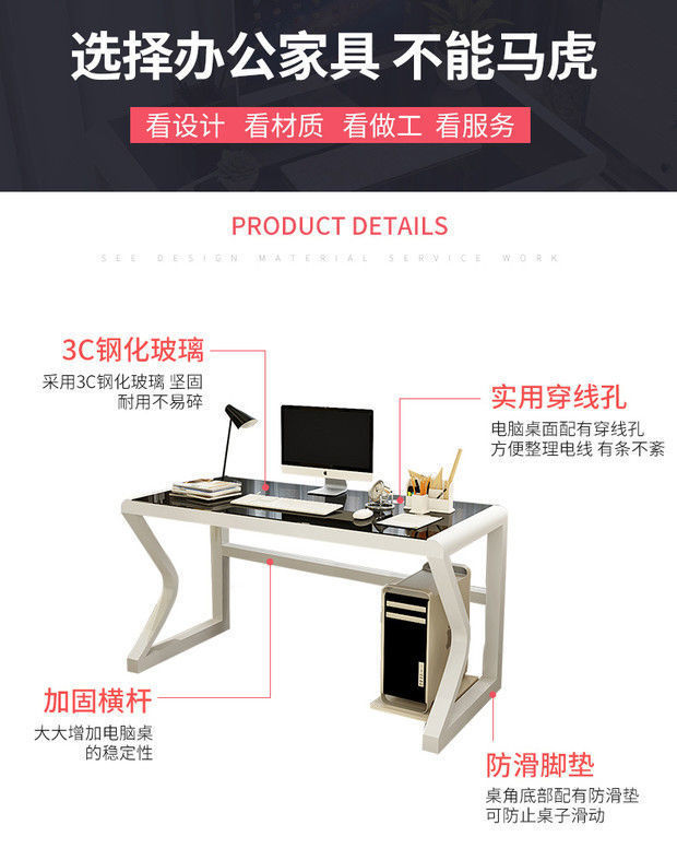 컴퓨터 책상 강화 유리 데스크탑 홈 침실 컴퓨터 책상 경제적인 책상 간단한 강화 학습 테이블스토어 가기