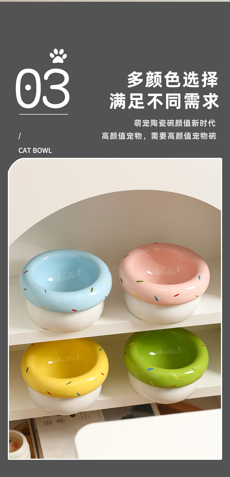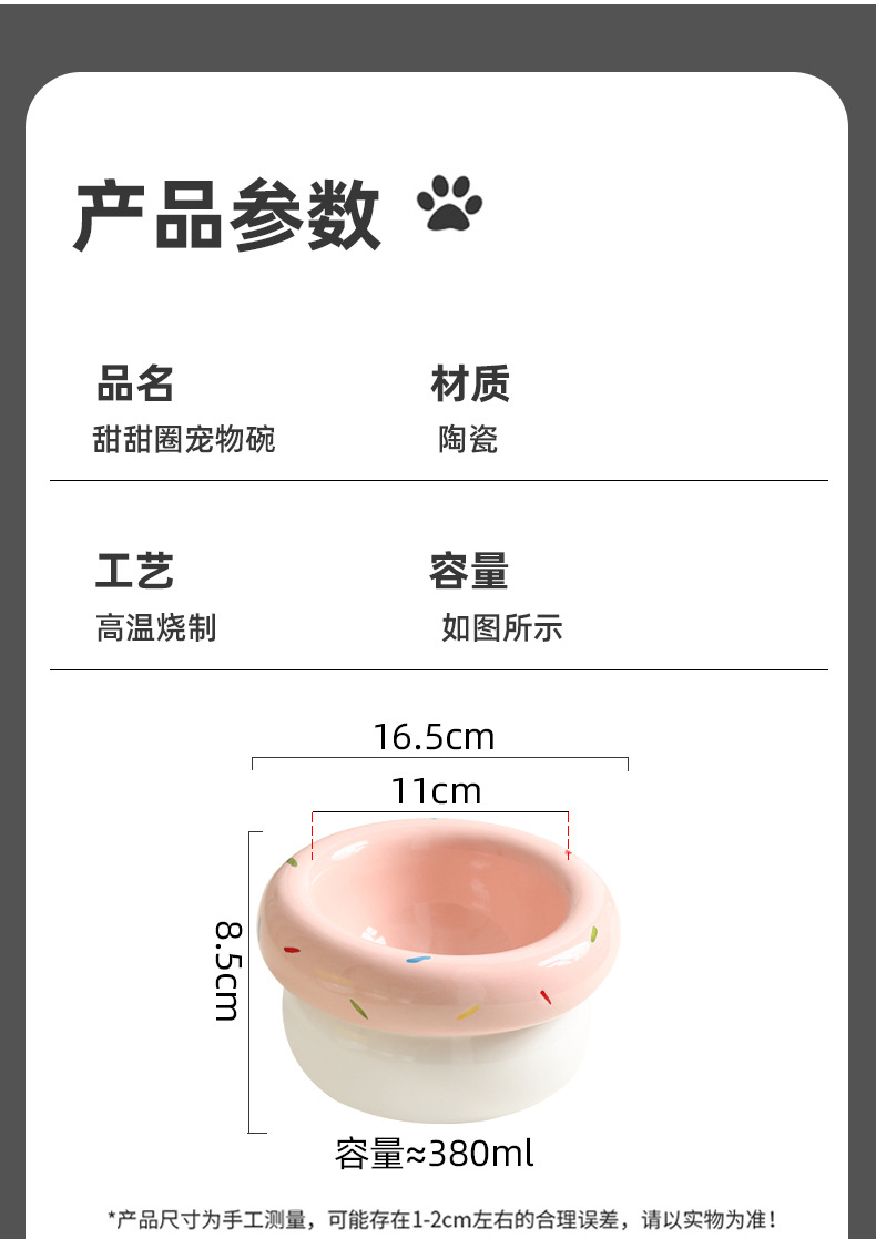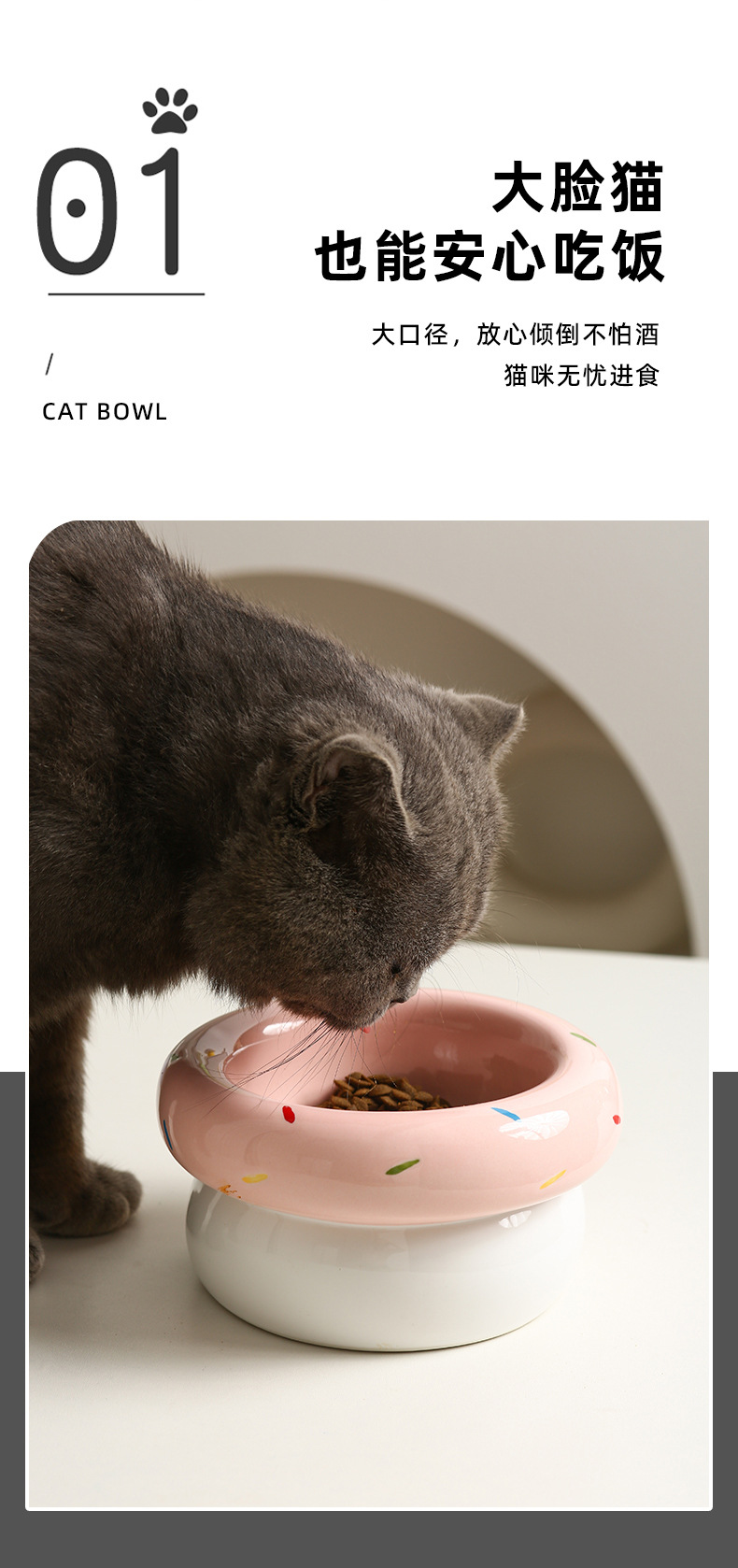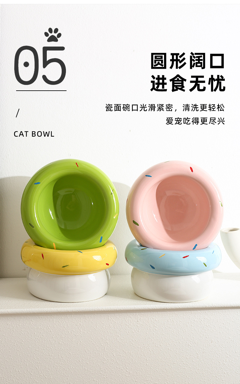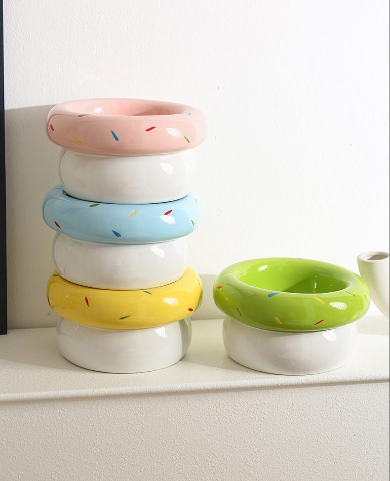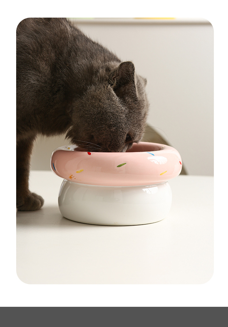 도넛 고양이 그릇 세라믹 애완 동물 그릇 대구경 고양이 사료 그릇 물 그릇 개밥 그릇 뒤집힘 방지 및 검은 턱 방지